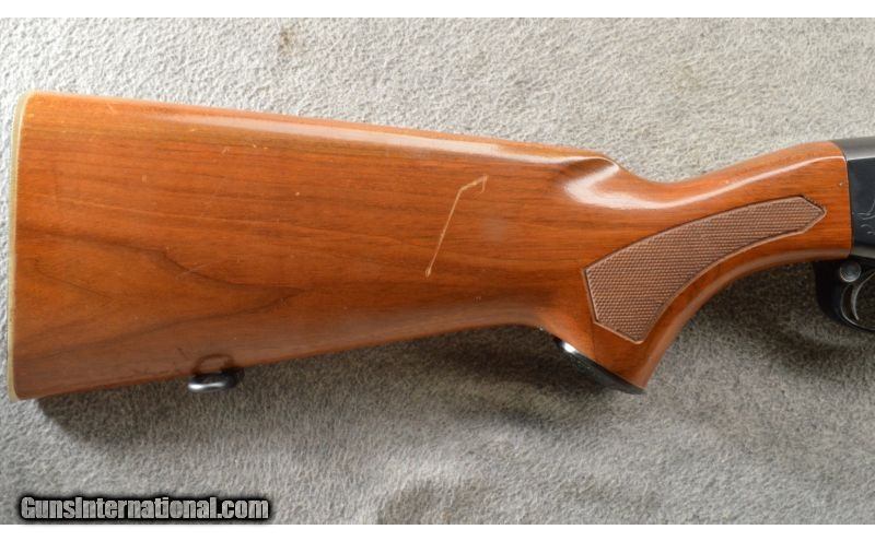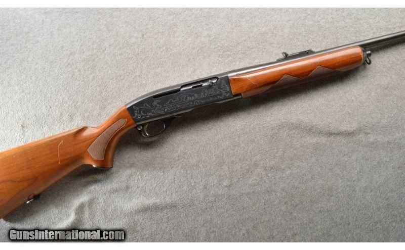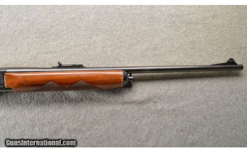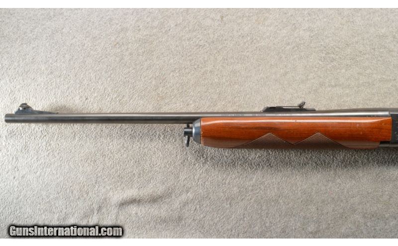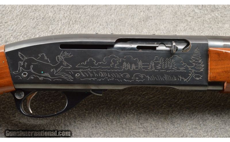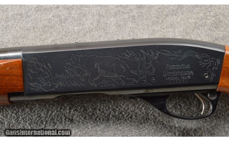 Description: This is a sharp looking Remington 742 with an Enhanced receiver. The receiver has a Bear running in the wood on 1 side and a Whitetail running on the other side. The rifle has a nice walnut stock with a checkered pistol grip and an aluminum butt plate and a matching checkered forearm. The blue is very strong throughout and has no issues. All in all a sharp looking rifle. SOLD Caliber Info: .30-06 Sprg. Chambers: Semi-Auto. Metal Condition: Excellent. Wood Condition: Very good with a few scratches and small dings. Bore Condition: Bright and shiny. Barrels: 22 inch blue with sights. Triggers: Single silver color. Stock: Very nice walnut with a checkered pistol grip, a grip cap and sling mounts. Stock Dimensions: 13 1/4 inch LOP. Fore End: Matching checkered walnut. Butt Pad: Aluminum butt plate. Weight: 7 Lbs 6 Oz. Sights: Flattop rear with a missing elevator and a blade on ramp front. Extras: Comes with 1 mag. Item Location: Owatonna, MN |