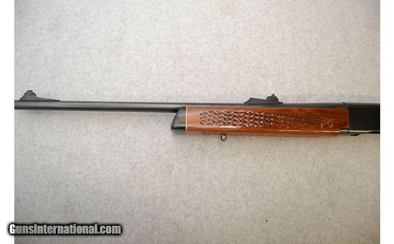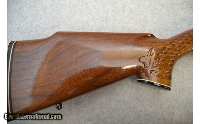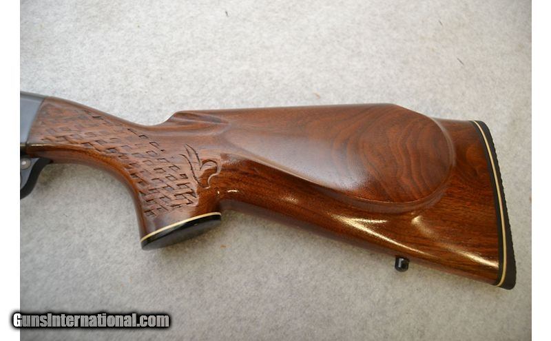 Description: Very good shape overall. Light handling marks to the metal finish; but there is an area on the left side of the receiver that might be trying to freckle somewhat. Furniture is also in good shape with signs of light use and a small number of dents. The bolt guide rail is still in great shape as well. .30-06 Springfield SOLD Chambers: Semiautomatic fed from detachable magazines. Metal Condition: Very good. Wood Condition: Very good. Bore Condition: Excellent with healthy rifling and good shine. Barrels: 22" Gloss blued. Triggers: Narrow blued metal with smooth surface. Stock Dimensions: Walnut with basket weave checkering in Monte Carlo style with a 13½" LOP. Fore End: Walnut with triple panel basket weave checkering. Butt Pad: Black rubber pad. Weight: 7lbs 14oz Sights: Fixed front blade with adjustable rear ramp notch. Drilled and tapped for scope mounting. Chokes: N/A Item Location: Green Bay |