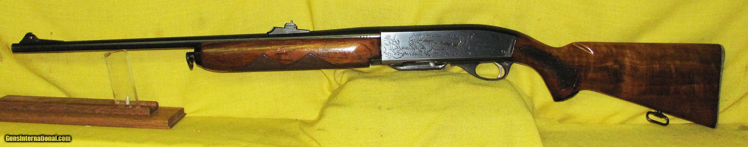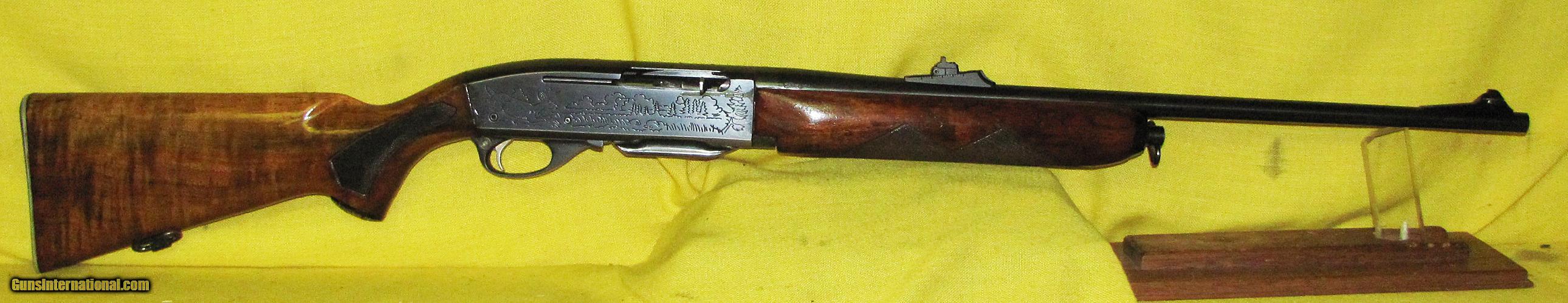 Description: REMINGTON 742 WOODSMASTER IN .308 CAL., WITH 22" BARREL. COLOR BLUE. CONDITION 95%+. SERIAL NUMBER 45548. REMINGTON MODEL 742 WOODSMASTER, RECEIVER ROLL ENGRAVED WITH GRIZZLY LEFT SIDE AND WHITE TAIL RIGHT SIDE, BRIGHT SHINY BORE, STOCK AND FORE ARM VERY GOOD WITH LIGHT HANDLING MARKS, 95%+ FACTORY FINISH. OUR NEW STOCK # D32713. SOLD |