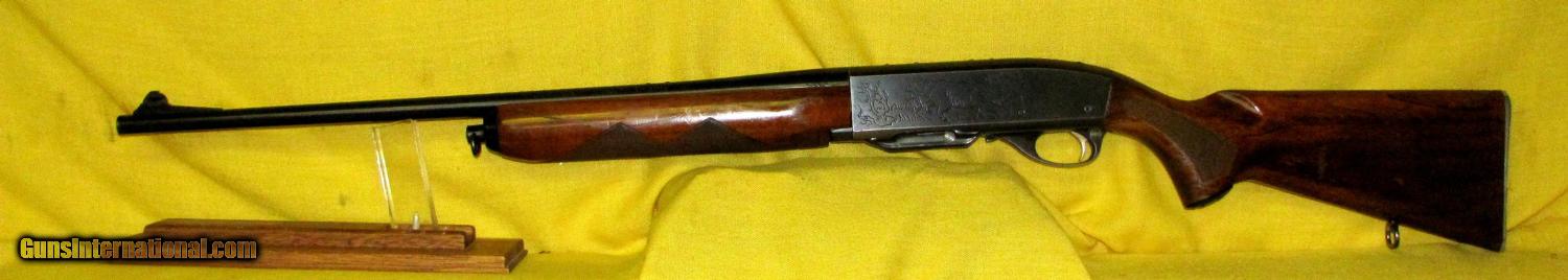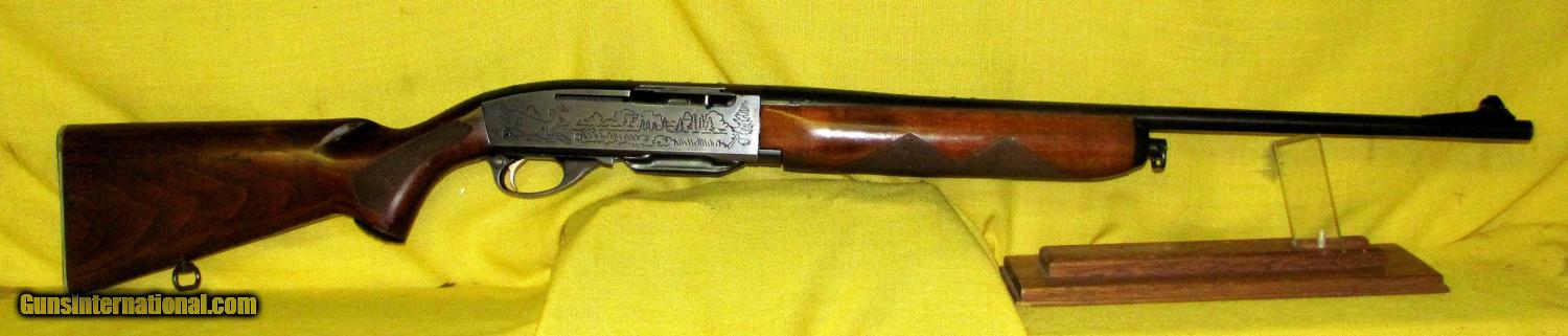 Description: REMINGTON model 742 in 30-06 CAL., with 22" barrel. Color BLUE. REMINGTON MODEL 742 WOODMASTER, OLDER MODEL RECEIVER HAS ROLLED ENGRAVED GAME SCENES, BORE VERY GOOD, WOOD HAS HANDLING MARKS, 95% FACTORY FINISH, MISSING PLASTIC BOLT COVER, MECHANICALLY EXCELLENT. OUR NEW STOCK # D30929 Condition 93%+. Serial number 33885. SOLD |