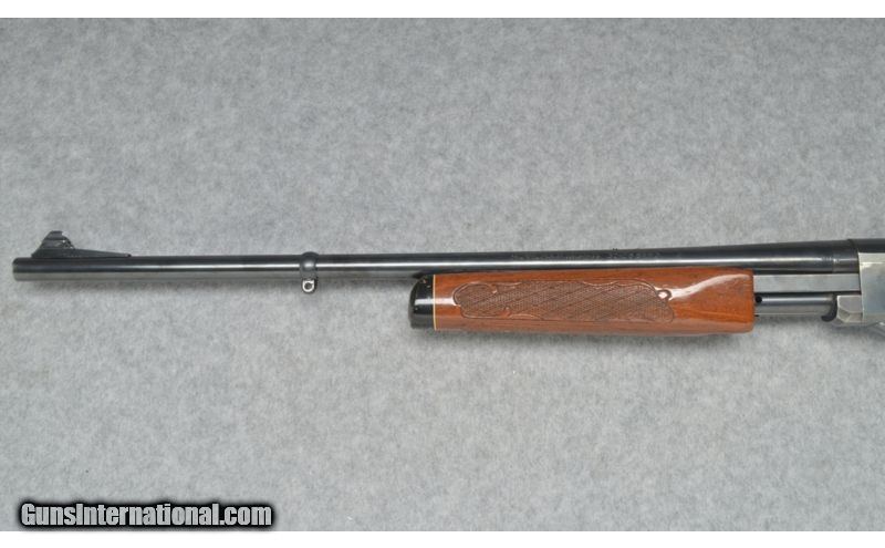 Description: This Remington 760 is in very good condition with a 22 inch blue round barrel that has a very clean bright bore. The wood is in very good condition with some very minor field marks on the bottom of the stock and front of the fore end. The metal is also in very good condition with some very minor bluing lose on the right side of the receiver. This Remington 760 comes with one magazine. Over all this is a very nice rifle that would be great for hunting big game or for taking to the range. SOLD Caliber Info: .30-06 SPRG. Chambers: Pump action. Metal Condition: Very good. Wood Condition: Very good. Bore Condition: Clean and bright. Barrels: 22 inch blue round barrel. Triggers: Single blue trigger. Stock: Walnut stock with sling stud, black rubber grip plate and checkering on the pistol grip. Stock Dimensions: 13 1/4 inch LOP. Fore End: Matching walnut fore end with checkering and black rubber cap. Butt Pad: Metal butt plate. Weight: 6 lbs. 4 Oz's. Sights: Front iron sight. Extras: Comes with one magazine. Item Location: Sun Prairie, WI |