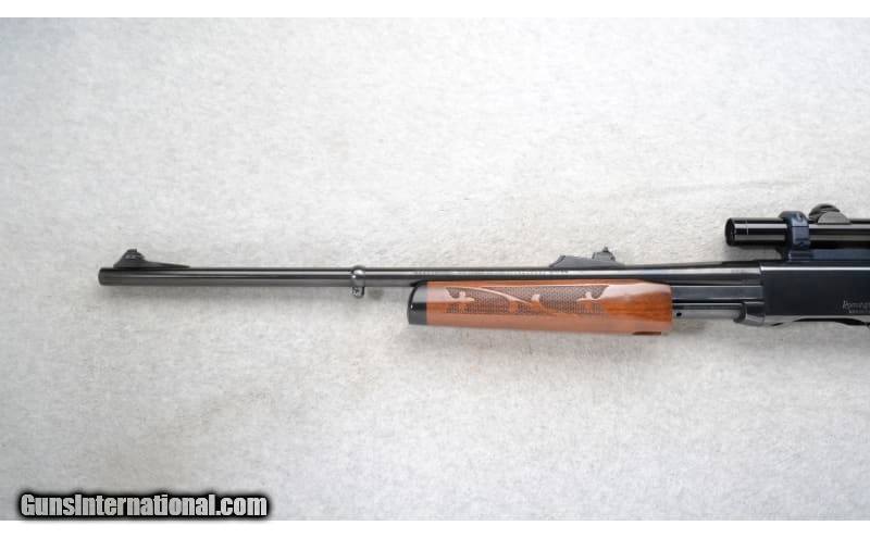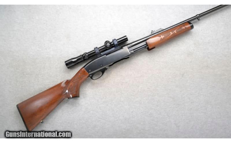 Description: This Remington Model 7600 is a right hand pump action rifle in .270 Win. Cal. It has a 22 inch barrel. A raised blade front sight and an adjustable notch middle sight. It is outfitted with a Redfield Scope. The butt stock is a checkered grip walnut pistol grip with a black cap. The forearm is a checkered grip walnut with a black tip. .270 Winchester SOLD Chambers: Detachable Magazine. Metal Condition: Excellent. Wood Condition: Good. Many light handling marks. Bore Condition: Excellent. Barrels: 22 inch. Stock Dimensions: LOP 13 1/2 inches. Fore End: Checkered grip walnut with a black tip. Butt Pad: Remington checkered black plate. Weight: 7 Lb. 14 Oz. Sights: Raised blade front. Adjustable notch middle. Redfield 1.75x5x Scope. Item Location: Richfield, WI |