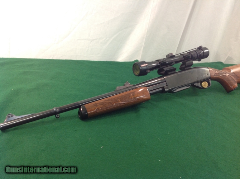 Description: Remington 7600 Carbine chambered in 30-06. Rifle has a 19" barrel and weighs 7 lb 10 oz. Has older model Bushnell Sportview mounted on High see thru rings. Layaway is available and check our other listings for more fine firearms. 3% fee if paying by card and a 3 day non firing review in all purchases. SOLD |