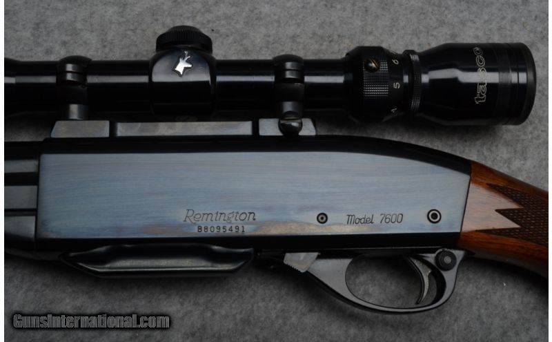 Description: A real nice Remington 7600 in .30-06 SOLD Caliber Info: .30-06 Sprg Metal Condition: Very Nice Wood Condition: Very Nice Bore Condition: Shiny and Bright Barrels: 22 Triggers: Factory Trigger Stock: Walnut Pistol Grip Stock with Checkering Stock Dimensions: 13 1/4" LOP Fore End: Smooth Walnut Forearm Butt Pad: Black Plastic Butt Pad Weight: 8.2 lbs Sights: Factory Sights and Tasco Scope Item Location: Woodbury, MN |