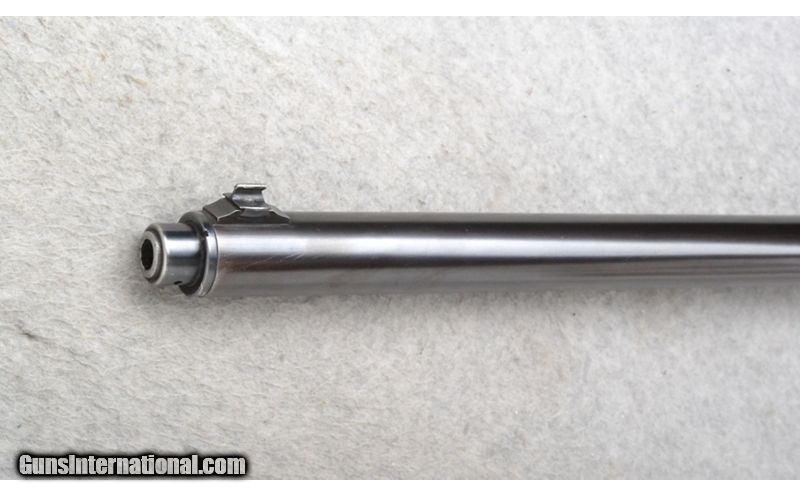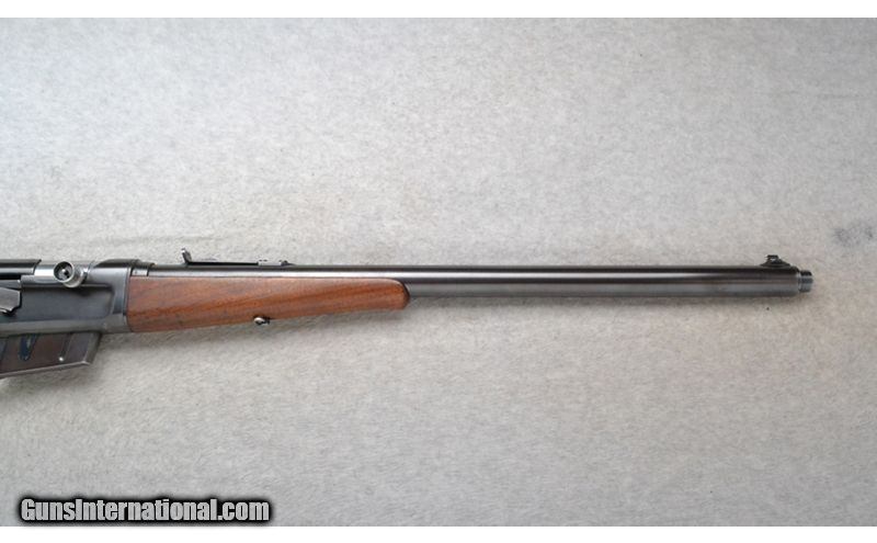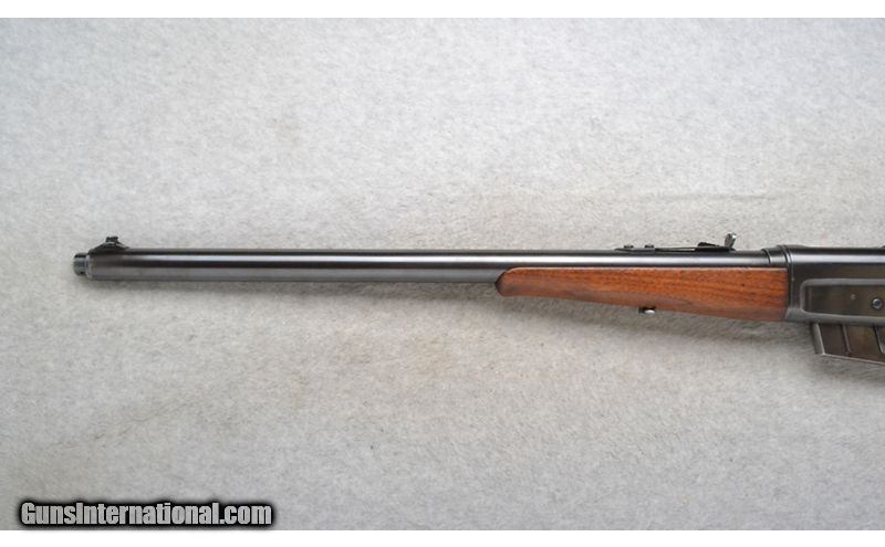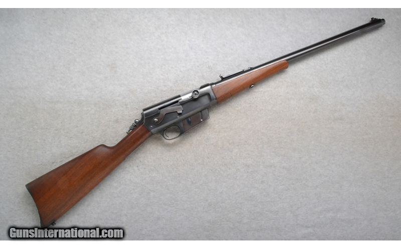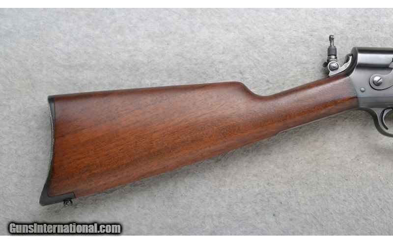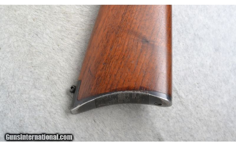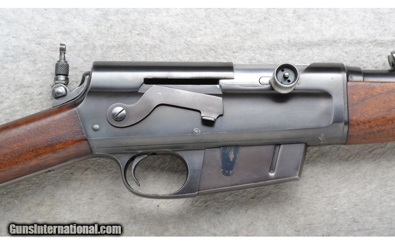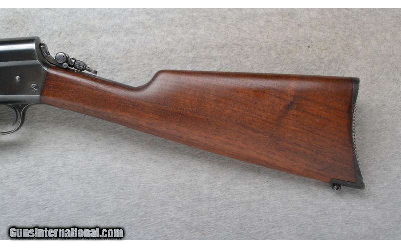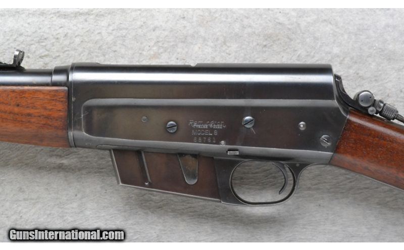 Description: This Remington Model 8 is a right hand semi-auto rifle in .35 Remington Cal. It has a 22 inch barrel. A raised blade front sight , adjustable notch middle sight and a folding adjustable peep rear sight. The butt stock is a smooth grip walnut straight grip. The forearm is a smooth grip walnut. It has a fixed 5 round box magazine. Serial Number 68761. Appears reblued. .35 Remington SOLD Chambers: Fixed 5 round boxed magazine. Metal Condition: Very Good. Appears reblued. Wood Condition: Very Good. Some light handling marks. Bore Condition: Excellent. Barrels: 22 inch. Stock Dimensions: LOP 13 5/8 inches. Fore End: Smooth grip walnut. Butt Pad: Grooved steel plate. Weight: 8 lb. 7 oz. Sights: Raised blade front. Adjustable notch middle. Folding adjustable peep rear. Item Location: Richfield, WI |