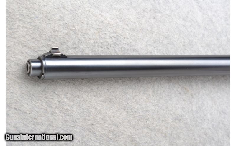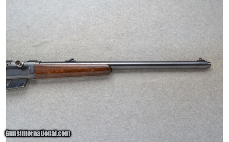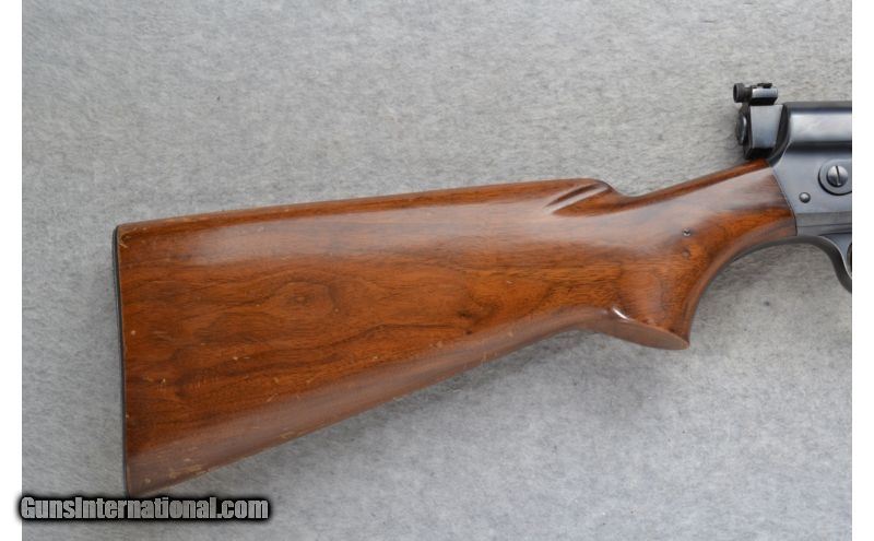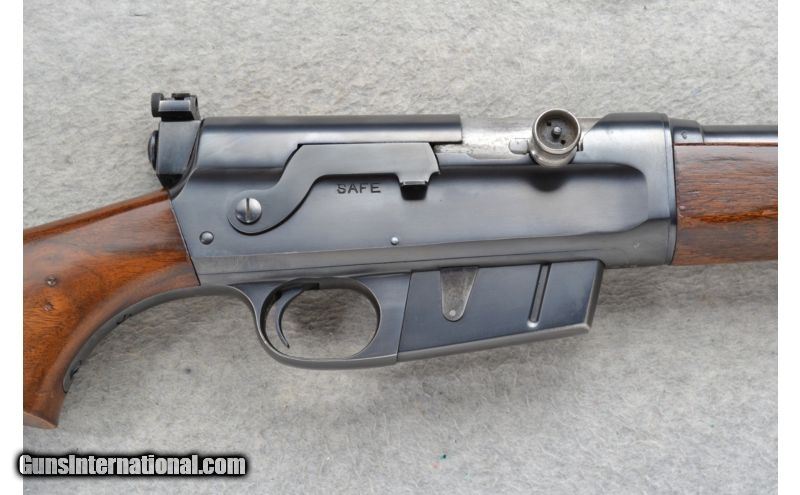 Description: This Remington Model 81 The Woodsmaster is a right hand semi-auto rifle in .30 Rem. Cal. It has a 22 inch barrel with a blade front, folding adjustable notch middle and adjustable peep rear sights. The stock is a smooth walnut pistol grip. John Browning considered the humpbacked long recoil action was the best thing he ever did. The design was very strong and meant to work well for a long time. The fat barrel is deceptive because the actual barrel is held in a jacket, a tube of larger diameter. With each shot the barrel moves back against a spring inside this tube and that movement transfers energy to the bolt and allows the recoil of the shot to cycle the action. SOLD Manufacturer: S/N 10685 Caliber Info: .30 Rem. Chambers: Semi-Auto 5 round box magazine. Metal Condition: Very good with minor handling marks and minor edge blue wear. Wood Condition: Fair. Shows use and wear. multiple handling marks. Bore Condition: Very good. Barrels: 22 inch blued. Stock: Smooth walnut pistol grip. Stock Dimensions: LOP 13 5/8 inches. Fore End: Smooth grip walnut. Butt Pad: Remington checkered steel plate. Weight: 8 lbs. 12 oz. Sights: Blade front. Folding adjustable notch middle. Redfield adjustable peep rear. Item Location: Richfield, WI |