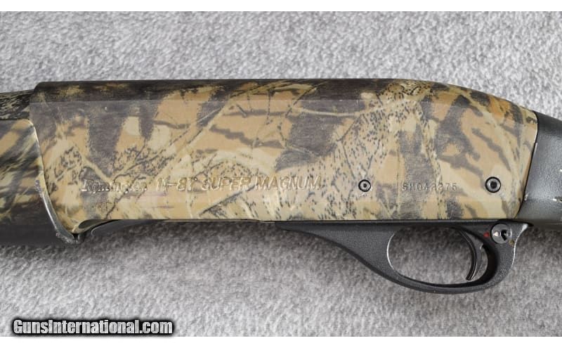 Description: This Remington Model 11-87 Super Magnum Special Purpose remains in excellent overall condition showing a few light use marks. Gun is solid with good function and an excellent bore. No box. Complete with one screw-in choke tube (Full). Very nice gun! 12 Gauge SOLD Chambers: 3 1/2 Metal Condition: Very Good Bore Condition: Excellent Barrels: 24 Triggers: Factory Stock Dimensions: 13 7/8" LOP Fore End: Checkered Camo Pistol Grip - Checkered Camo Forend Butt Pad: Remington Vented Black Rubber Butt Plate Weight: 8 lbs Sights: Orange Fiber Optic Front - Green Fiber Optic Front - Integral Notch Rear Chokes: Full - Screw-In Rem Choke Wingmaster Item Location: Wheeling |