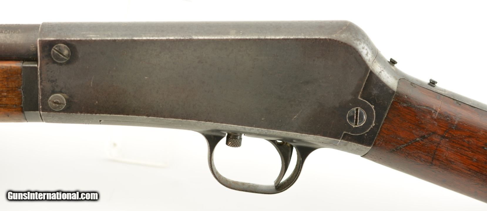 Description: Serial #12416, .22 Rem Auto, 22 inch round barrel with a lightly frosted fine bore with strong rifling. This is the Standard model 16A take-down, auto-loading rifle manufactured by Remington featuring a stock loading tubular magazine holding 15 rounds, adjustable rear and dove tail front sight manufactured from 1914-1928. In very fine overall condition the barrel and frame retain about 65-70% original blue finish that thinned on the high edges with an overall mottled appearance fading to plum-brown with some marking on the tang around the sight screws. The walnut stock is solid with numerous old scratches and contusions with the forend in similar condition but missing a small chip out of the Schnabel tip. A solid example of this classic and short lived rifle. FFL or C&R SOLD Curio/Relic: Yes |
