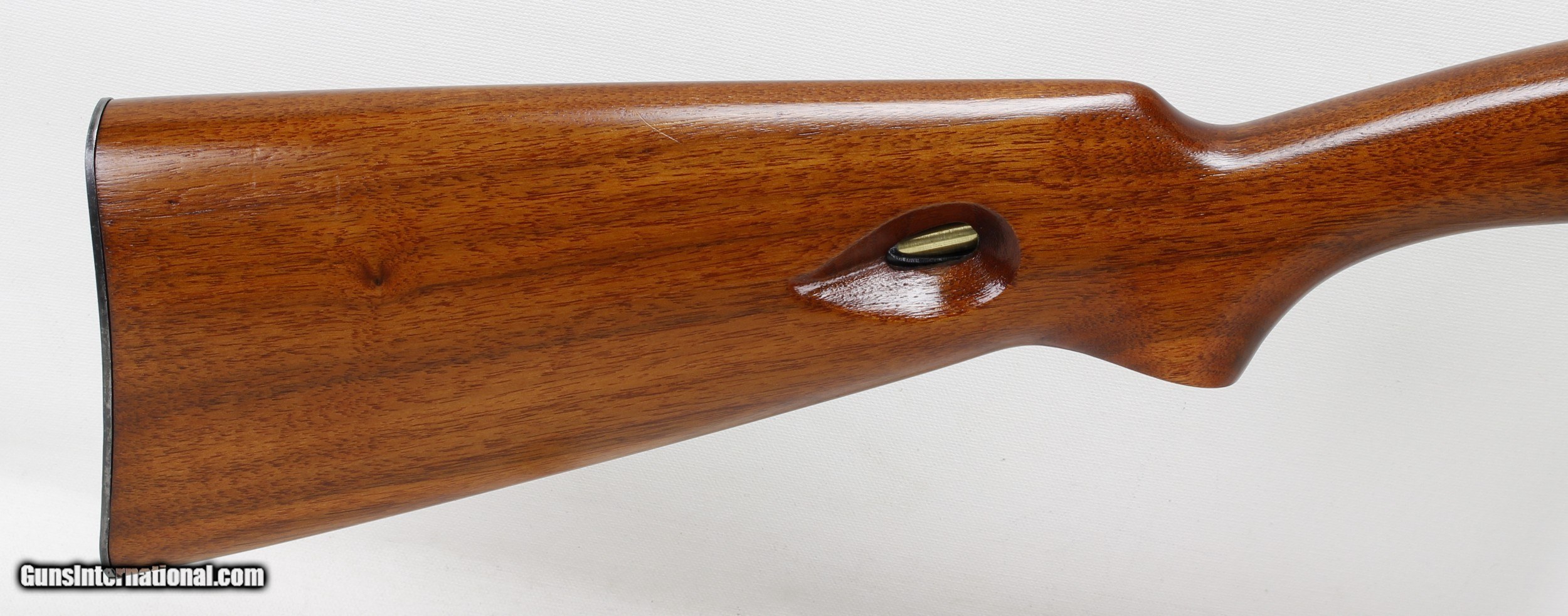 Description: Remington Model 24 Auto Loading Rifle in .22LR. SN #100264. Mfg. in Feb. 1930. LOP 13 1/2". 19" Barrel with an EXCELLENT Bright Bore with STRONG RIFLING. TAKEDOWN MODEL. Both the Blued Metal and Smooth Walnut Pistol Grip Stock and Forend have been REFINISHED at some point in it's past and really LOOKS GREAT. Brass loading tube located in stock. Open sights with "U" notch rear sight. Top/ Back of receiver is tapped for a sight. Steel buttplate. Bottom eject. Trigger guard safety. Mfg. from 1922-1934. Weight: 4.87 lbs. Trigger Pull: 2 3/4 lbs. More photo available upon request. Ships to Lower 48 W/ insurance $40.00. SOLD Curio/Relic: Yes Rifle Caliber: .22 Long Rifle Manufacturer: Remington Model: 24 Serial Number: 100264 Barrel Length: 19 Condition: Excellent Metal Condition: Excellent Wood Condition: Excellent Bore Condition: Excellent Action: Semi Auto LOP: 13 1/2 Finish: Blue Weight: 4.87 lbs. Manufacture Date: 1930 |