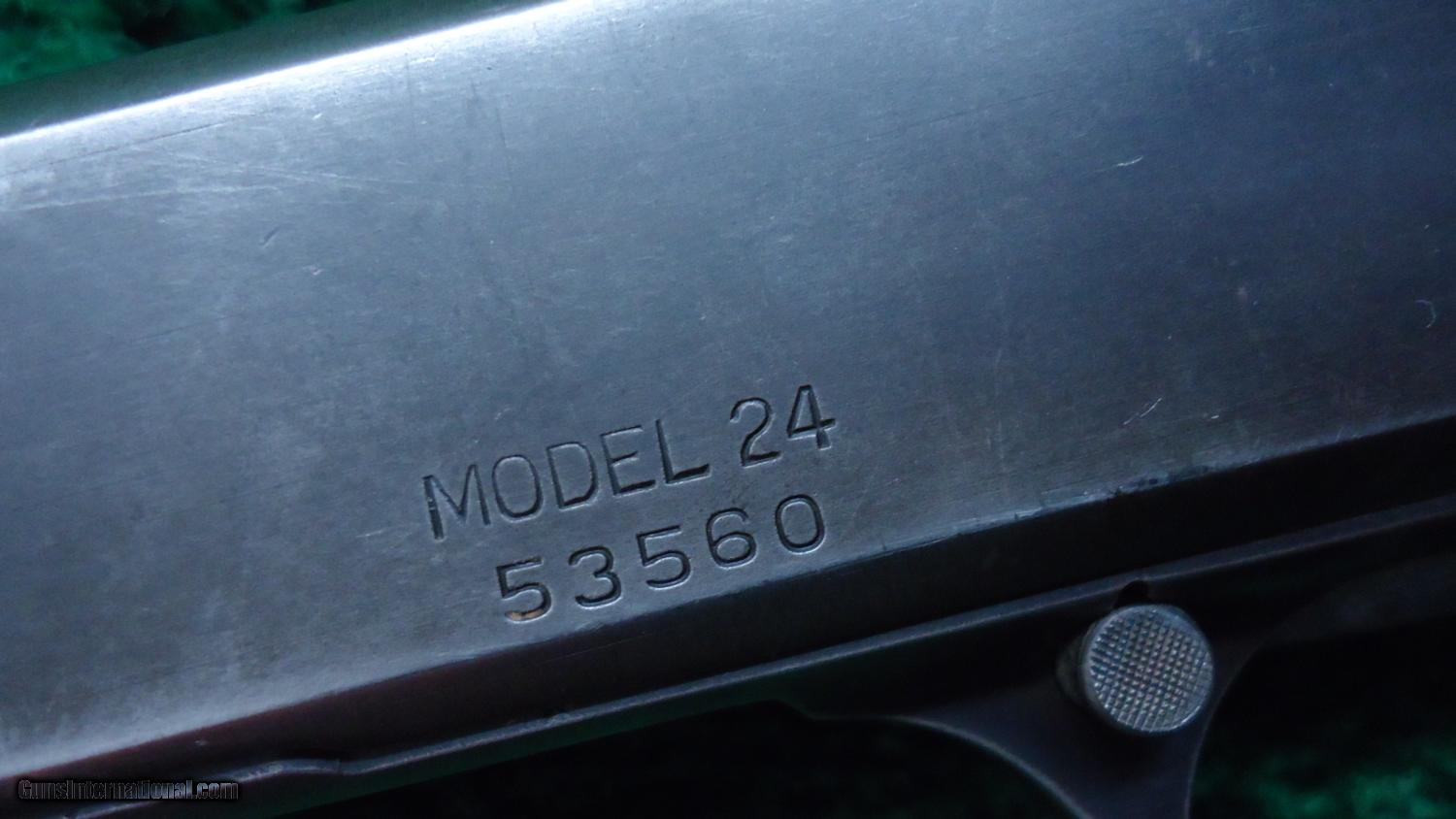 Description: The model 24 was the first Remington semi-auto that was chambered for 22 long rifle. They were built approximately from 1922 to 1935. Date code shows that this one was built in October of 1927. Bbl blue is pretty nice with just some wear at the muzzle and a few other spots. The receiver is the carry point and has quite a bit of wear but retains half or so aging blue. Rifling is good but there is a slight ring in the bore. The main detraction on this gun is some old tape in the wrist area. Could possibly remove the tape and repair the gun correctly? There is one screw missing on the bottom of the forearm. You don't see a lot of these around. Leroy Merz Antique Firearms specializes in antique and vintage Winchesters and other fine American firearms. Since 1965 Mr. Merz has taken part in the world of firearms and has been a contributor to many well known reference books. Just recently we mailed the 125th edition of our privately-published catalog. We have hundreds of additional guns in every price range at our home online. Search for Merz Antiques in google. SOLD Curio/Relic: Yes |
