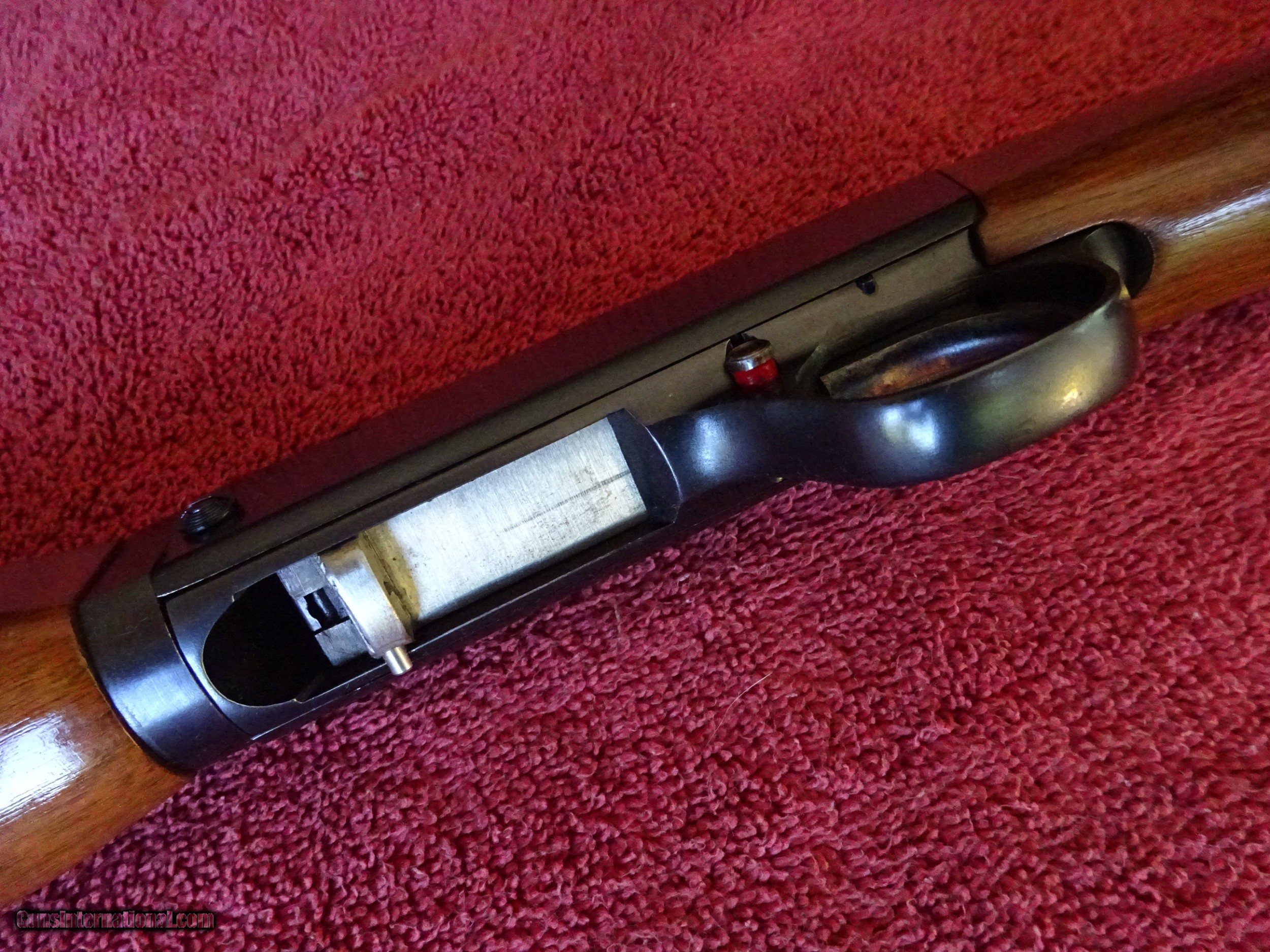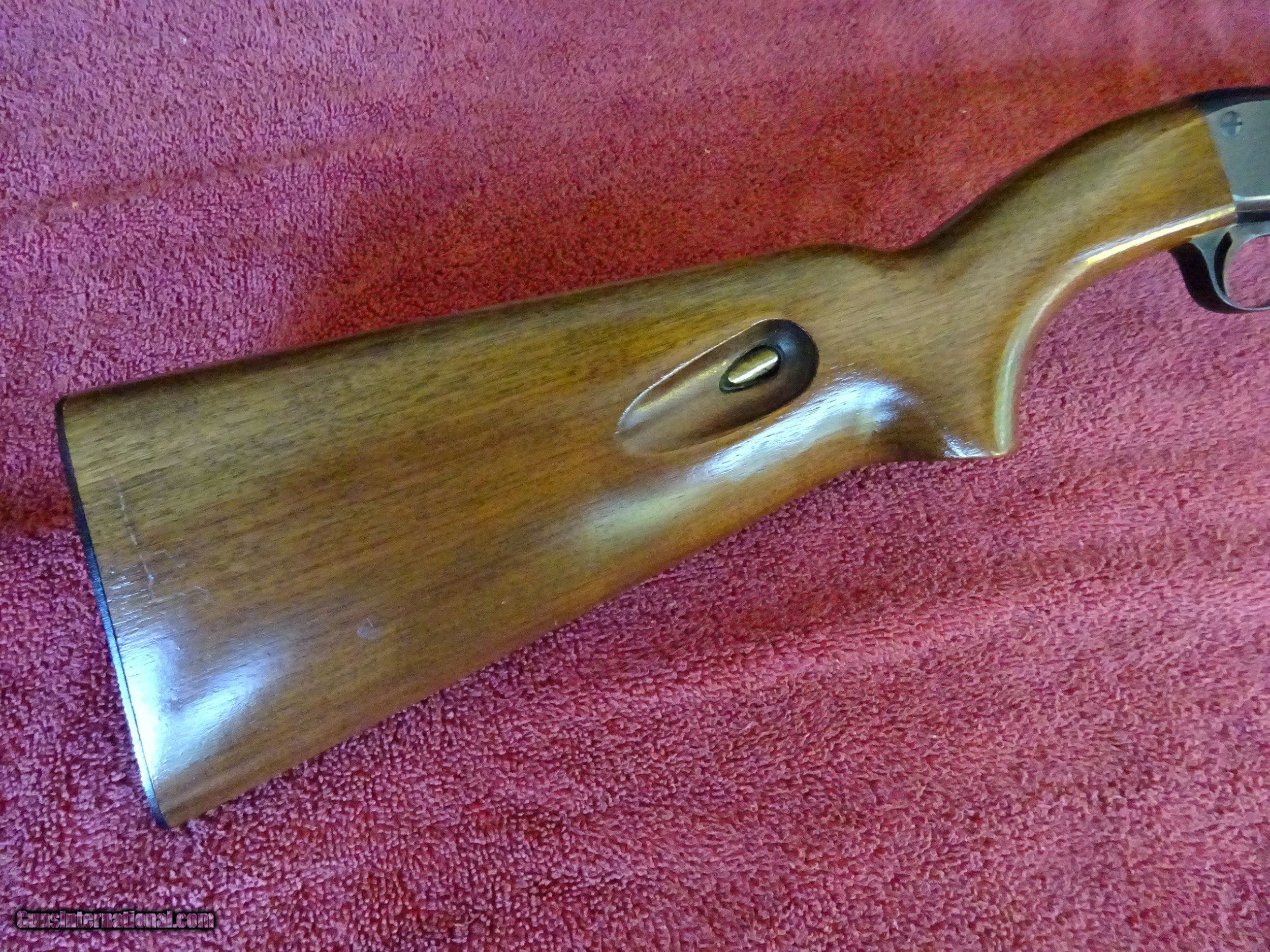 Description: SALE PENDING REMINGTON MODEL 241 SPEEDMASTER, 22 LONG RIFLE ONLY. 24" ROUND BARREL, MIRROR PERFECT BORE, 100% BRIGHT BLUE, WHITE BEAD FRONT SIGHT, STEP ADJUSTABLE REAR SIGHT. FRAME AND TRIGGERGUARD 100% BRIGHT BLUE, TRIGGER 100% BOLD CASE COLOR. PISTOL GRIP STOCK, SEMI BEAVERTAIL FOREND, AMERICAN WALNUT. EXCELLENT WOOD WITH MINOR HANDLING MARKS IN THE VARNISH, CHECKERED METAL BUTTPLATE WITH ALL ITS ORIGINAL FINISH, 100% ORIGINAL CONDITION. INCLUDES A COLORFUL INTRODUCTORY BROCHURE. MADE FROM 1935 TO 1951. THIS GUN WAS BUILT IN NOVEMBER 1948. IT WOULD BE DIFFICULT TO FIND A NICER EXAMPLE. $1175.00 + $60.00 Insured shipping to an FFL address. Layaway is available. See all Pats gun listings on this site! We also have hundreds of pieces of ORIGINAL gun company advertising & memorabilia available for sale on our site SPORTINGCOLLECTIBLES. We have no reprints or reproductions. Email for more information. SOLD Curio/Relic: Yes |