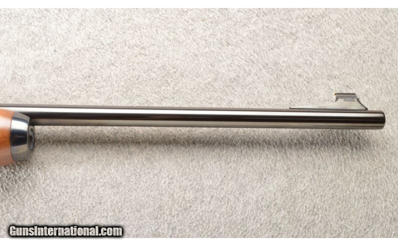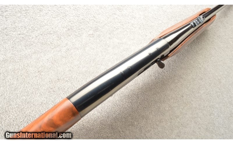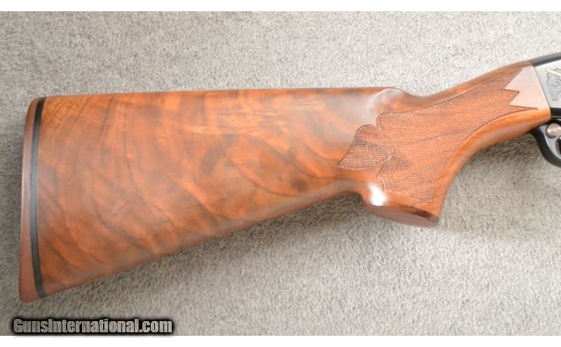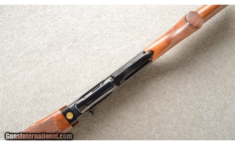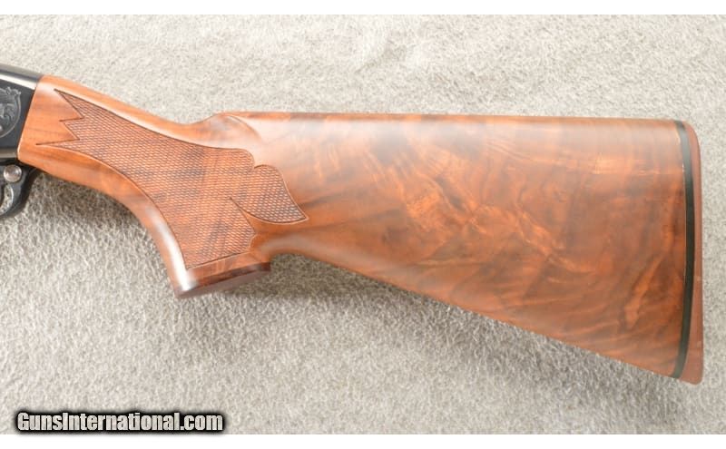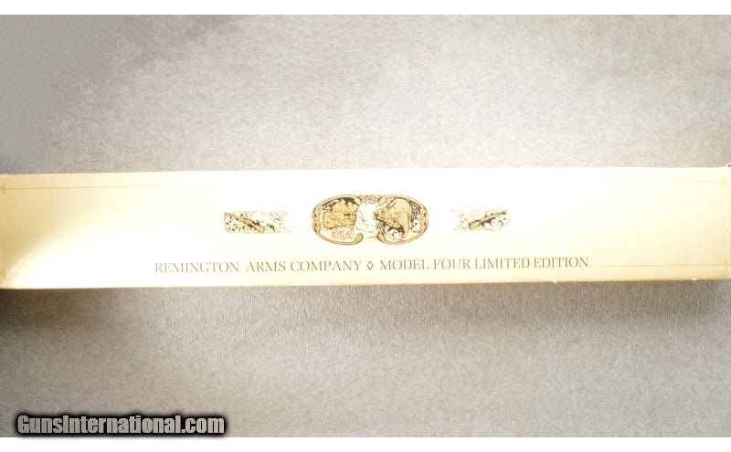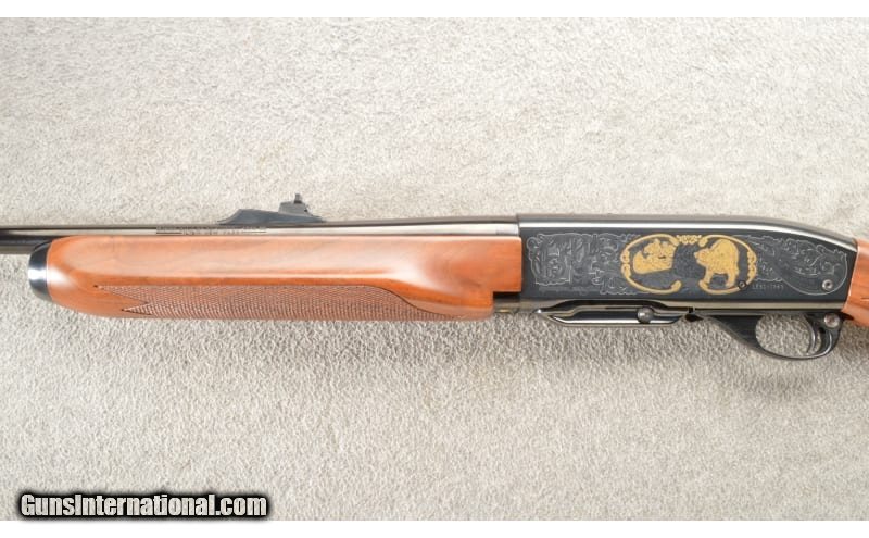 Description: Limited Edition Engraved Remington Model 4 Diamond Anniversary semi-automatic rifle chambered in 30-06 Springfield. This is a limited addition of 1,500 Diamond Anniversary Model 4 rifles. The receiver is engraved with floral scroll designs, gold bear and hunters in a canoe with gold scroll border on the left side and gold Model 4 and Model 8 rifles on the right side. The left rear of the barrel is marked "CUSTOM BUILT BY REMINGTON ARMS CO. / ILION, NEW YORK". This Remington features a raised ramp blade front and notch rear sights, receiver is drilled and tapped for optics mounting, checkered walnut forearm and pistol grip stock with a wood grip cap and a brown Remington recoil pad. Comes with the factory Remington magazine and box with sleeve. Manufactured in 1981 with serial # LE81-1243. We also have a Remington 1100 Diamond Anniversary with a consecutive serial # LE80-1243 for sale separately. If you are interested the SKU# is 3964578. .30-06 Springfield SOLD Chambers: Semi auto. Metal Condition: As new. Wood Condition: As new. Bore Condition: As new. Barrels: 22" barrel. Triggers: Single. Stock Dimensions: LOP 13.5". Fore End: Checkered walnut with finger grooves. Butt Pad: Brown rubber. Weight: 8 LBS Item Location: Owatonna, MN |