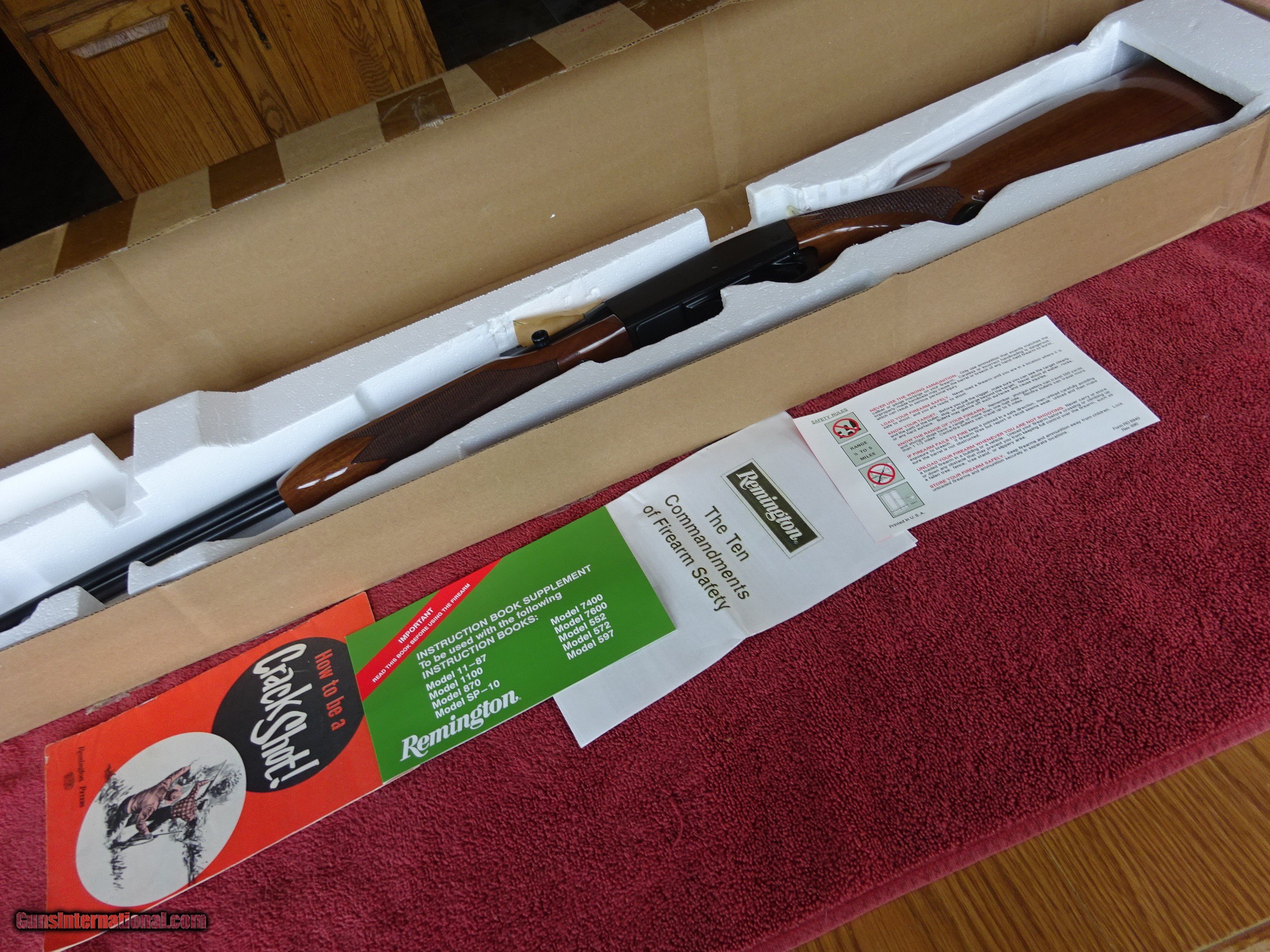 Description: REMINGTON MODEL 552 BDL, SPEEDMASTER, 22 AUTOLOADING RIMFIRE RIFLE. TUBULAR MAGAZINE, 21" BARREL, BIG GAME TYPE SIGHTS, BLADE RAMP FRONT SIGHT, STEP ADJUSTABLE REAR SIGHT. PISTOL GRIP STOCK, HAND-FITTED GRIP CAP, DUPONT HIGH LUSTER FINISH. REMINGTON MARKED BUTTPLATE, CHECKERED GRIP AND FOREARM. NEW IN ITS ORIGINAL SERIAL NUMBERED BOX WITH 4 PIECES OF PAPERWORK. ADDITIONAL END LABEL MARKED "DELUXE 22 AUTO WOOD". INTRODUCED IN 1966. $1275.00 + $70.00 Insured shipping to an FFL address. Layaway is available. See all Pats gun listings on this site! We also have hundreds of ORIGINAL gun company advertising & memorabilia pieces available for sale on our site SPORTINGCOLLECTIBLES. We have no reprints or reproductions. Email for more information. If you need to call, morning or evening is best, and please note the Seller's Inventory number. SOLD Curio/Relic: Yes |