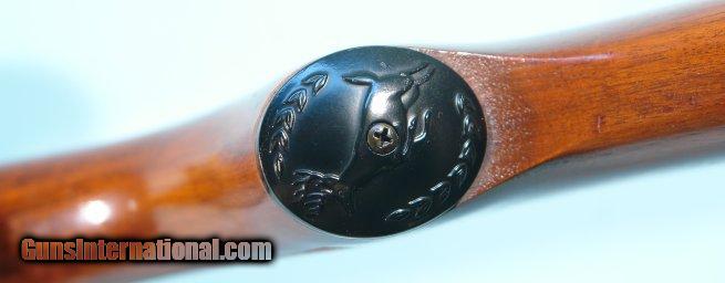 Description: REMINGTON MODEL 740 WOODMASTER .30-06 CAL. SEMI-AUTO RIFLE CA. 1956. All original and in near mint condition. 99% plus blue and all the wood finish. Mint bore and working order. Original swivels and magazine. Really nice 1950’s workmanship. SOLD |