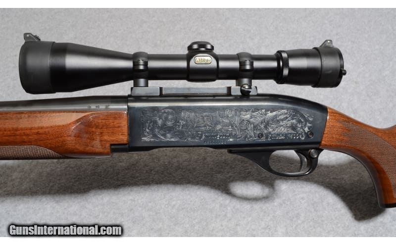 Description: The Model 7400 was introduced in 1981 and was basically the same as the Model Four. Major differences included a checkered pistol-grip and straight comb stock. Initially only offered with a 22 in barrel, in 1988 an 18 in version was introduced. The Remington Model 7400 is a series of semi-automatic rifles manufactured by Remington Arms. The Model 7400 was a replacement of the Model 740 rifle which Remington produced from 1952 to 1981. The 7400 model was ultimately replaced by the Model 750 in 2006. .243 Winchester SOLD Chambers: Bolt Action Metal Condition: Excellent with engraving Wood Condition: Excellent with some use marks Bore Condition: Excellent Barrels: 18 3/4 Triggers: Factory Trigger Stock Dimensions: 13 1/2" LOP Fore End: Checkered Modified Beaver Tail Butt Pad: Plastic Butt Plate Weight: 9 1/2 lbs. Sights: Nikon Monarch 4x40 Scope Item Location: Tulalip, WA |