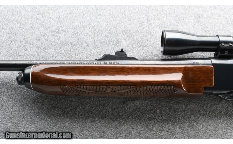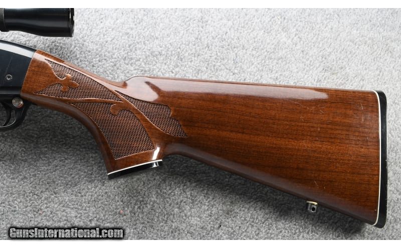 Description: A Semi-automatic rifle introduced in 1981 and remained in production until 2006. This one was made in 1986 and appears in very good condition. .30-06 Springfield SOLD Chambers: .30-06 Springfield in a four round detachable magazine semi-automatic rifle Metal Condition: Very good Wood Condition: "Good, shows some minor marks Bore Condition: "Very good, bright Barrels: 22 Stock Dimensions: 13.5" LOP Fore End: Checkered walnut with sling stud fore end cap Butt Pad: Remington composite Weight: 8 lbs 12 oz Sights: "Drift adjustable blade front, ramped adjustable leaf rear, fitted with a Weaver K4 scope Item Location: Grand Junction, CO |