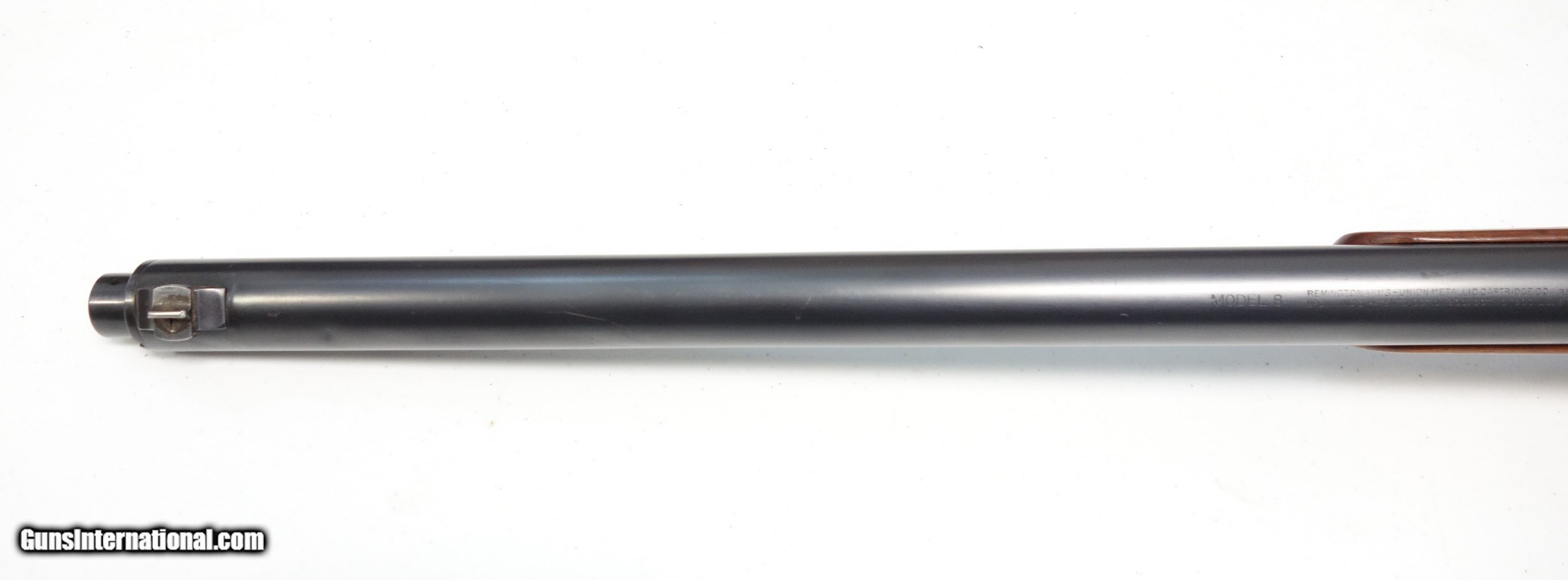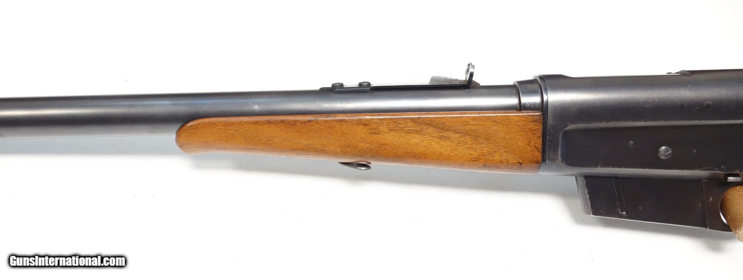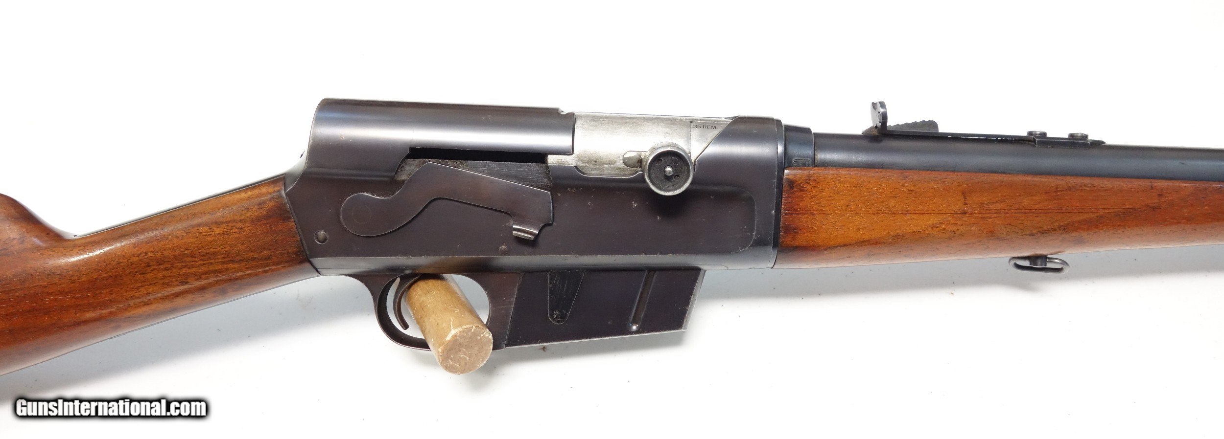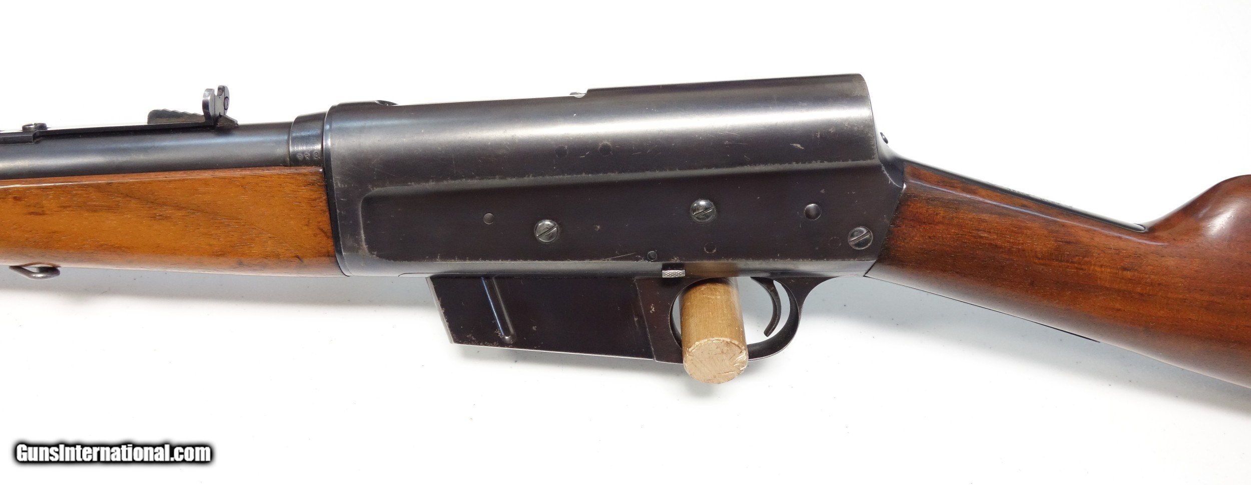 Description: Excellent and scarce example Remington Model 8 semi-auto rifle in .35 Rem. Caliber. S/N 50***. Very nice condition with all original finishes showing 95% overall. 22" barrel with good bore. Take down feature shown on underside of fore end. All mechanical functions appear to be working perfectly. The best I have seen in quite a while! SOLD Curio/Relic: Yes |