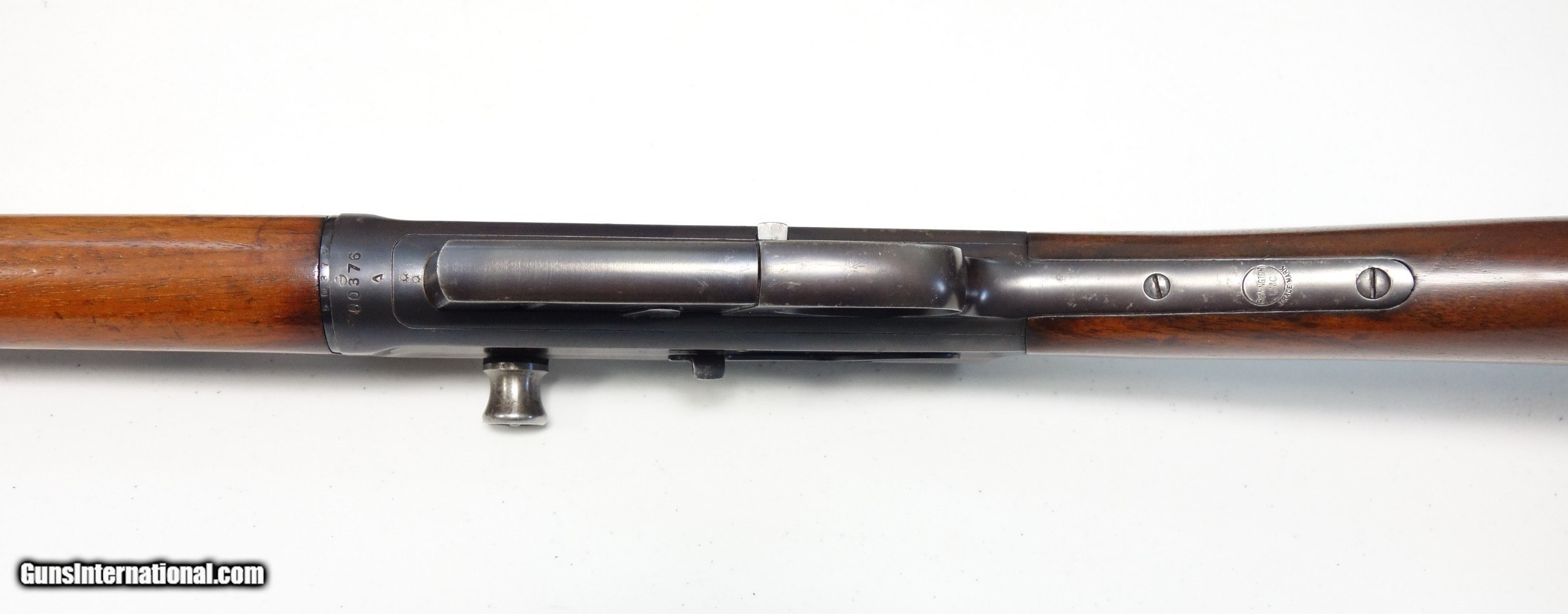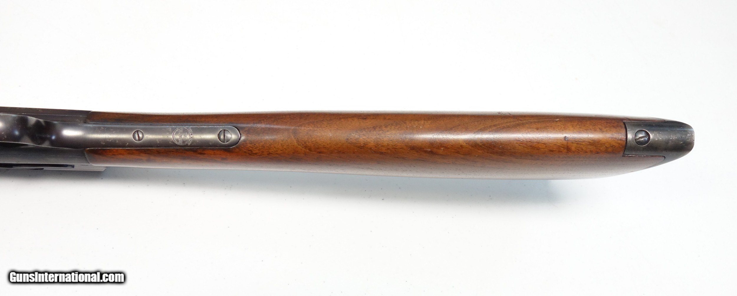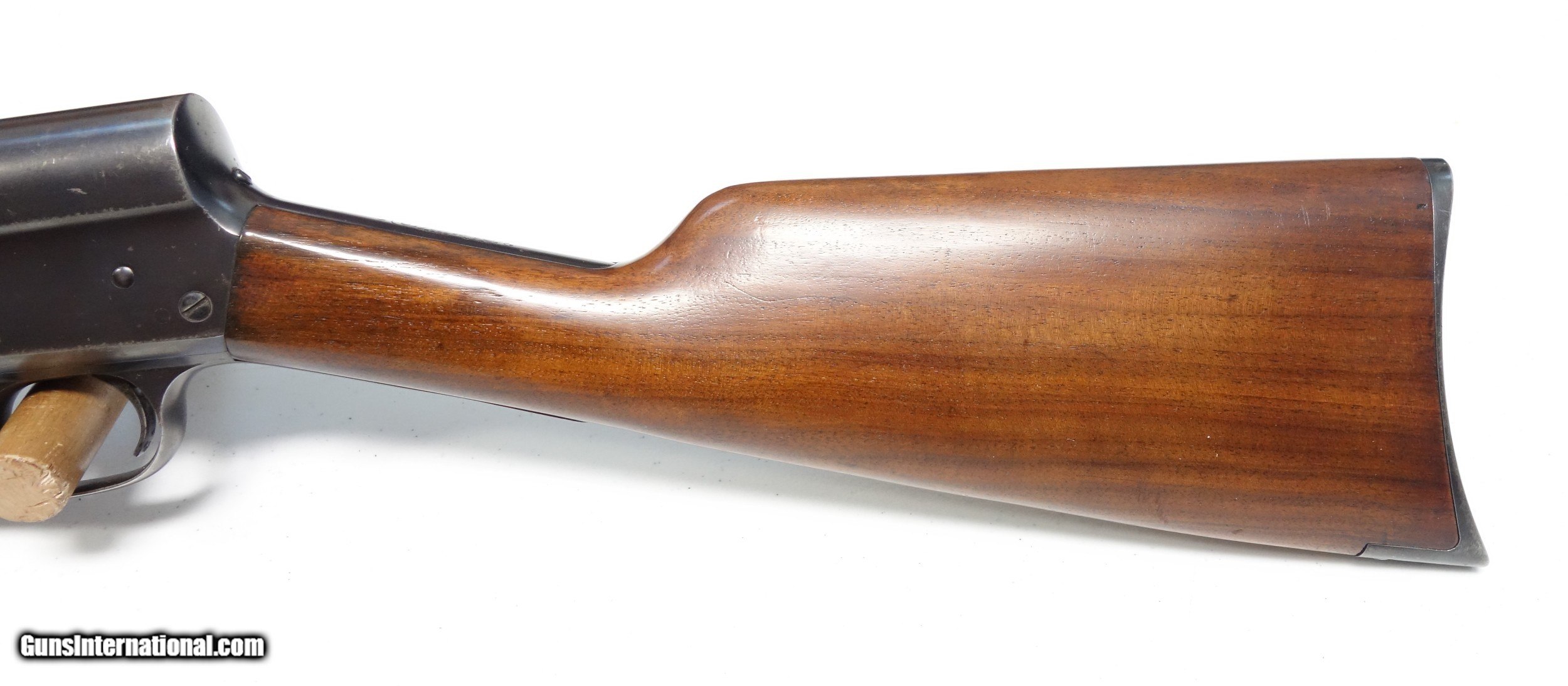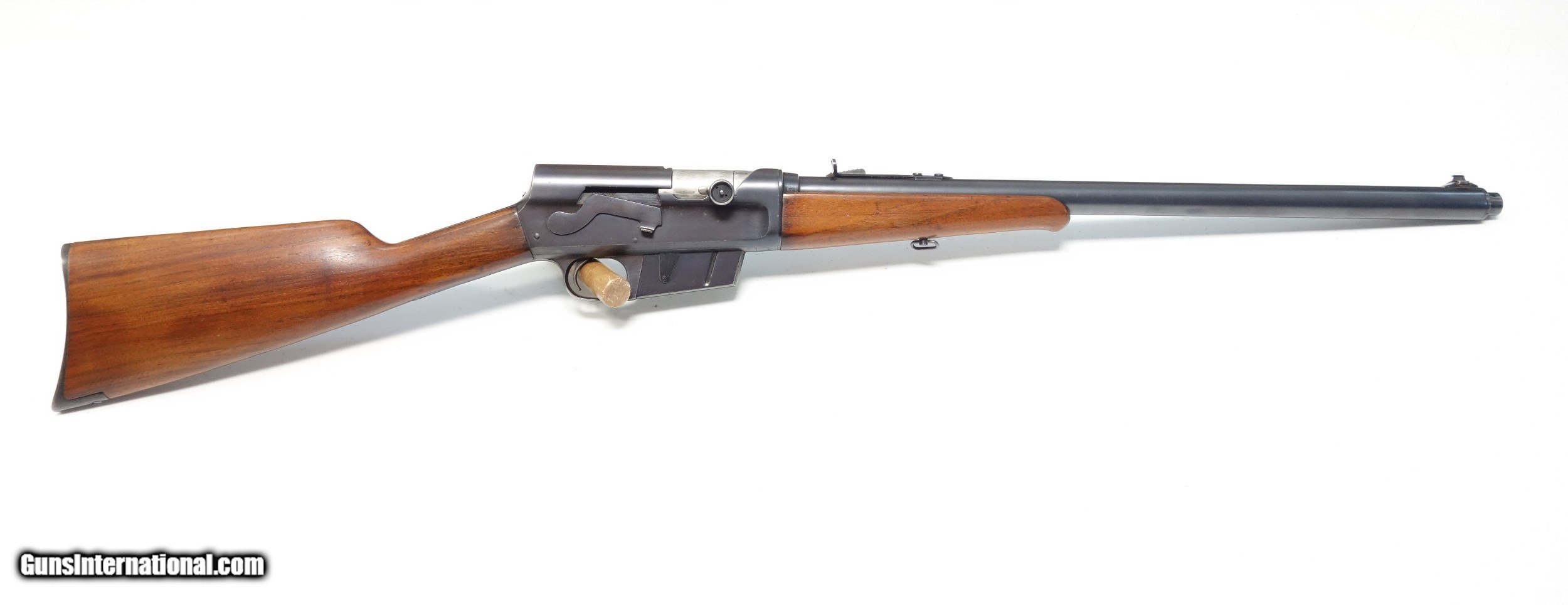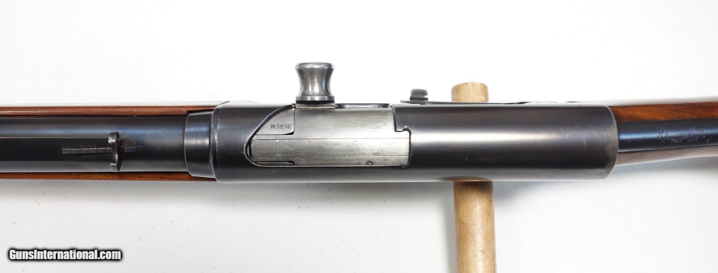 Description: Excellent and scarce example Remington Model 8 semi-auto rifle in .35 Rem. Caliber. S/N 50***. Very nice condition with all original finishes showing 95% overall. 22" barrel with good bore. Take down feature shown on underside of fore end. All mechanical functions appear to be working perfectly. The best I have seen in quite a while! SOLD Curio/Relic: Yes |