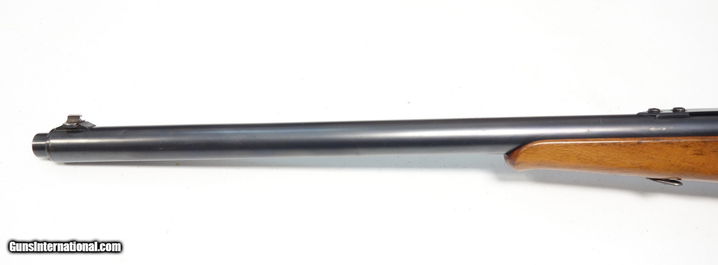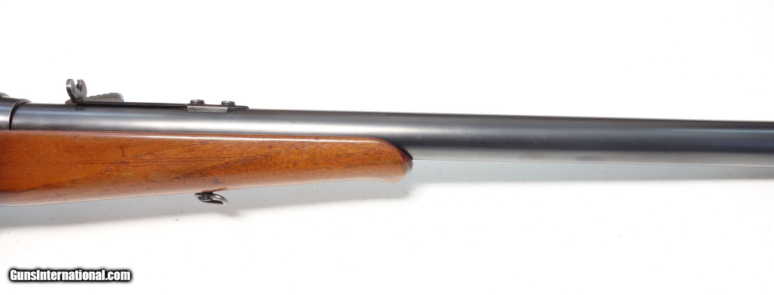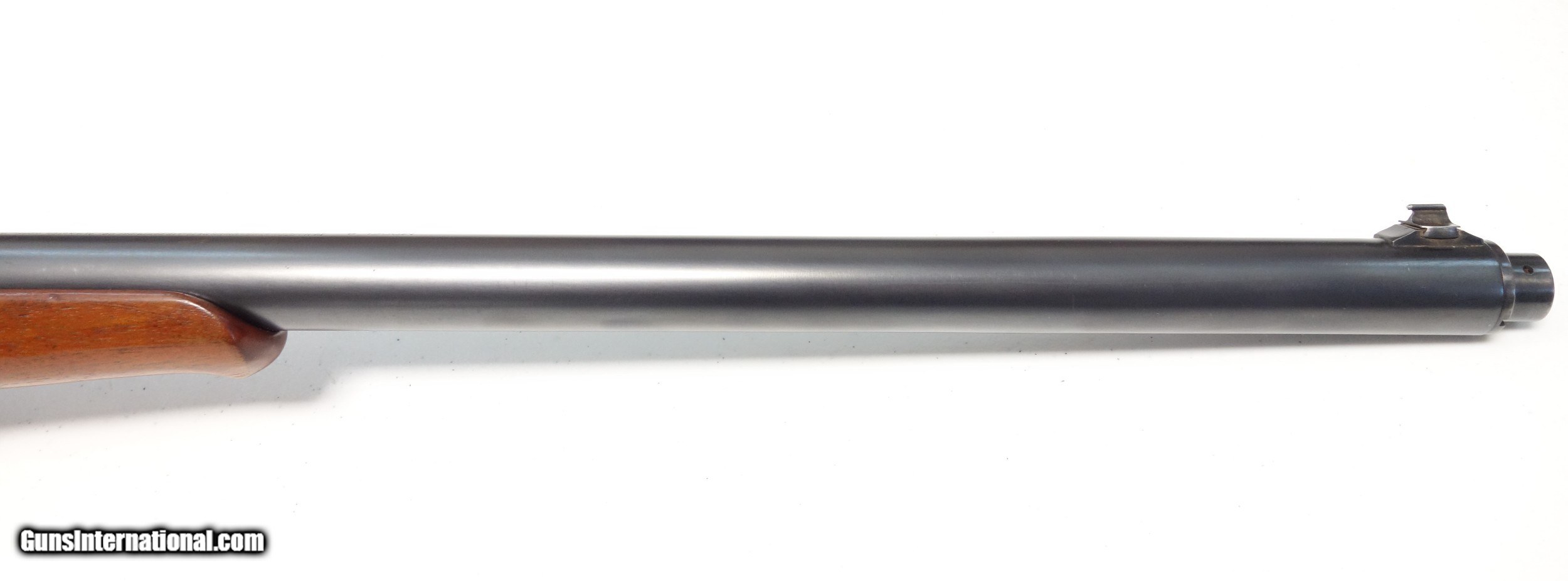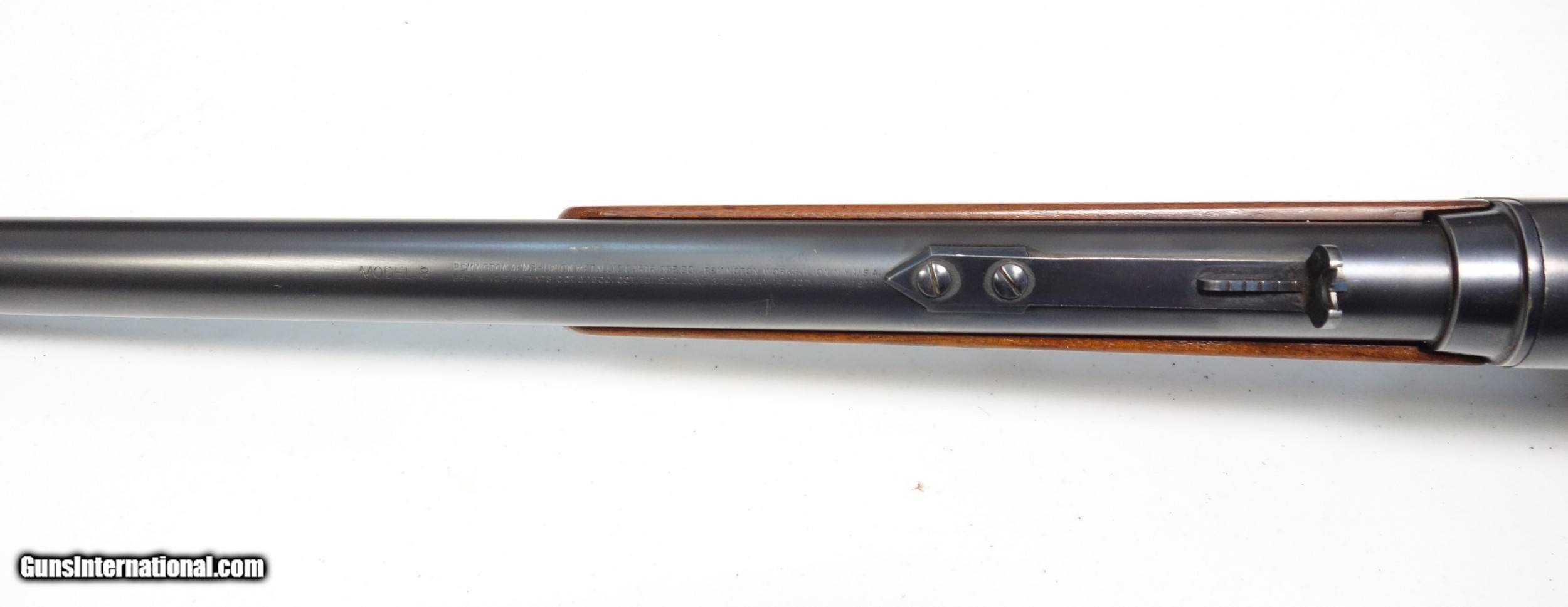 Description: Excellent and scarce example Remington Model 8 semi-auto rifle in .35 Rem. Caliber. S/N 50***. Very nice condition with all original finishes showing 95% overall. 22" barrel with good bore. Take down feature shown on underside of fore end. All mechanical functions appear to be working perfectly. The best I have seen in quite a while! SOLD Curio/Relic: Yes |