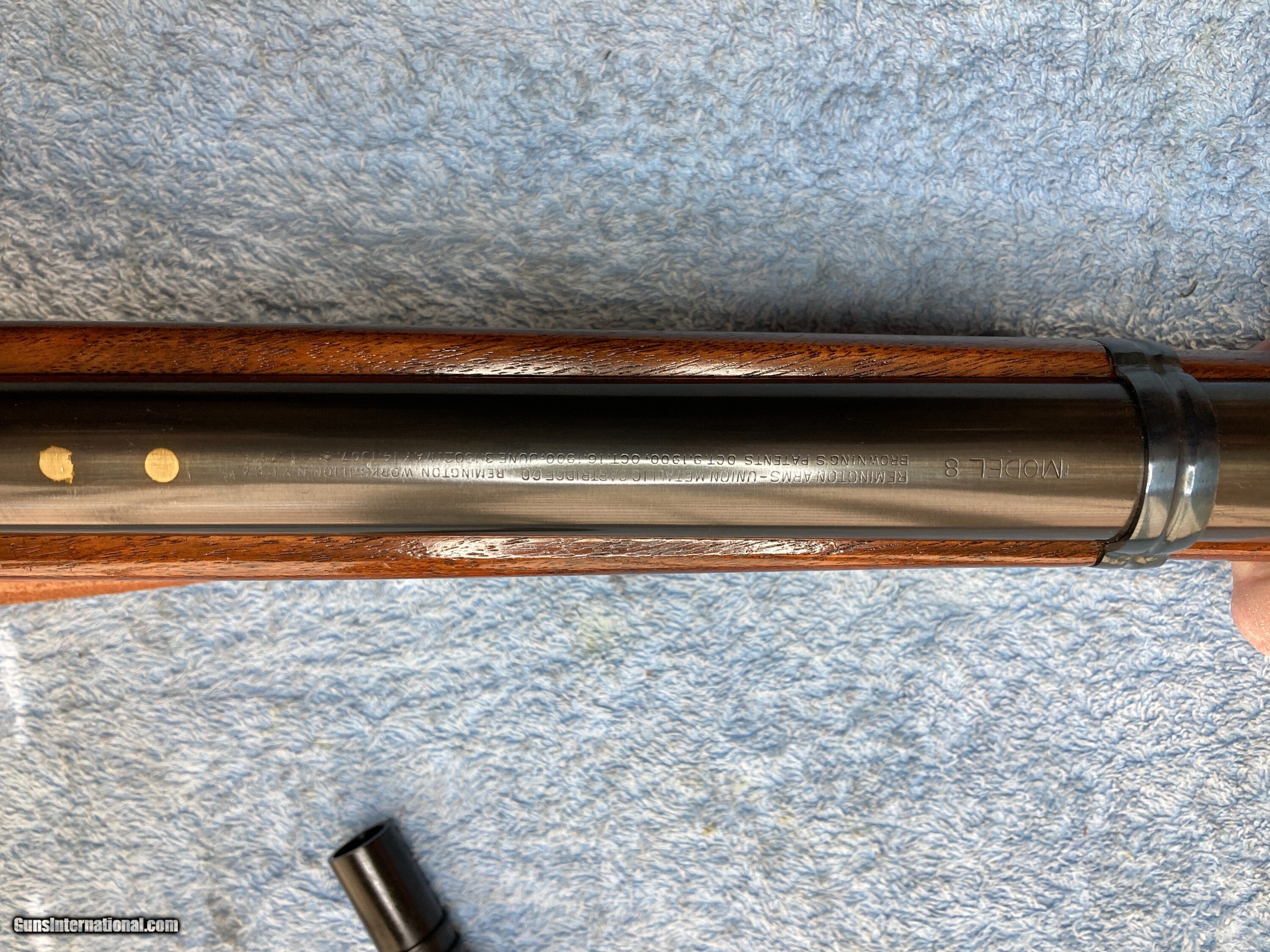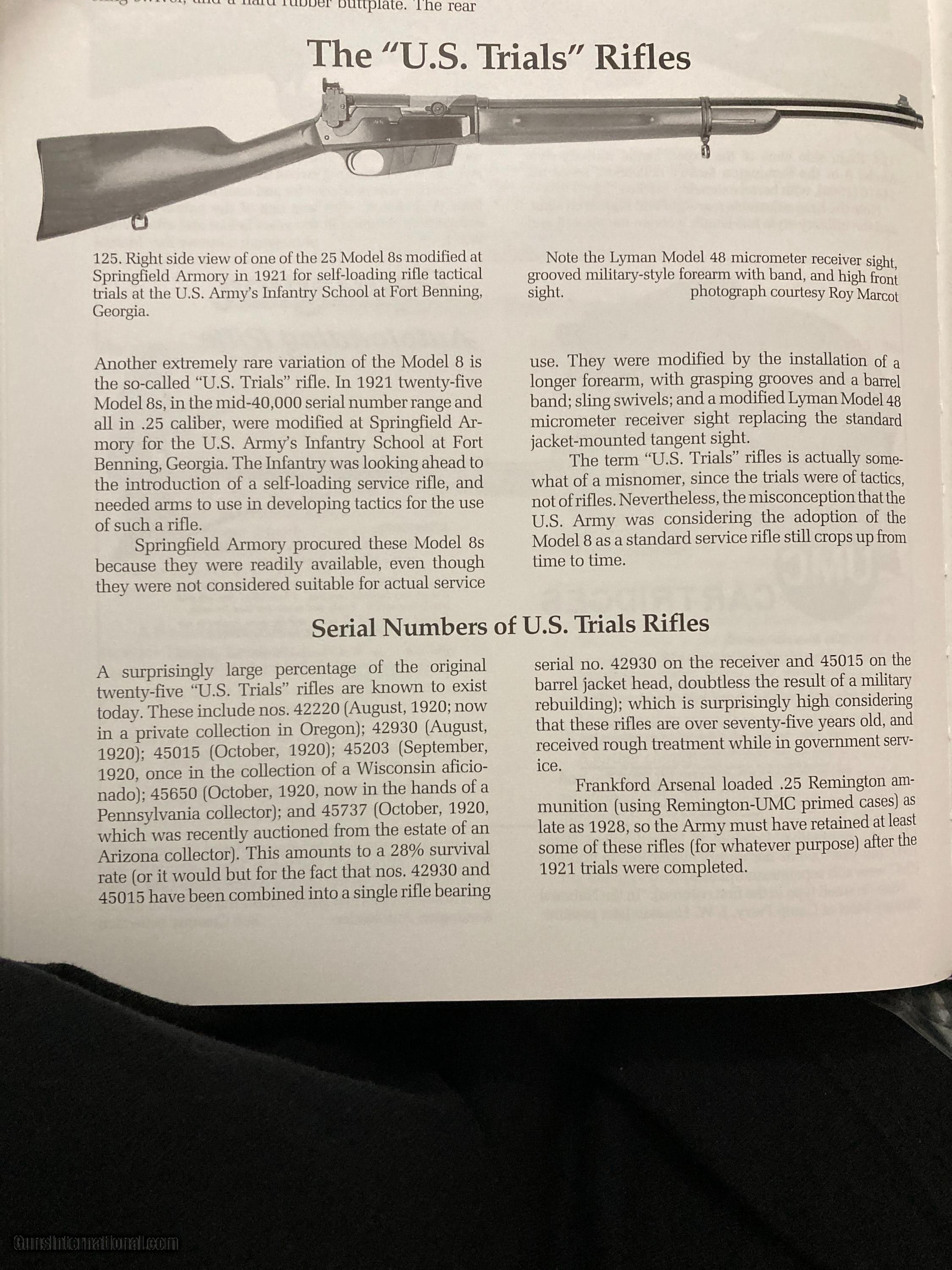 Description: From my personal collection of many years, I offer this 1921 Remington Model 8 Trials Rifle in original 25 Caliber Remington, although the serial number is of 1923 vintage. This was a complete custom build by CBR, at the time. Each and every detail is to exacting specifications. The wood stocks are high end walnut custom built by CBR as are the correct front sight, correct barrel band, 1 1/4" custom built Military Whelen Leather Sling & custom milled Lyman Model 48 micrometer receiver sight that had to be milled to the Model 8 receiver. Even the rear sight holes have been filled with brazing as were the originals. CBR always paid attention to details making them as humanly perfect as can be. The bore is super condition and a tack driver. CBR chose this particular rifle because of its original excellent original condition. I was fortunate to aquire it for my collection at the time. The last actual Trials rifle went on years ago and condition was excellent as was the winningat near $12,500. For any high end collector wishing to add a museum quality custom built Trials rifle, this is your chance! There were only 12 original Trials rifles known in existance from the original 25 built by Remington. This is an all matching serial number rifle # 47719. Original serial numbers started in the mid to upper 45,000 range. I have also included a photo from from John Henwoods book, The Great Remington 8 and Model 81 Autoloading Rifles on the Trials rifles. Please see photos for conditions & details, please ask all questions prior to s close as all sales are final! Per ATF Rules/Regs, I must have a signed/dated copy of your dealer's FFL or your C & R Collectors License for transfer.Please note, NO sales to California except on a C & R license, absolutely NO dealer FFL's! Payment must be made by United States Postal Money Orders or Certified Bank Cashier's Check ONLY, NO othe forms of payment are accepted! Payment must be received within 10 days of s close, please! Shipping by United States Postal Priorty mail with "full" insurance coverage. Once I have your FFL copy, I will furnish as an exact complete shipping cost fully insured by your zip code. I use heavy duty rifle boxes and thoroughly encase the rifle in a gun sock and bubble wrap to take up all box voids. Curio/Relic: Yes Rifle Caliber: .25 Remington Manufacturer: Remington Model: 8 Serial Number: 47719 Barrel Length: 22 Condition: Excellent Metal Condition: Excellent Wood Condition: Excellent Bore Condition: Excellent Action: semi Butt Pad: steel LOP: 13 3/4 Finish: Excellent Manufacture Date: 1923 Price: $4,500.00 Contact Seller |