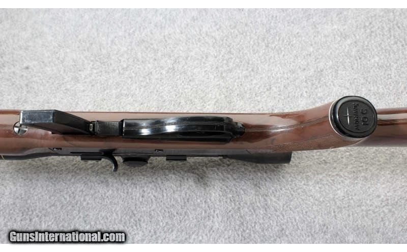 Description: The Remington Nylon Mohawk 10C .22 Long rifle semi-automatic rifle is a fine rifle for plinking and small game hunting. They were manufactured from 1972 to 1977. This rifle, with date code "RW", was manufactured in 1972. .22 Long Rifle SOLD Metal Condition: Fair with some deep scratches and fine pitting Bore Condition: Excellent Barrels: 19.5 inch barrel Stock Dimensions: 13.6 inch LOP Weight: 4 lbs. 12 oz. Sights: Leupold M8 4X scope Item Location: Lehi, UT |