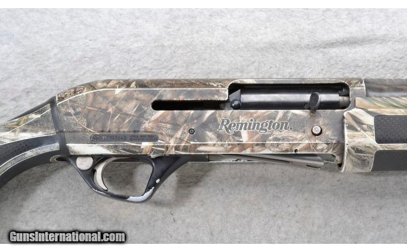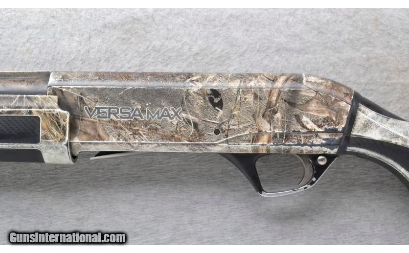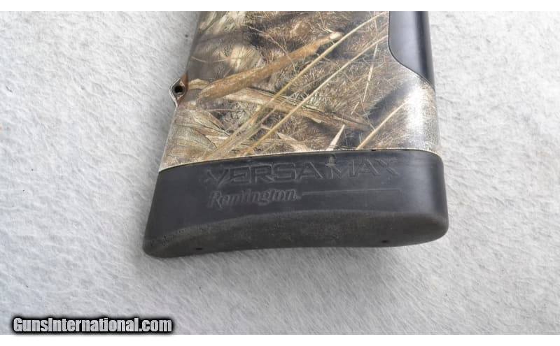 Description: This Remington Model Versa Max is a semi-auto 12 Ga. shotgun in Mossy Oak Duck Blind Camo. It has a 28 inch ventilated rib barrel. A red high visibility front sight. Middle bead is missing. It has a 3 1/2 inch chamber. Choke tube is missing. The butt stock is a textured black rubber grip in polymer pistol grip and with a black rubber comb. The forearm is a black rubber grip in polymer with finger grooves. 12 Gauge SOLD Chambers: 3 1/2 inch. Metal Condition: Good. Has some camo wear areas. Bore Condition: Shiny. Barrels: 28 inch ventilated rib barrel. Stock Dimensions: LOP 14 inches. Fore End: Textured black rubber grip in polymer with finger grooves. Butt Pad: Remington SuperCell black rubber recoil pad. Weight: 7 LB. 15 OZ. Sights: Green high visibility front and a missing middle bead. Chokes: "No choke tube in gun, Item Location: Richfield, WI |