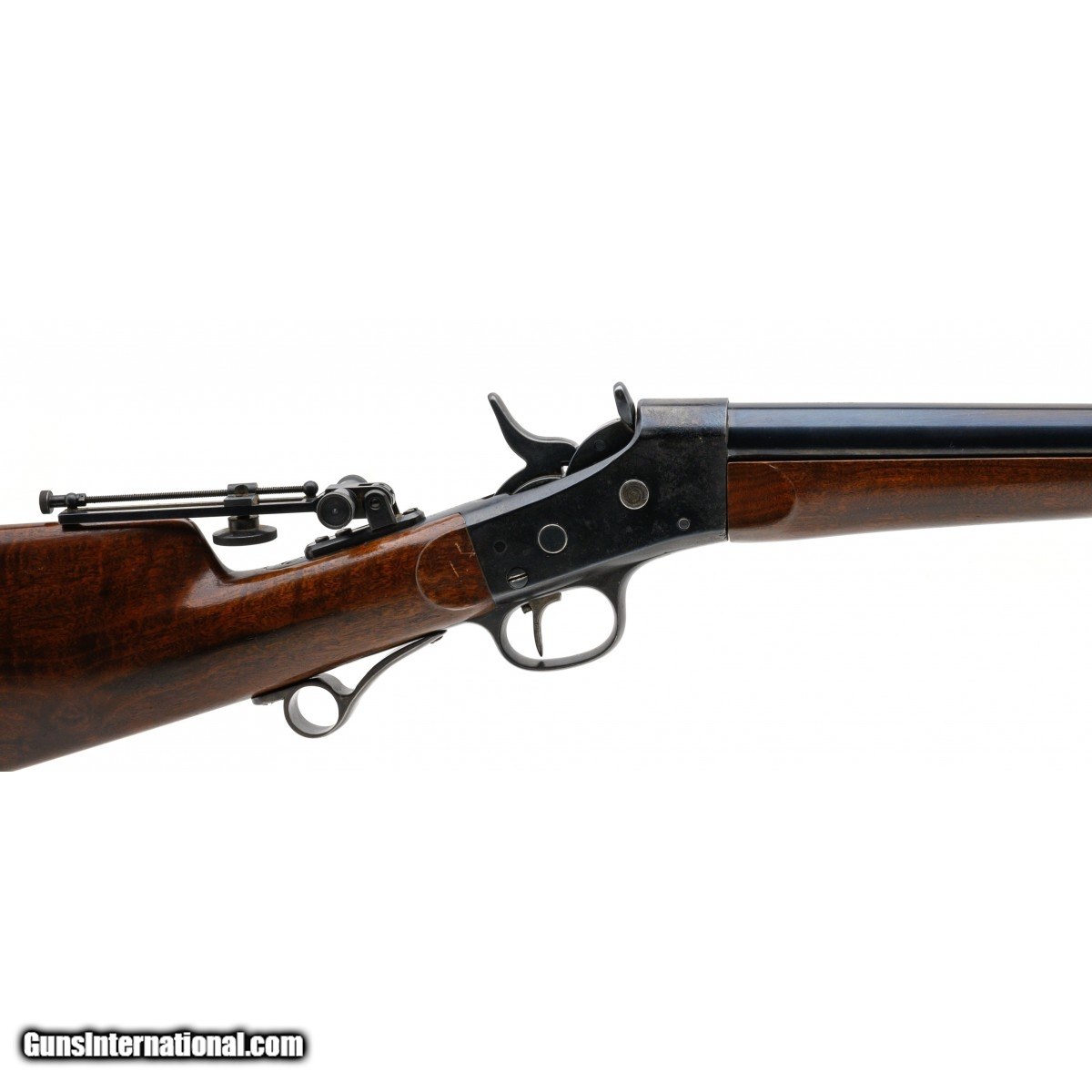 SN: M92T021JCS. Early 1900's receiver with a modern .40-65 28"" barrel. Bore is excellent. Custom single shot target rifle made from a Remington Rolling Block receiver. Has a heavy barrel, nicely figured custom stock, and long range vernier sight. The receiver shows some pitting under the reblued finish, the rest of the gun is excellent. A good looking rifle. (CONSIGNMENT)
