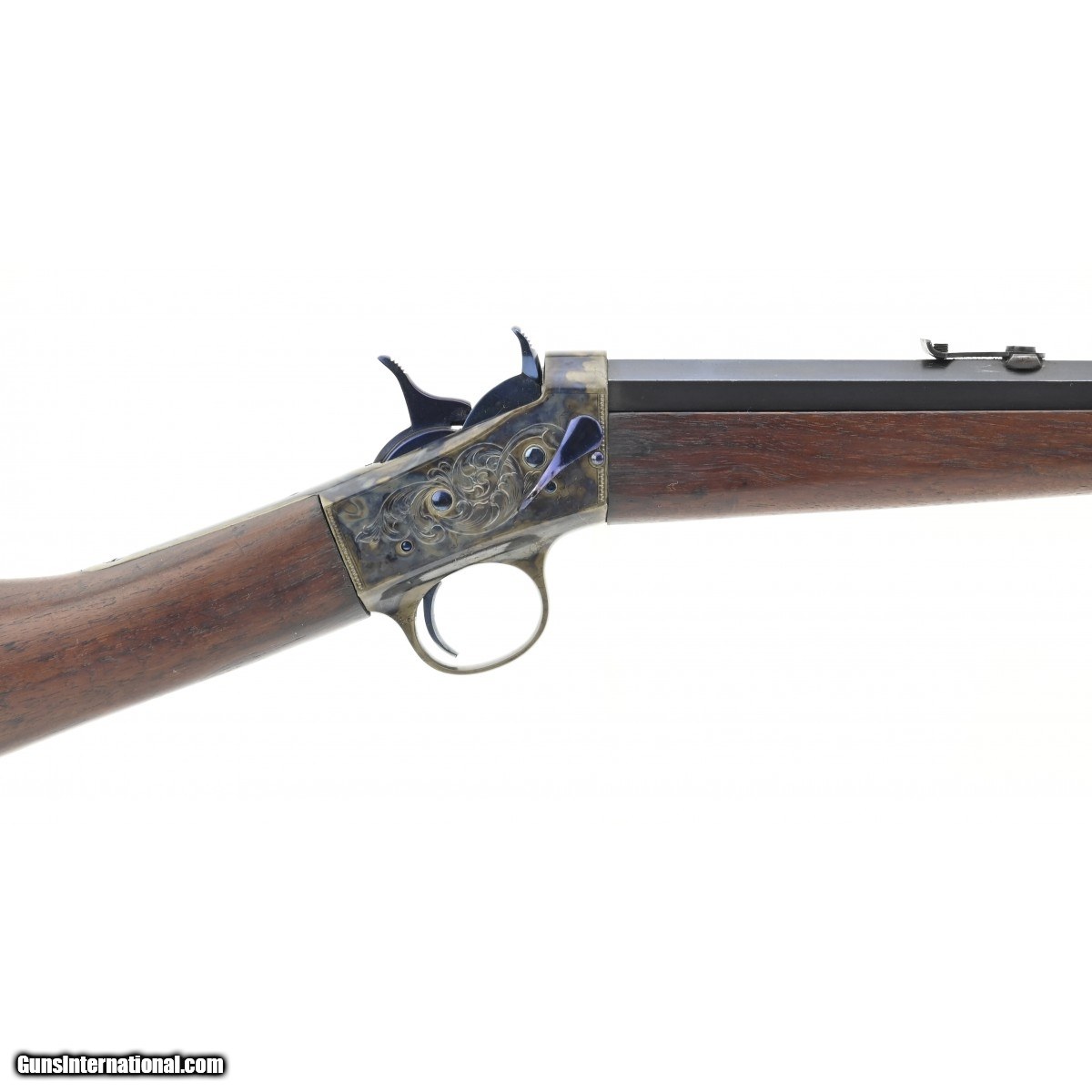 Description: "Ken Hurst Engraved Remington 4 .32 RF caliber rifle. Rolling block rifle. Receiver has elegant scroll engraving and vivid case colors, other small parts have fire blue finish. Receiver is signed “K. Hurst". Quality work done by a renowned engraver. SOLD |