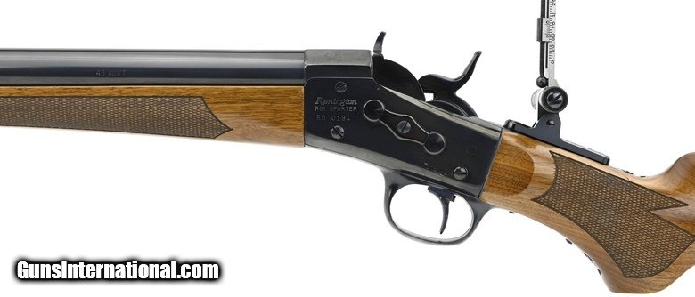 Description: "Remington RB1 Sport .45-70 caliber rifle. Modern made rolling block rifle. Has a 30" heavy round barrel, Vernier tang sight and spirit level front sight. SOLD |
