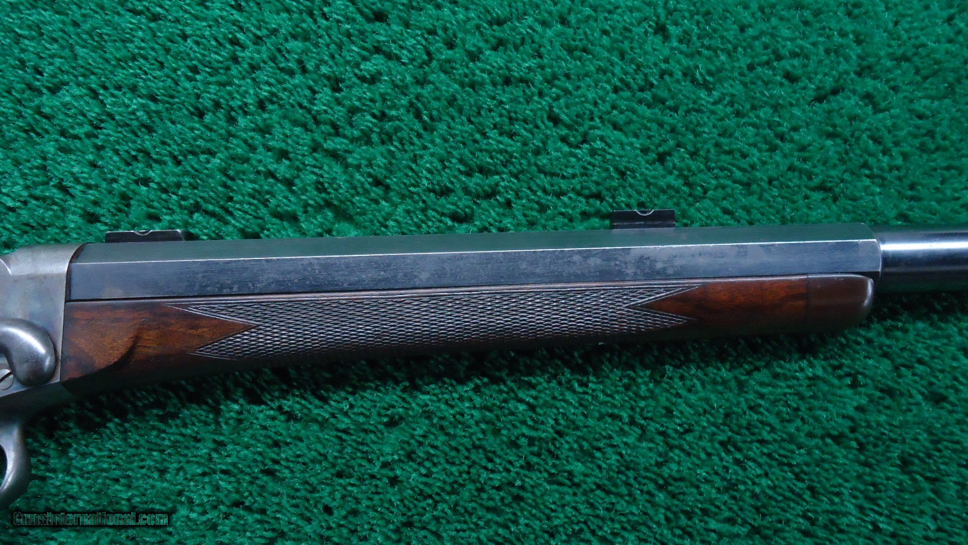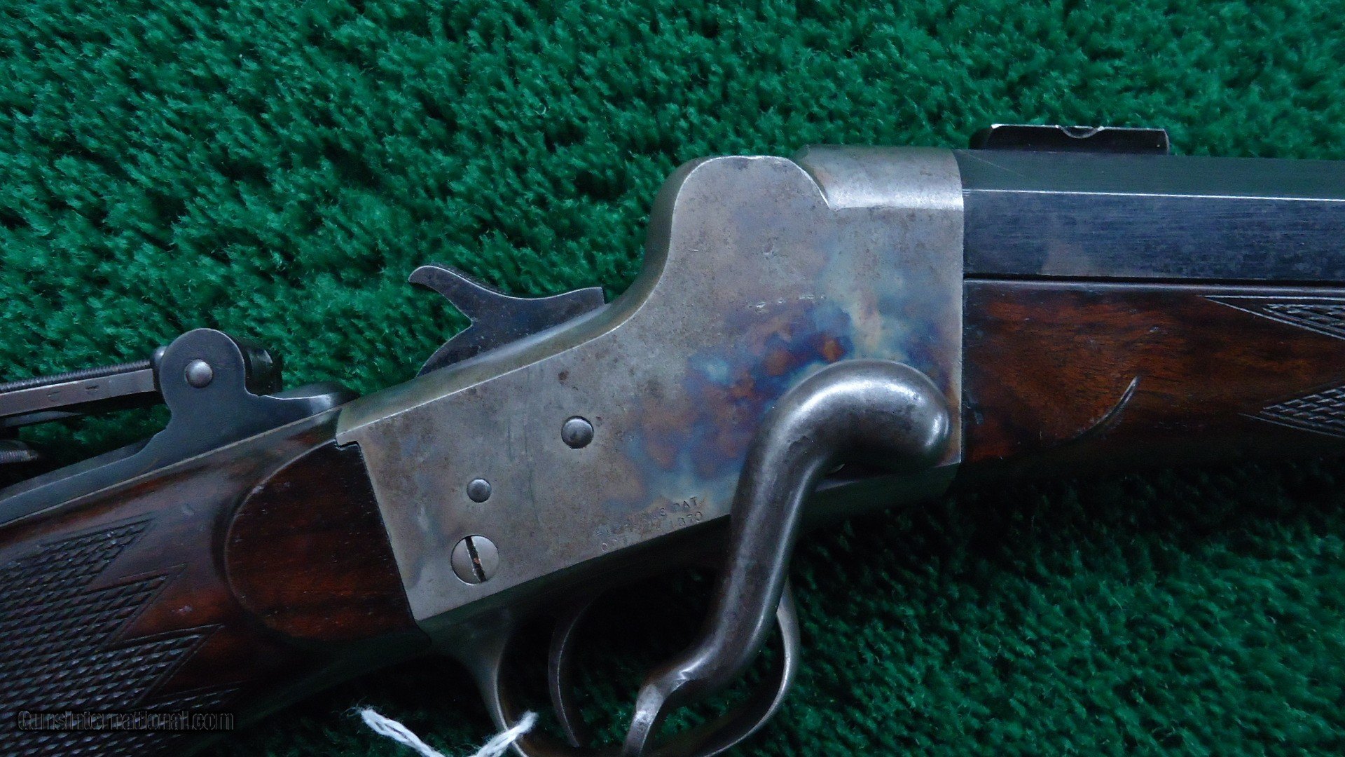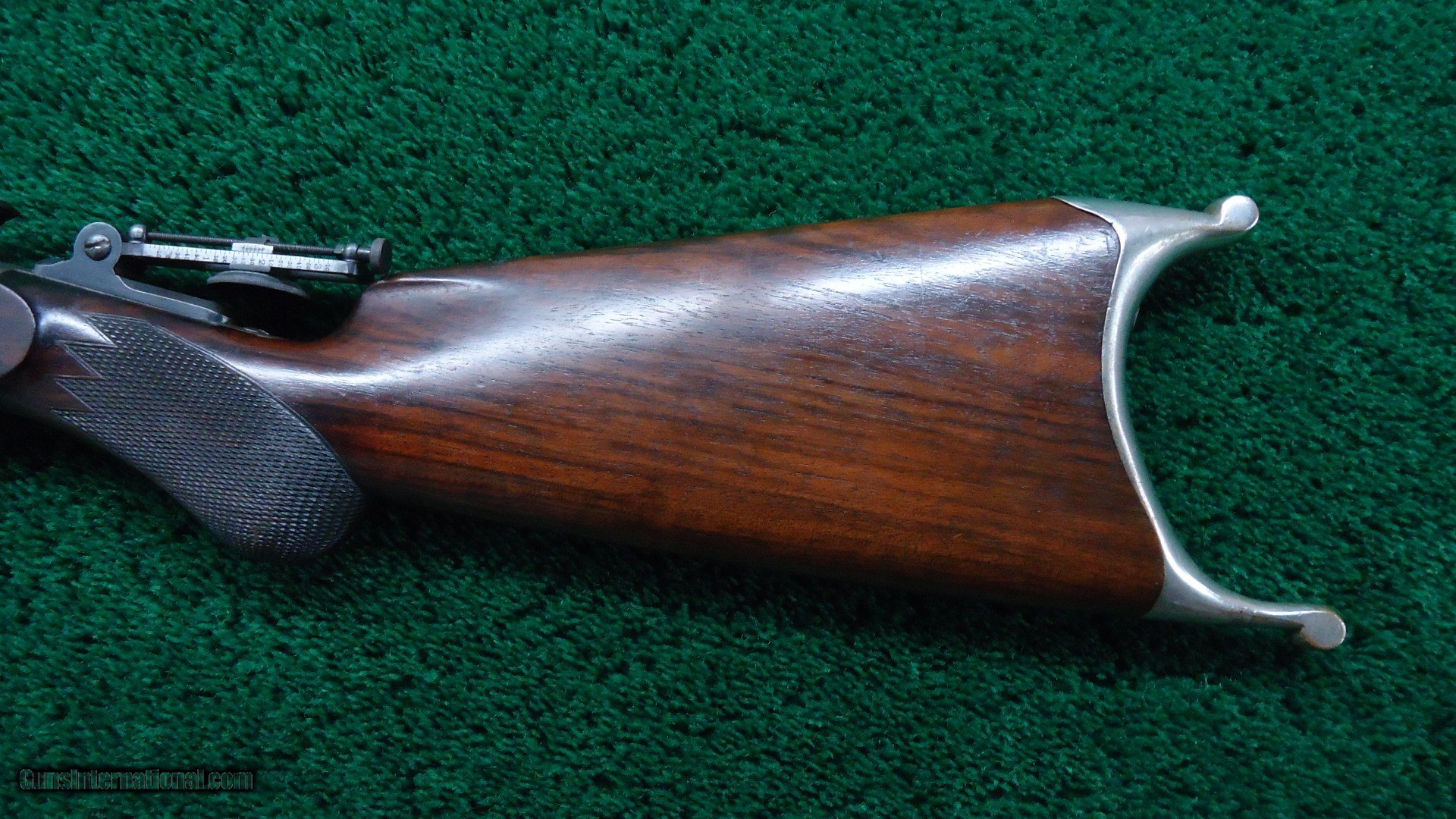 Description: 27 inch part round part octagon barrel with a bright shiny near excellent bore. Chambered in 40 1-7/8 caliber. Barrel retains most blue with patches of flaking and light spots of oxidation. Good sharp markings. Sights include a wind gauge front with an aperture insert and a Mid-Range tang sight. Barrel is also fitted with a pair of scope blocks. Frame has about 75% bright case colors with the balance muting to a silver/gray color with a few scattered spots of light oxidation. The breechblock has most all of the bright blue remaining. Hammer and trigger also retain most original fire blue. The checkered pistolgrip buttstock and forearm are in good condition with sharp checkering and nice figure. The nickel plated buttplate still has most of it's nickel. Mechanics are in good working order. Leroy Merz Antique Firearms specializes in antique and vintage Winchesters and other fine American firearms. Since 1965 Mr. Merz has taken part in the world of firearms and has been a contributor to many well known reference books. We have hundreds of additional guns in every price range at our home online. Search for Merz Antiques in google. SOLD Antique: Yes Rifle Caliber: .40 |