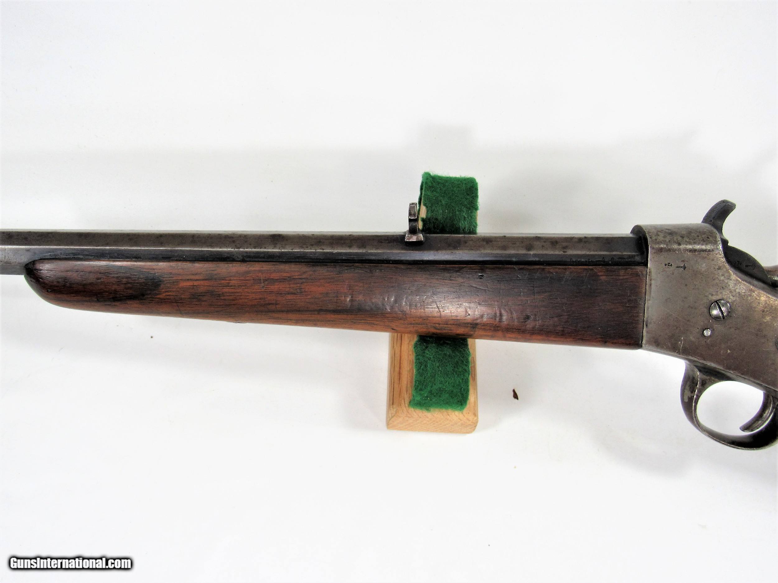 Description: BELGIUM ROLLING BLOCK (COPY OF A REMINGTON) 32RF, OCTAGON BARREL. METAL TURNING BROWN, GOOD SOLID WOOD, FAIR BORE, ANTIQUE SOLD Antique: Yes Rifle Caliber: .32 RF |