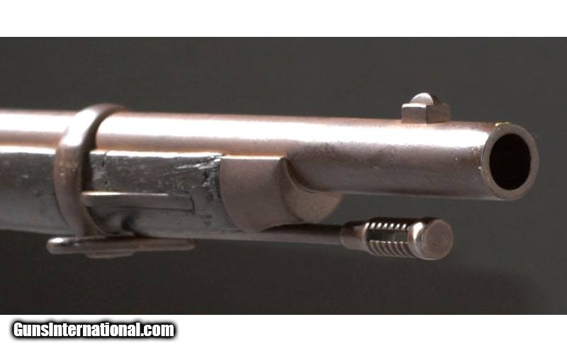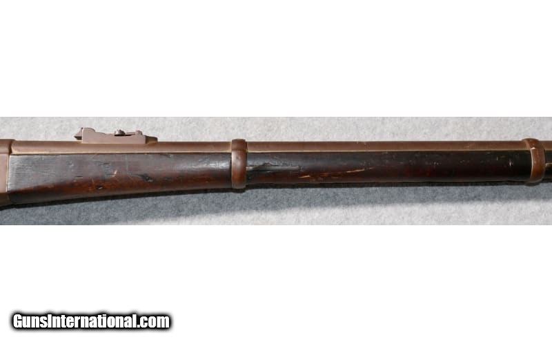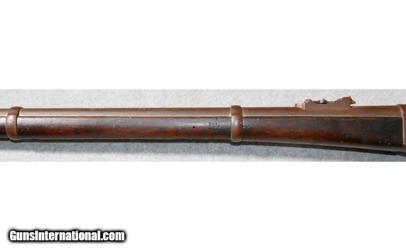 Description: Well over 1,000,000 of these rifles were made between 1867-1888 in myriad calibers for nations worldwide. These rifles saw limited, unofficial, service in the U.S. Army and was commonly seen in the hands of both sides of the Indian Wars of the 1870s and 1880s. .50-70 Government SOLD Antique: Yes Chambers: .50 Government Metal Condition: "Fair-Good, The vast majority of the finish has turned to a brown patina. There is scattered, shallow pitting across the rifle. The screws on the left side of the receiver have become damaged over the years. Wood Condition: "Good, The wood has become dark with age. It seems to be original and unrefinished, may have been replaced over the years. Free of cracks but many smaller marks are present. Bore Condition: "Good, The rifling is still present and in reasonable shape. The bore is shiny and free of major obstructions. There seems to possibly be some small pits in the barrel. Barrels: 36" Barrel with three bands Triggers: Factory trigger Stock Dimensions: 14 5/8" LOP Fore End: Walnut forearm and stock Butt Pad: Steel buttplate Weight: 8lbs 13oz Item Location: Lacey, WA |