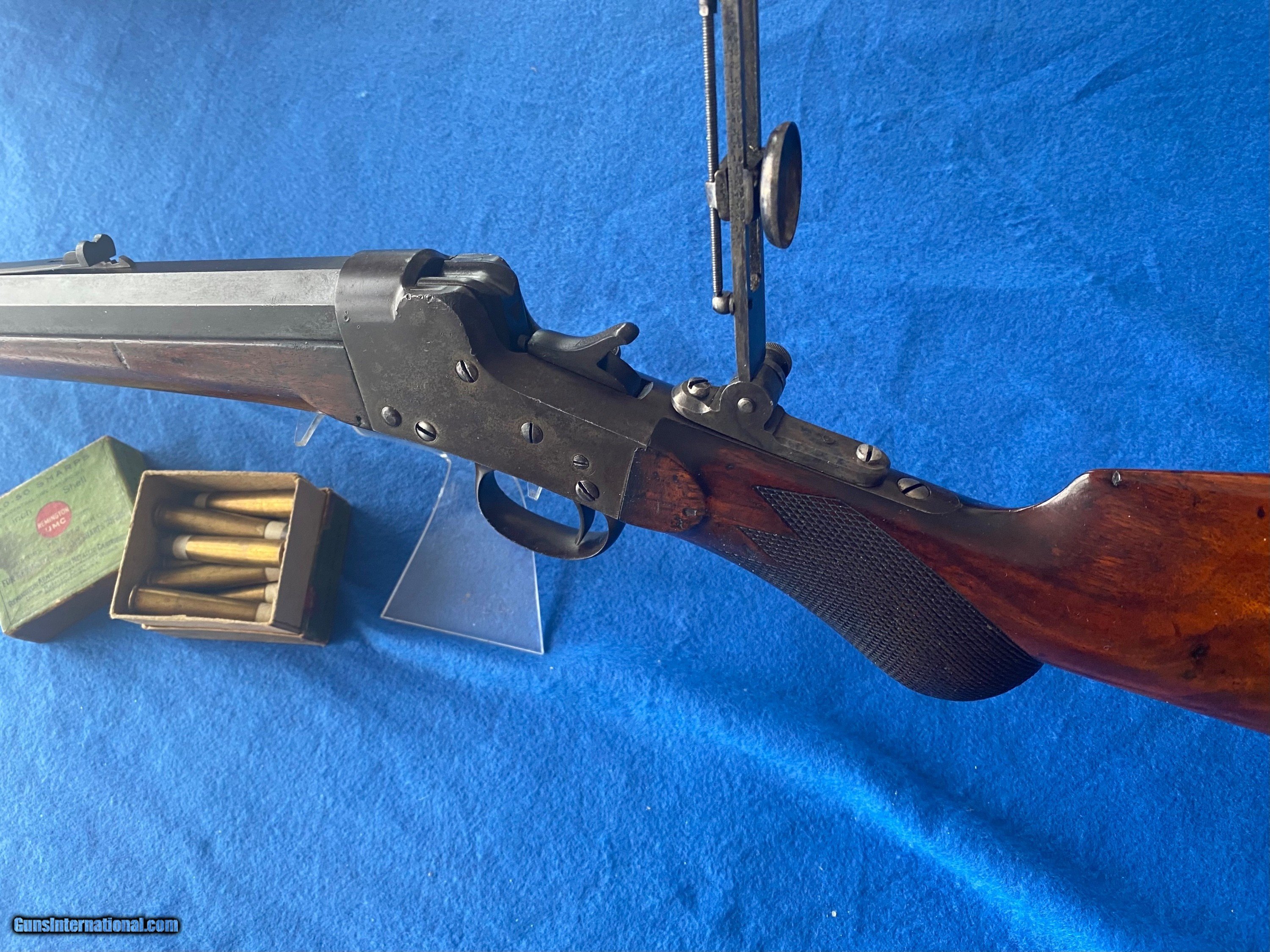 Description: Remington Hepburn with all matching serial numbers under three hundred! The twenty eight inch 1/2 octagon barrel has a good shootable bore and original Remington sights in addition to the long range tang sight.The wood is sound with some usage marks a extra finish,but no sign of having been sanded.Mechanical function and marking are all very good.This is a great collectable in original condition just like we like to find them. Do not hesitate to contact me with any questions,I am easy to get along with! Antique: Yes Price: $3,900.00 Shipping: $80.00 Buy Now Contact Seller |