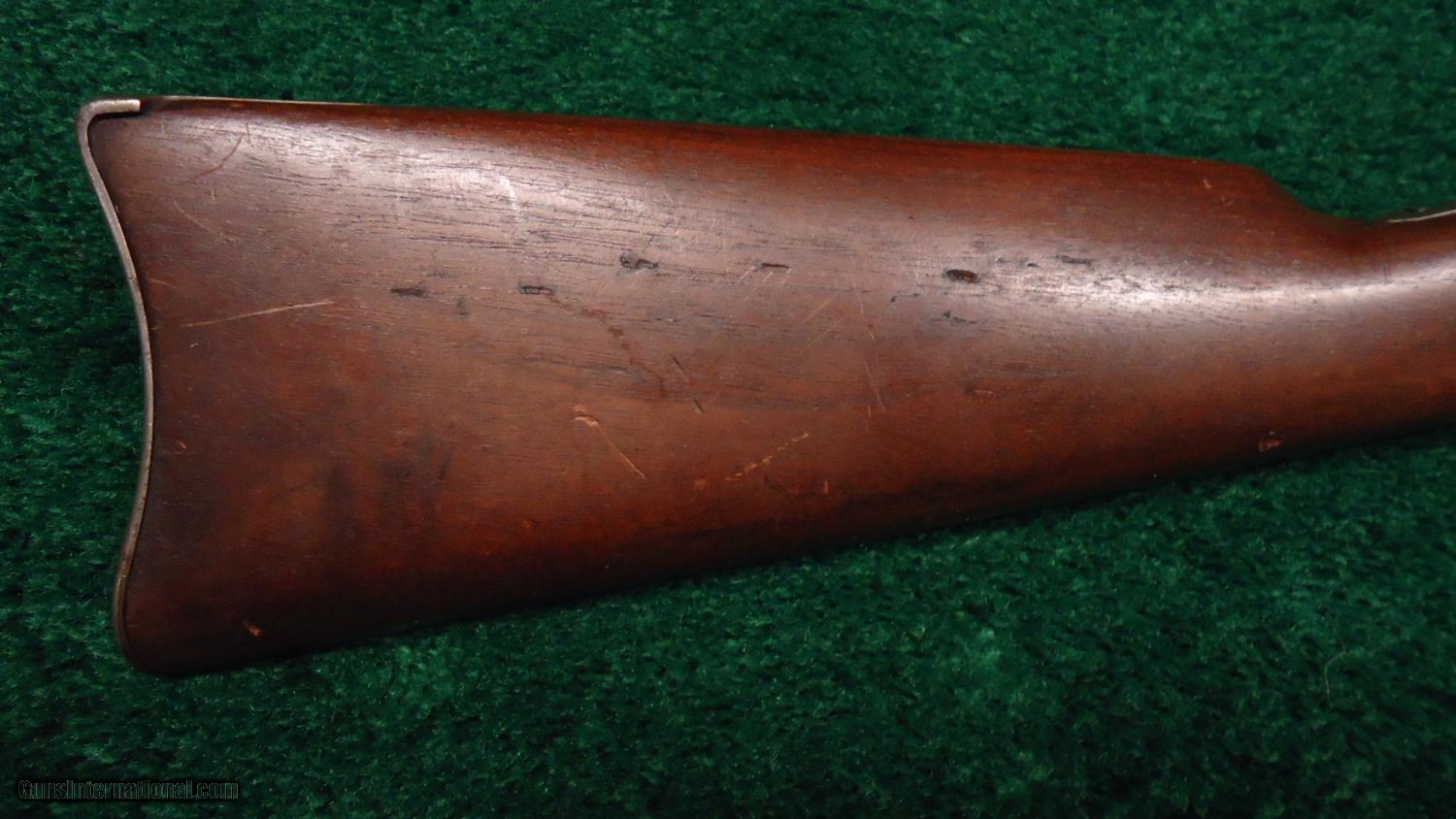 Description: This is a rolling block action and has the Remington patent on the upper tang. On the receiver on the right side is "USM Springfield 1870". This is one of the rolling blocks that was built by Springfield in agreement with Remington. The cal marking on the bbl is "43". All the metal is a grey/brown. The bbl has some pitting that was cleaned years ago and has turned an antique color. You can feel and see those pits. The receiver also has some blotchy pits mostly on the left side. The right side where the marking is looks quite nice. Inside the bore is actually pretty good with strong rifling. Light to moderate pitting in the chamber area and light roughness throughout. This bore would be at least good to good plus. As in most of the Rolling Blocks the action is nice and solid. The wood is in overall good cond. Shy at the upper tang. The forearm is in good overall cond and may have had some oil rubbed on it years ago. An interesting collectible gun. Leroy Merz Antique Firearms specializes in antique and vintage Winchesters and other fine American firearms. Since 1965 Mr. Merz has taken part in the world of firearms and has been a contributor to many well known reference books. Just recently we mailed the 125th edition of our privately-published catalog. We have hundreds of additional guns in every price range at our home online. Search for Merz Antiques in google. SOLD Antique: Yes |