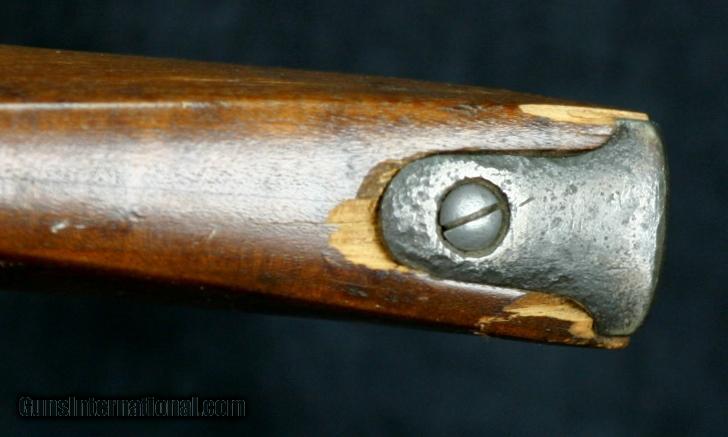Description: 7mm, 30 inch barrel, excellent rifling, 80% barrel and receiver blue thinning to silver, stock is chipped around butt plate top tang, rest of the wood is very good, mechanically excellent, one screw missing on sight, markings excellent. SOLD Curio/Relic: Yes |