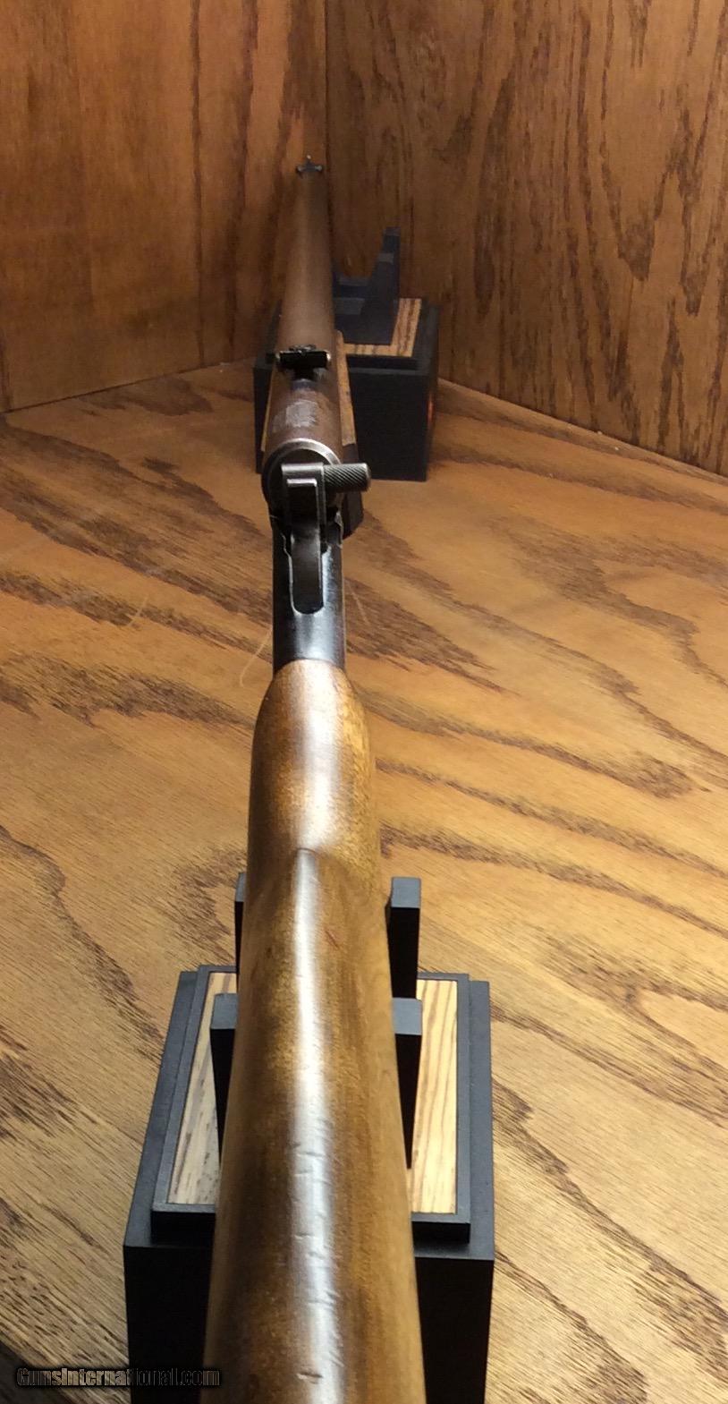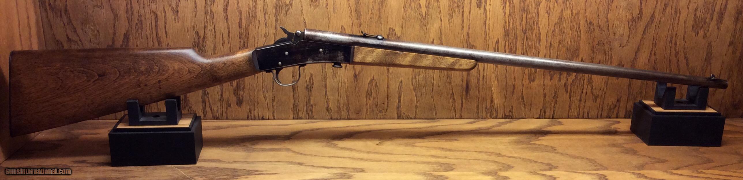 Description: Remington Model 6 falling block rifle, chambered in .22 Short, Long, and Long Rifle. Overall, the gun is in nice shape; a dark patina has appeared on the barrel and receiver. The furniture is also in good condition, both still have their original finish. The bore is in good shape as well. SOLD |