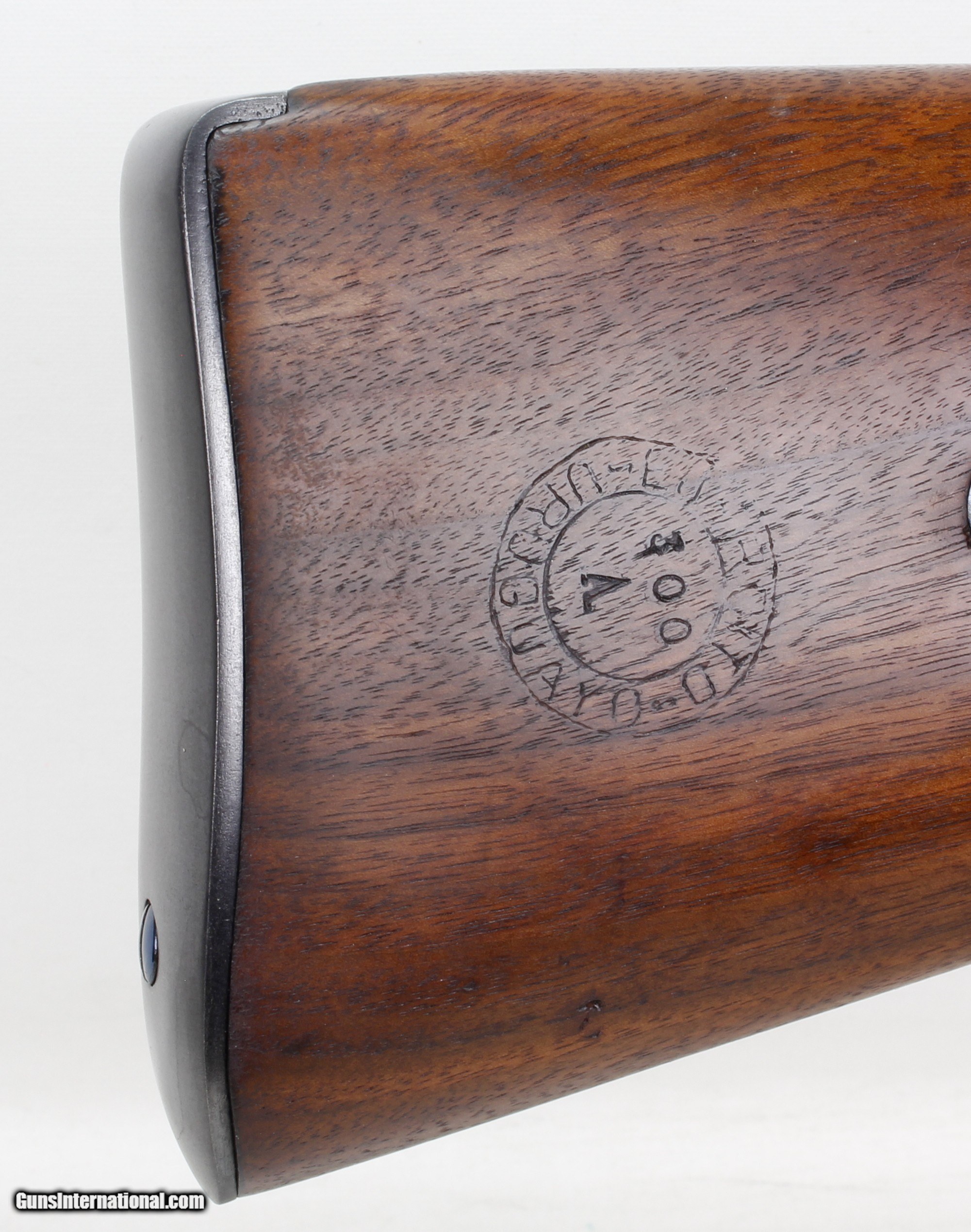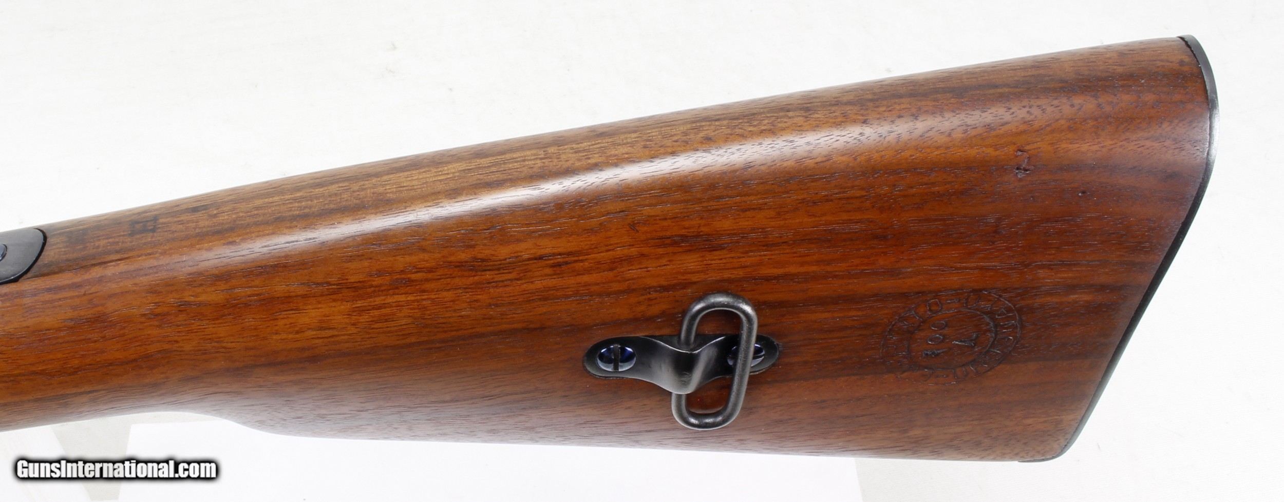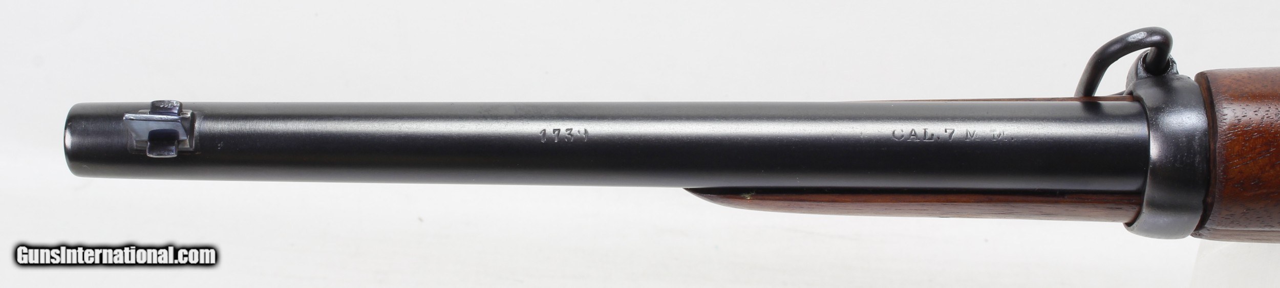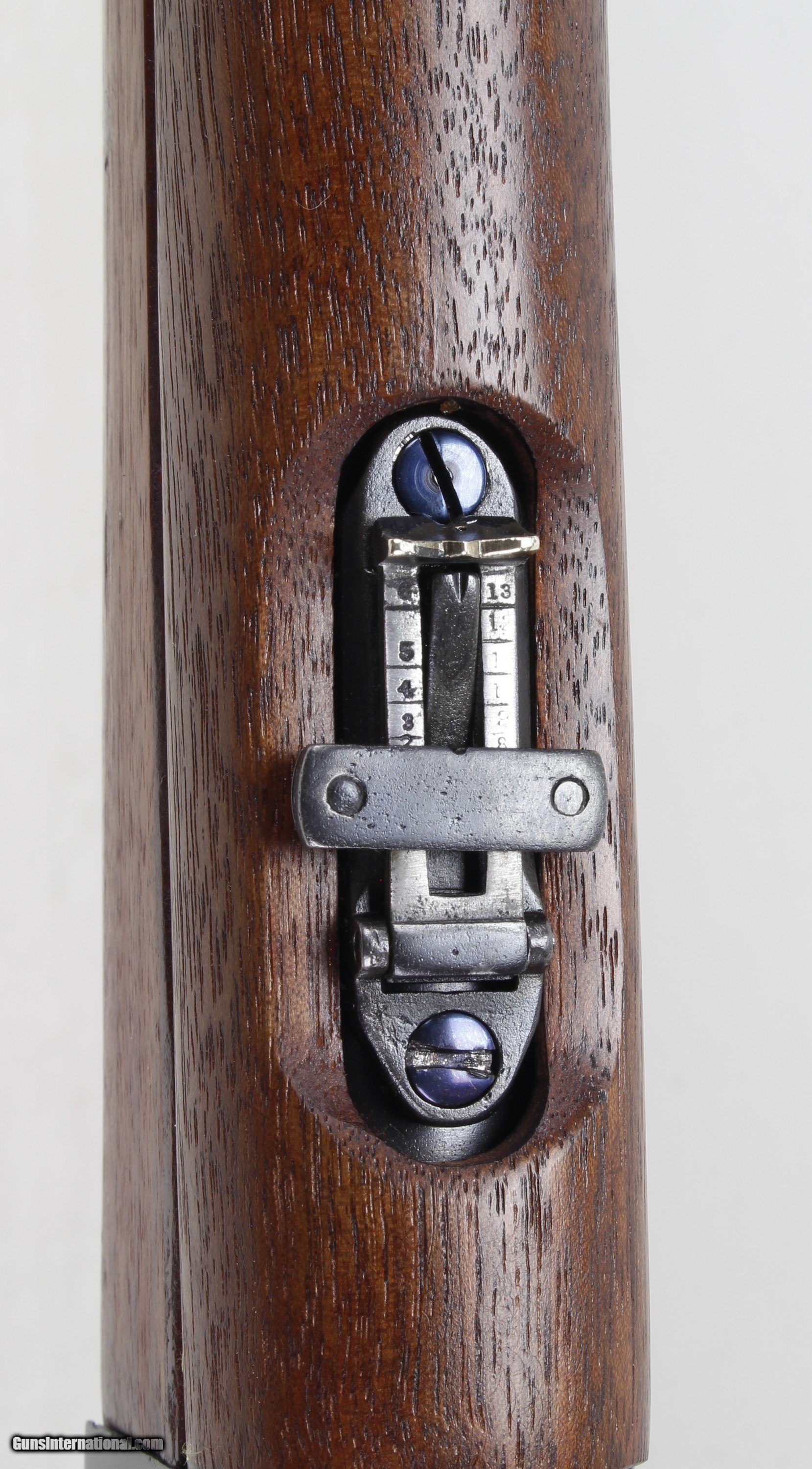 Description: Remington Model 1902 Rolling Block Baby Carbine in 7MM. SN #1739. LOP 13". This SRC has Has a 20 1/2" Barrel with a VERY GOOD Bore for it's age with STRONG RIFLING and Light Pitting. Both the Blued Metal and Walnut Stock and Forend have been FULLY RESTORED by SHOOTER'S EXCHANGE and REALLY LOOKS GREAT. Open sights with Military Style Rear Ladder Sight. Saddle Ring on left side of receiver. Sling Swivels. Top of Barrel marked with number 1739 and CAL. 7MM. Cartouch on right side of Stock URUGUAYO 500A and Proof Marks on bottom of stock. WOULD MAKE A GREAT ADDITION TO ANY COLLECTION. Weight: 7.3 lbs. Trigger Pull: > 8 lbs. More photos available upon request. Ships to Lower 48 W/ Insurance $45.00. SOLD Curio/Relic: Yes Rifle Caliber: 7x57mm Mauser Manufacturer: Remington Model: 1902 Serial Number: 1739 Condition: Excellent Metal Condition: Refinished Wood Condition: Refinished Bore Condition: VG For Age Action: Rolling Block LOP: 13 Finish: Blue Weight: 7.3 lbs. |
