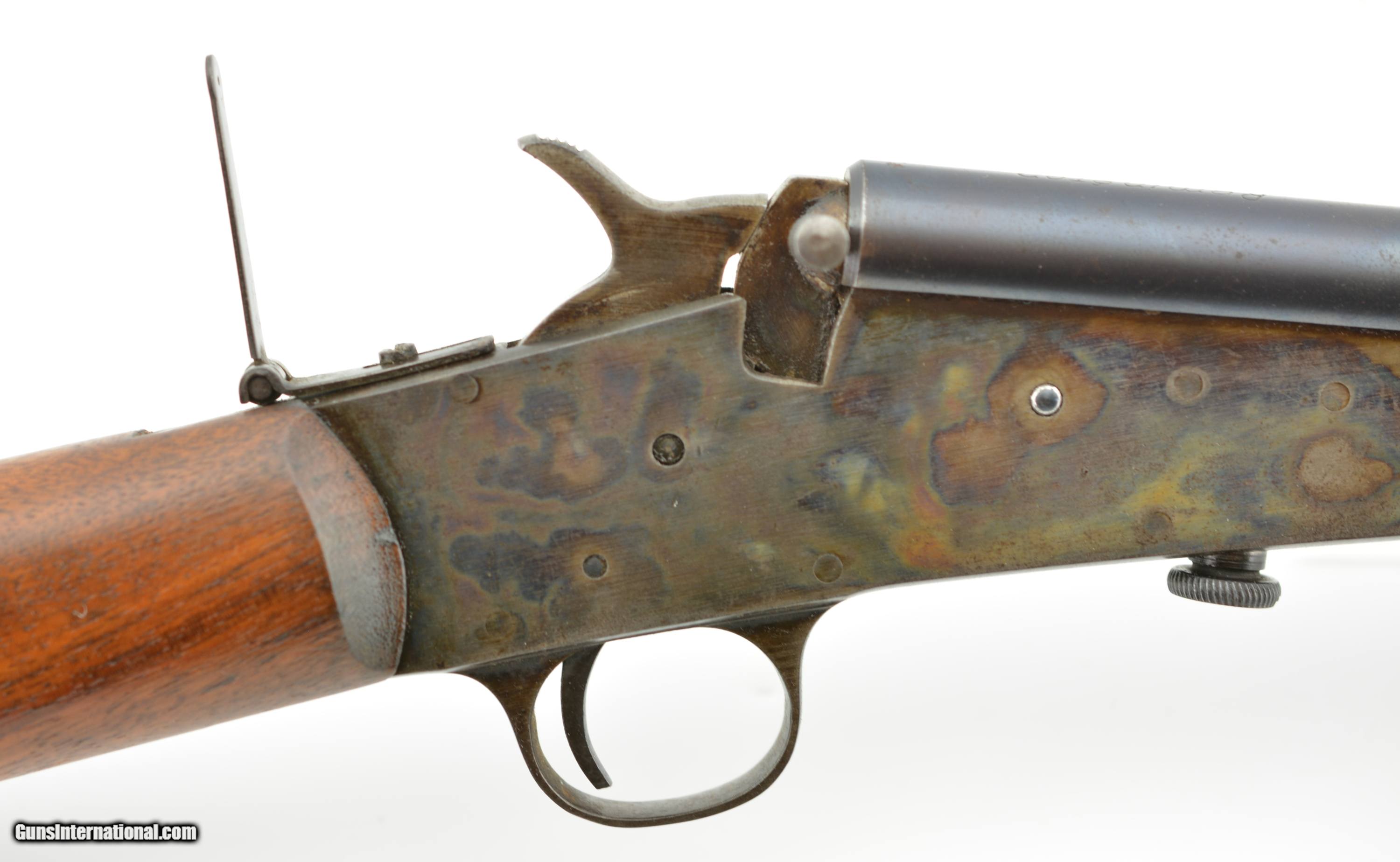 Description: Serial #450577, .32 RF, 20" barrel with a fine, bright bore that has a few small spots of dark freckling along its length. The barrel of this September, 1929-made rifle retains 92-95% of the original blue with the balance turned to a mellow plum-brown and silvering at the muzzle. The frame has a commensurate amount of original color case-hardening with scattered surface freckling and some fading along the edges. The walnut stock and forend are in very good condition with scattered small handling marks, and two with-the-grain cracks at the wrist tang; one on top, and one beneath. An area of moderate surface oxidation is present at the heel of the buttplate. The original sights are still installed, including the flip-up tang peep sight, and the action is fully functional. This is a handsome example of a neat little Remington boy’s rifle. FFL or C&R SOLD Curio/Relic: Yes Manufacturer: Remington Model: Model 6 Serial Number: 450577 Caliber Info: .32RF Gauge Info: .32RF |