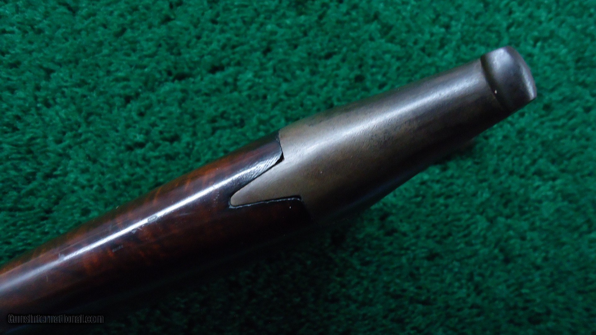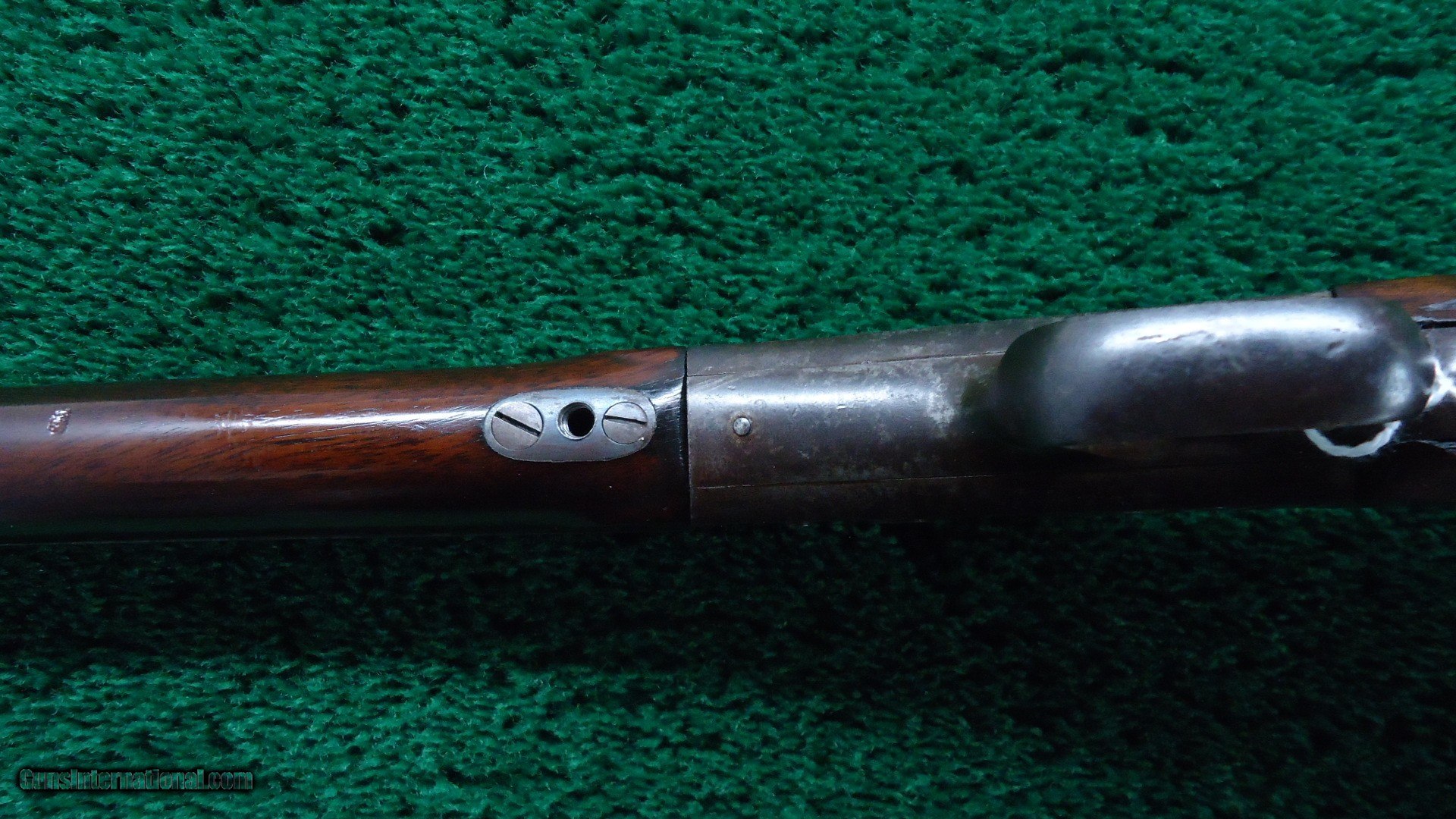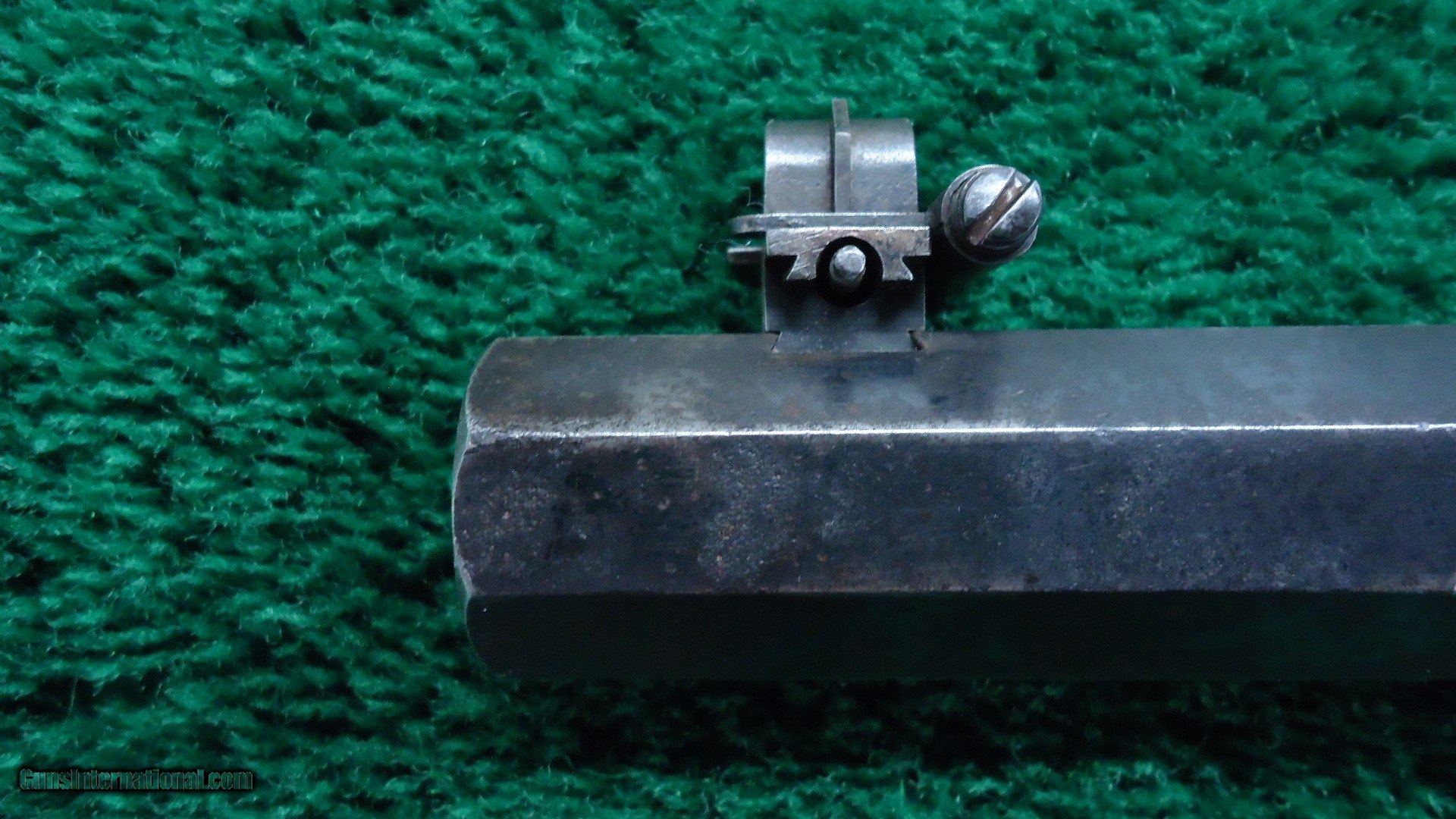 Description: Gun has original 32 inch extra heavy bull barrel that measures well over an inch at the muzzle. It's about 1/8 inch higher at the receiver than a normal barrel. A great looking gun. It has the correct spirit level front sight and folding tang sight. It has the dovetail on top of the barrel where a typical Remington sight should be. Bright shiny bore with sharp rifling. Barrel retains about 60% original blue with some corrosion starting to appear. Receiver has traces of trace color with the balance turning a dark color. Checkered wood has a well done repair at the wrist. Stock is sound and solid with a Helm type buttplate. Barrel and receiver have matching numbers. This gun is pictured on page 199 in the Remington Rolling Block book by Roy Marcot. Fitted for a palm rest which is not present. These heavy barrel Rolling Blocks are very rarely seen. Leroy Merz Antique Firearms specializes in antique and vintage Winchesters and other fine American firearms. Since 1965 Mr. Merz has taken part in the world of firearms and has been a contributor to many well known reference books. We have hundreds of additional guns in every price range at our home online. Search for Merz Antiques in google. SOLD Antique: Yes |