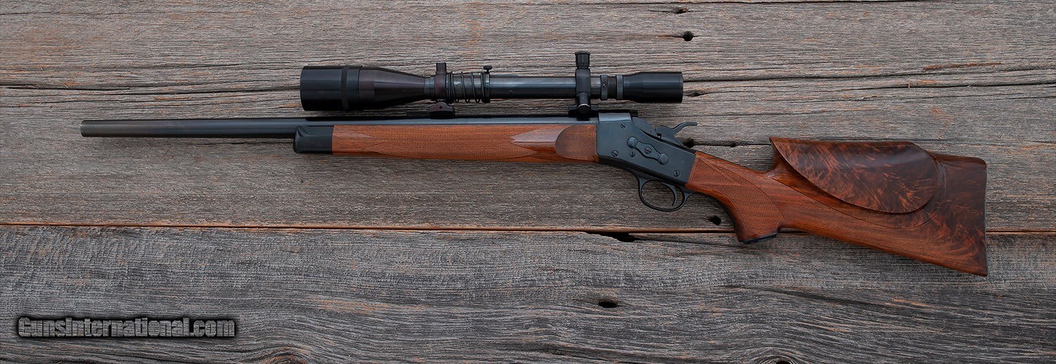Description: Remington - Rolling Block - .218 Bee caliber - Item Number: REMNSN28 Rifle type: Single Shot Action: Rolling Block Barrel length: 24 Sights: no sights Mounts: Scope: Unertl Weight: 11 lbs, 10 oz Overall condition: Good Stock condition: Good Metal condition: Good Stock: Original finish Metal: Original finish Type of Case: none Finish: Blue Type of Butt: Metal Manufactured in: USA Lop: 13 1/4 " Hand: Right Comments : Barreled and stocked by John Bonn. R-100 SOLD |