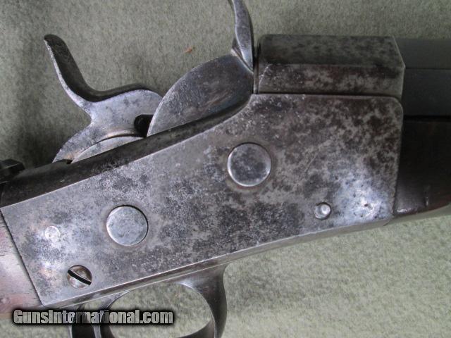 Description: A Remington Creedmore long range rifle. 33 1/2" barrel with mint and as new sleeved bore and 45-70 chambering. About 90% barrel blue which is turning slightly dull. Action is patina silvery and shows some surface pitting, Action is all original and very crisp functionally, Sights are Axtell riflesmith mfg, Price includes FEDEX ground shipping in the lower 48 SOLD Antique: Yes |