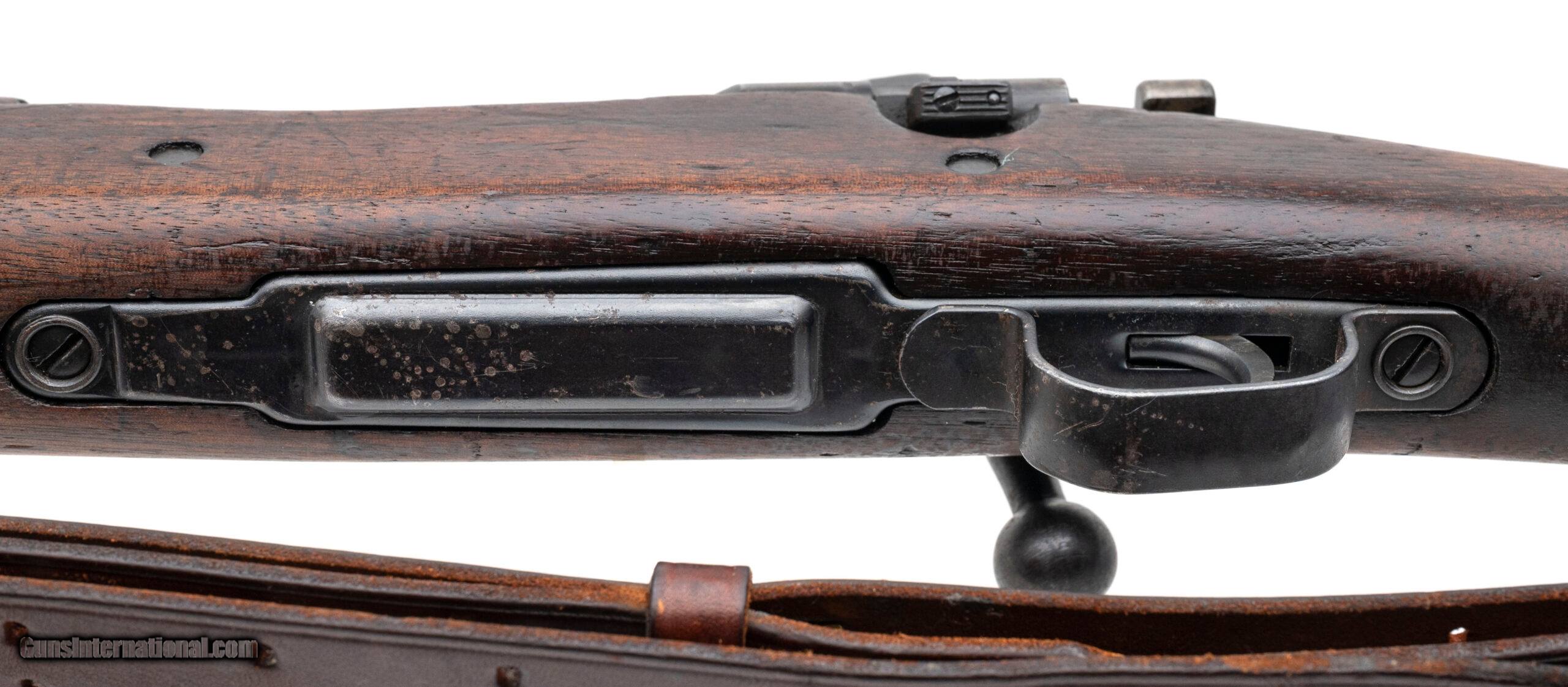 Description: "Serial number 3807608. Made in August 1943 with a 24-inch barrel that has a bright bore with strong visible rifling. Overall condition is very good with original factory phosphate finish across the metallic parts & wood furniture that reveals only light handling wear. The stock is marked ""FJA"" & there is a circle non serif ""P"" on the wrist. Comes with a M1907 type leather sling. Price: $1,350.00 Buy Now Contact Seller |