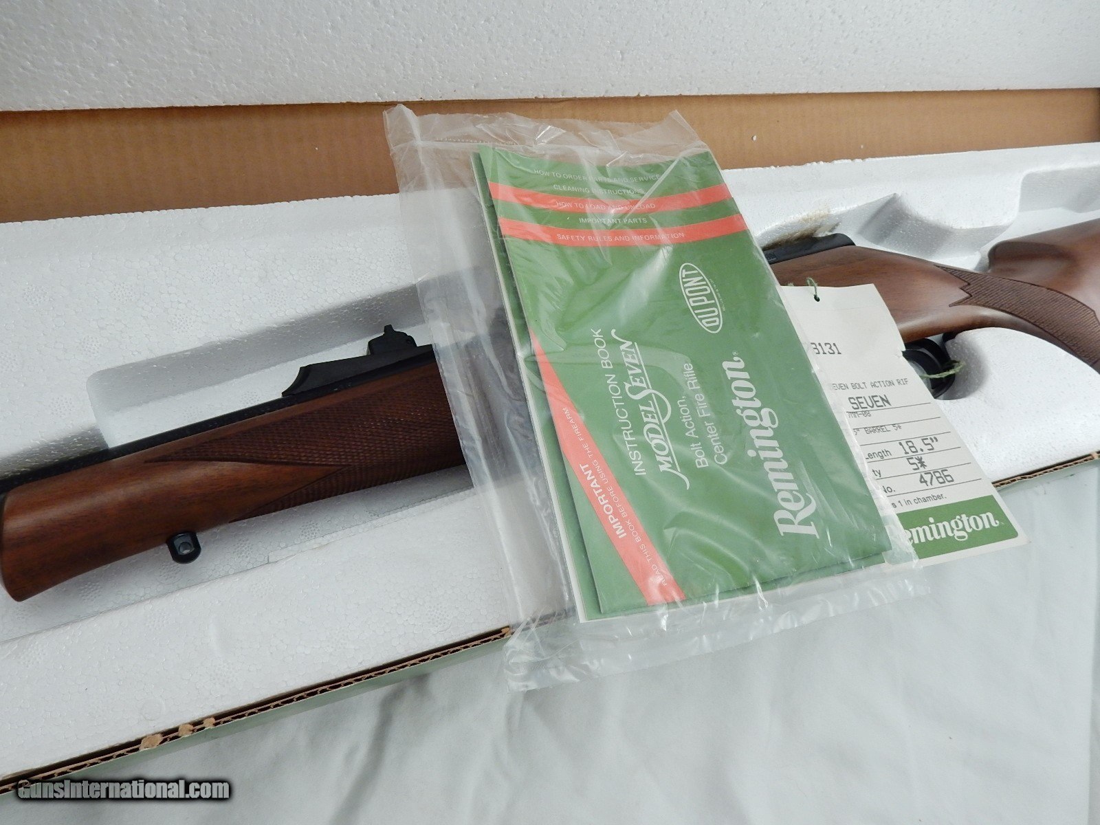 Description: This is a Remington model seven 7mm-08 with a 18 1/2 inch barrel. This gun is 100% new in the box. Barrel code is DL. Buyer pays 40.00 shipping. Thank you. 48-16-11 SOLD |