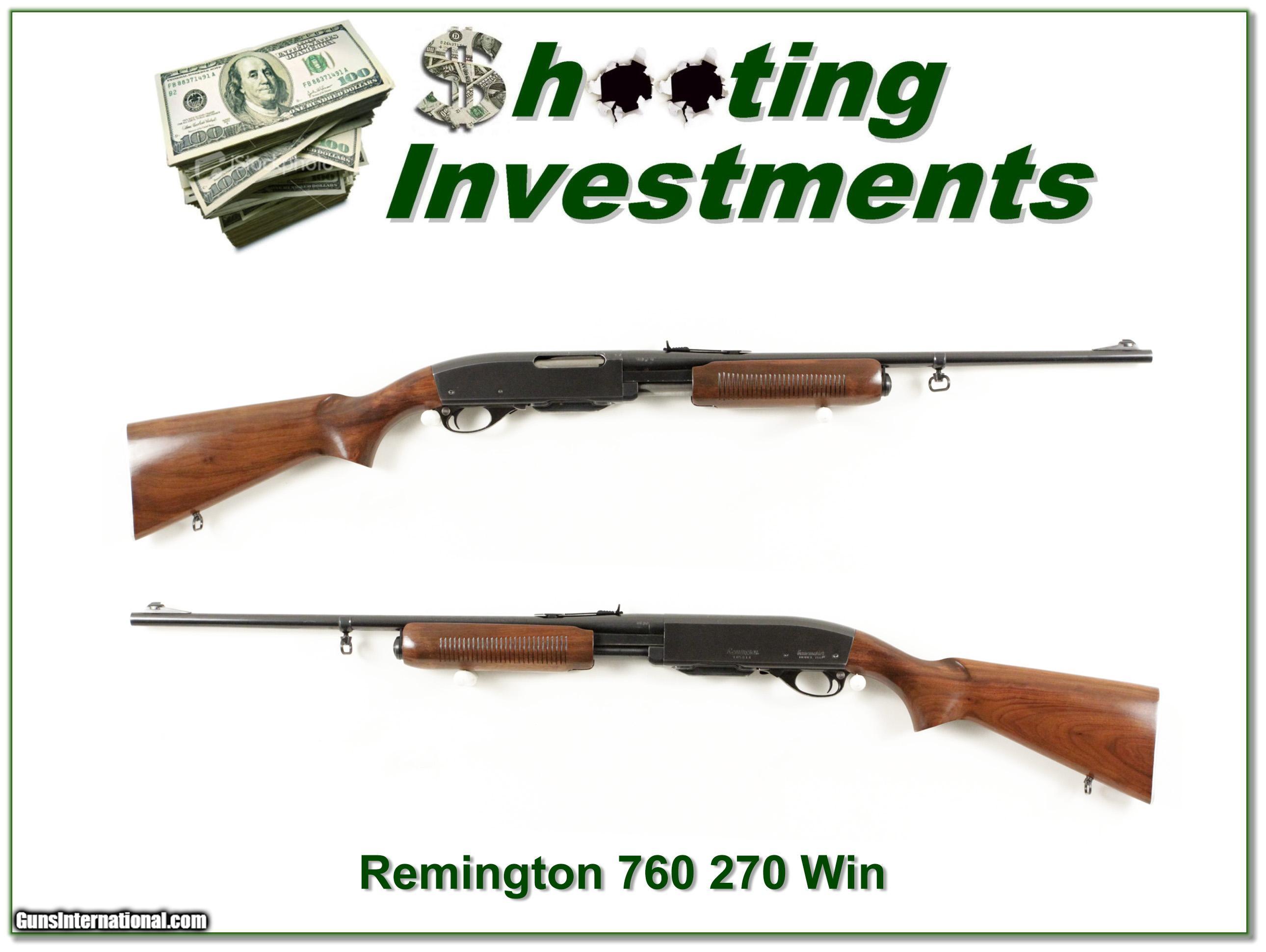 Description: Collectors, and hunters, this is an early Remington 760 Gamemaster in 270 Winchester. It has very nice wood grain and the aluminum butt. It has some use as seen but is a fine example and will make a nice addition to your collection or be a classic hunting gun. I am selling this one on consignment and as such, lay-a-way can’t be used. It does of course have the standard 3-day inspection. Shipping and insurance is $35 or $15 more if you want it shipped in a new Plano hard case. Please email me with any questions or larger pictures. (I now consign quality firearms only 10%! Let me know if you have any you would like to sell!) 17-0877 Payment: Payment is by Money Order, Cashiers Check or Personal Check. I can now also accept MasterCard and Visa with a 3% convenience fee. PayPal can be used for some items but never firearms. Please let us know if you would like to pay via PayPal. Shipping: The shipping charge will be listed in each description. It is $35 for most guns. Some heavy guns or those insured for over $2000 will be higher. Shipments to Alaska and Hawaii are higher because air shipment is required. Most firearms are shipped within 5 days of receipt of payment. We prefer shipping at the beginning of the week to avoid firearms in transit over weekends. We package all shipments carefully and insure them for the full purchase price, rounded up to the next $100. In the unlikely event that damage occurs, it is important that you save all packaging material for the claims process. Optics are shipped Priority Mail and most other non-firearm shipments are shipped First Class. Returns: Our return policy is simple. If for any reason you are not pleased with your purchase, you may return your item for a refund. The only exception is ammunition, it cannot be returned. It is important to us that you are happy. Guns cannot be fired or dissembled before returning them and must be returned in the same condition as received. Notification of a return must occur with-in 3 days of receipt at your dealer. Shipping, convenience and dealer fees are not refundable and are the responsibility of the buyer. Lay-a-way: If needed, we offer a 60 day lay-a-way option on most firearms. It is 1/3 now, 1/3 in 30 days and 1/3 in 60 days. Lay-a-way firearm sales are final. Consigning your firearms with Shooting Investments: We will help you get top dollar for your firearms. While most local guns shops charge 20% or more, our fee is only 10% with a minimum of $50. At your local gun shop it might take months to sell. Selling on-line provides instant access to thousands of interested buyers. You won’t find any other on-line dealer willing to sell your firearms for only 10% or listing every gun on 4 separate s. Selling through an House typically costs the seller 15% and the buyer an addition 15% (so 30%) and you have to wait several months to sell and longer to receive funds. If properly priced, we will sell your firearms in a week or two. Send us an email or give us a call and we’ll explain how easy it is for you to get top dollar. Trading: We collect guns and usually just trade for guns we want to add to our collections. We often sell guns for others wanting to purchase one of ours. We find this the most fair to both of us. Our Commission is only 10% and we hold the gun you want until yours sells. Please contact us if you want to sell one of yours to buy one of ours. Help for California Buyers: We are happy to ship to California. It is the buyer’s responsibility to make sure any item you buy is legal in your state. We are also happy to help with your purchase of a firearm from someone other than us. If you see a gun you would like to buy but the seller can’t or won’t ship to California we can help. You buy the gun and have it shipped to us. We’ll then ship it to your California dealer. The cost for this service is only $30 + shipping. Let me know if we can help! SOLD |
