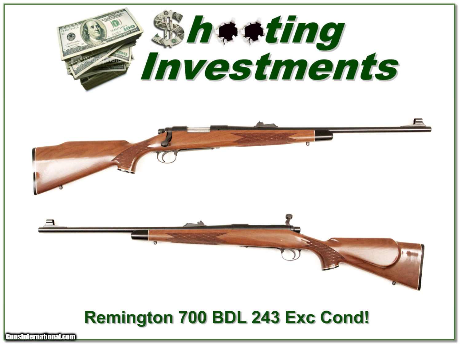 Description: This is an excellent condition Remington 700 BDL in 243 Winchester. Both blue and wood show little use. It will make a classic hunting gun and is sure to increase in value over time. It is a real Shooting Investment. Shipping and insurance is $35 or for $18 more (my cost) I’ll ship it in a new Plano hard case. Please email me with any questions or larger pictures. (I now consign quality firearms only 10%! Let me know if you have any you would like to sell!) [16-0195] Payment: Payment is by Money Order, Cashiers Check or Personal Check. I can now also accept MasterCard and Visa with a 3% convenience fee. PayPal can be used for some items but never firearms. Please let us know if you would like to pay via PayPal. Shipping: The shipping charge will be listed in each description. It is $35 for most guns. Some heavy guns or those insured for over $2000 will be higher. Shipments to Alaska and Hawaii are higher because air shipment is required. Most firearms are shipped within 5 days of receipt of payment. We prefer shipping at the beginning of the week to avoid firearms in transit over weekends. We package all shipments carefully and insure them for the full purchase price, rounded up to the next $100. In the unlikely event that damage occurs, it is important that you save all packaging material for the claims process. Optics are shipped Priority Mail and most other non-firearm shipments are shipped First Class. Returns: Our return policy is simple. If for any reason you are not pleased with your purchase, you may return your item for a refund. The only exception is ammunition, it cannot be returned. It is important to us that you are happy. Guns cannot be fired or dissembled before returning them and must be returned in the same condition as received. Notification of a return must occur with-in 3 days of receipt at your dealer. Shipping, convenience and dealer fees are not refundable and are the responsibility of the buyer. Lay-a-way: If needed, we offer a 60 day lay-a-way option on most firearms. It is 1/3 now, 1/3 in 30 days and 1/3 in 60 days. Lay-a-way firearm sales are final. Consigning your firearms with Shooting Investments: We will help you get top dollar for your firearms. While most local guns shops charge 20% or more, our fee is only 10% with a minimum of $50. At your local gun shop it might take months to sell. Selling on-line provides instant access to thousands of interested buyers. You won’t find any other on-line dealer willing to sell your firearms for only 10% or listing every gun on 4 separate s. Selling through an House typically costs the seller 15% and the buyer an addition 15% (so 30%) and you have to wait several months to sell and longer to receive funds. If properly priced, we will sell your firearms in a week or two. Send us an email or give us a call and we’ll explain how easy it is for you to get top dollar. Trading: We collect guns and usually just trade for guns we want to add to our collections. We often sell guns for others wanting to purchase one of ours. We find this the most fair to both of us. Our Commission is only 10% and we hold the gun you want until yours sells. Please contact us if you want to sell one of yours to buy one of ours. Help for California Buyers: We are happy to ship to California. It is the buyer’s responsibility to make sure any item you buy is legal in your state. We are also happy to help with your purchase of a firearm from someone other than us. If you see a gun you would like to buy but the seller can’t or won’t ship to California we can help. You buy the gun and have it shipped to us. We’ll then ship it to your California dealer. The cost for this service is only $30 + shipping. Let me know if we can help! SOLD |