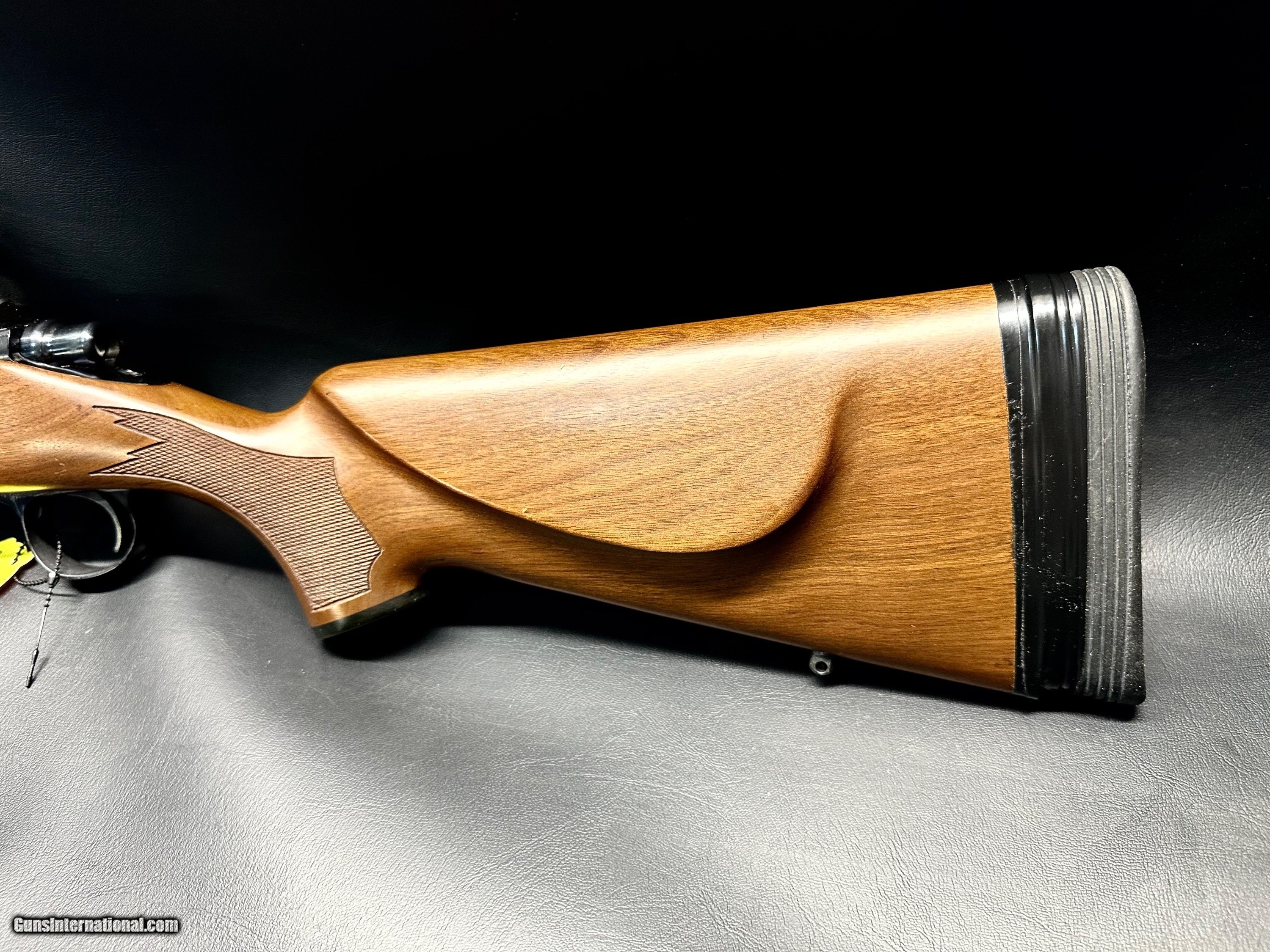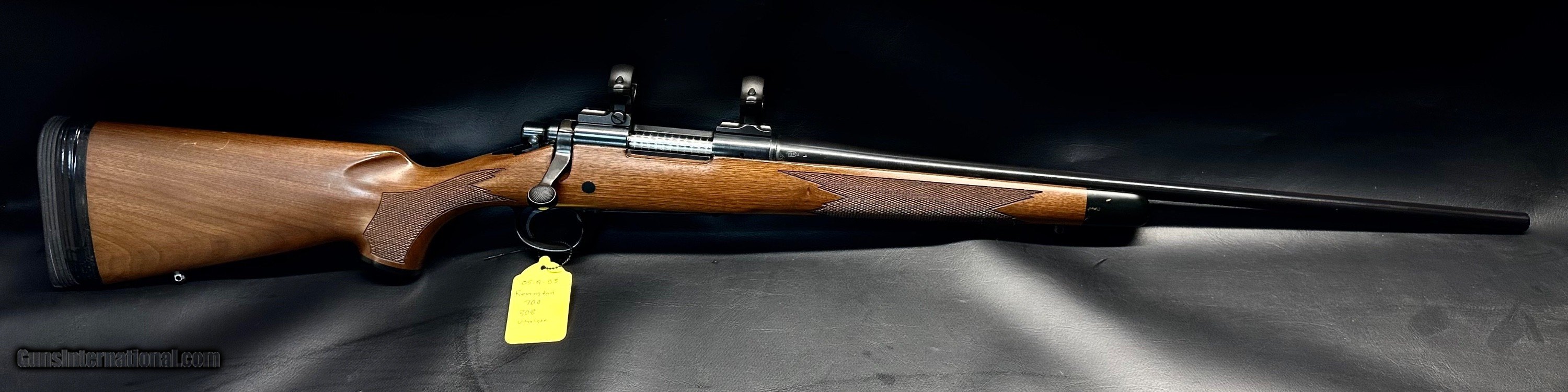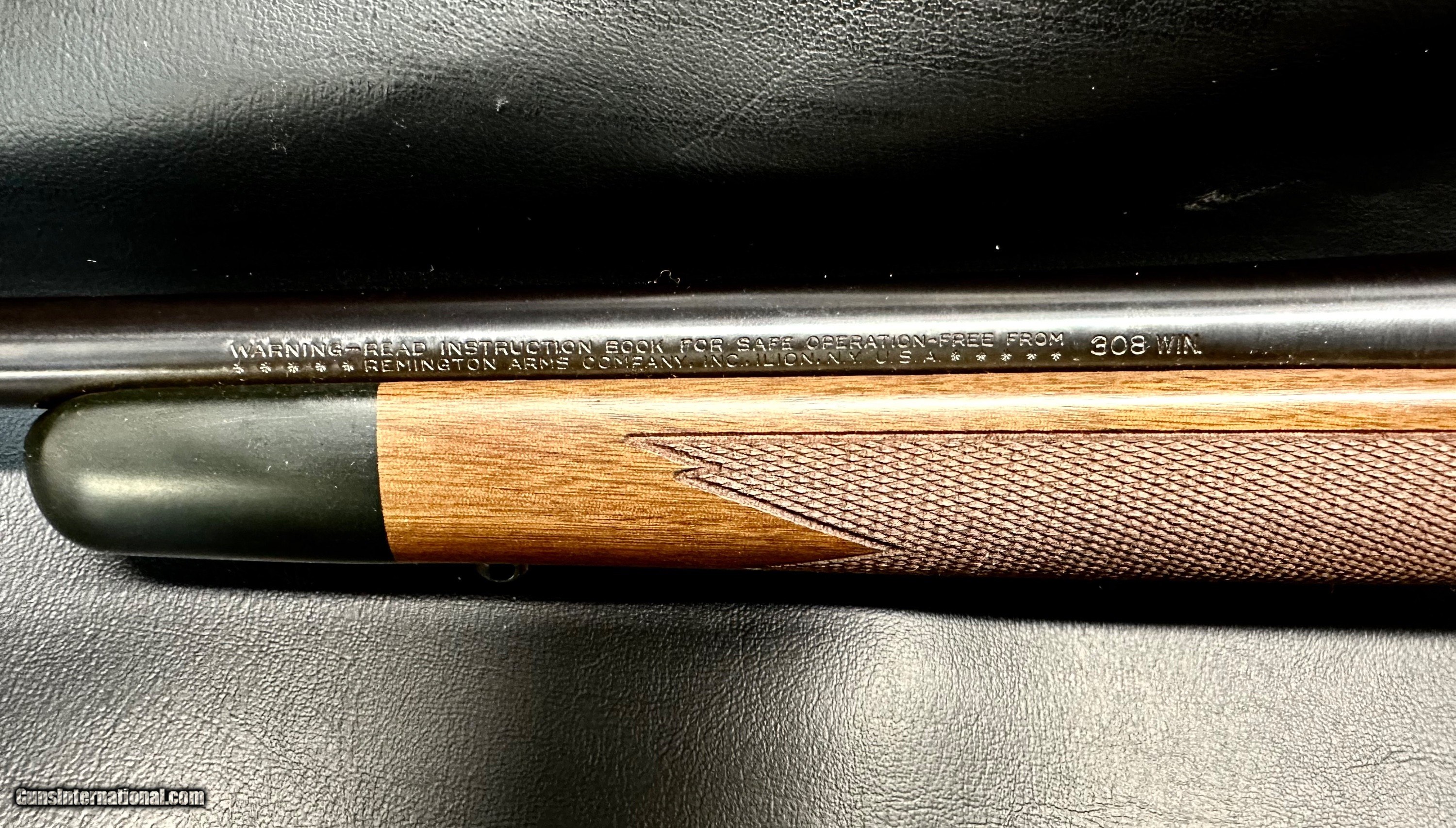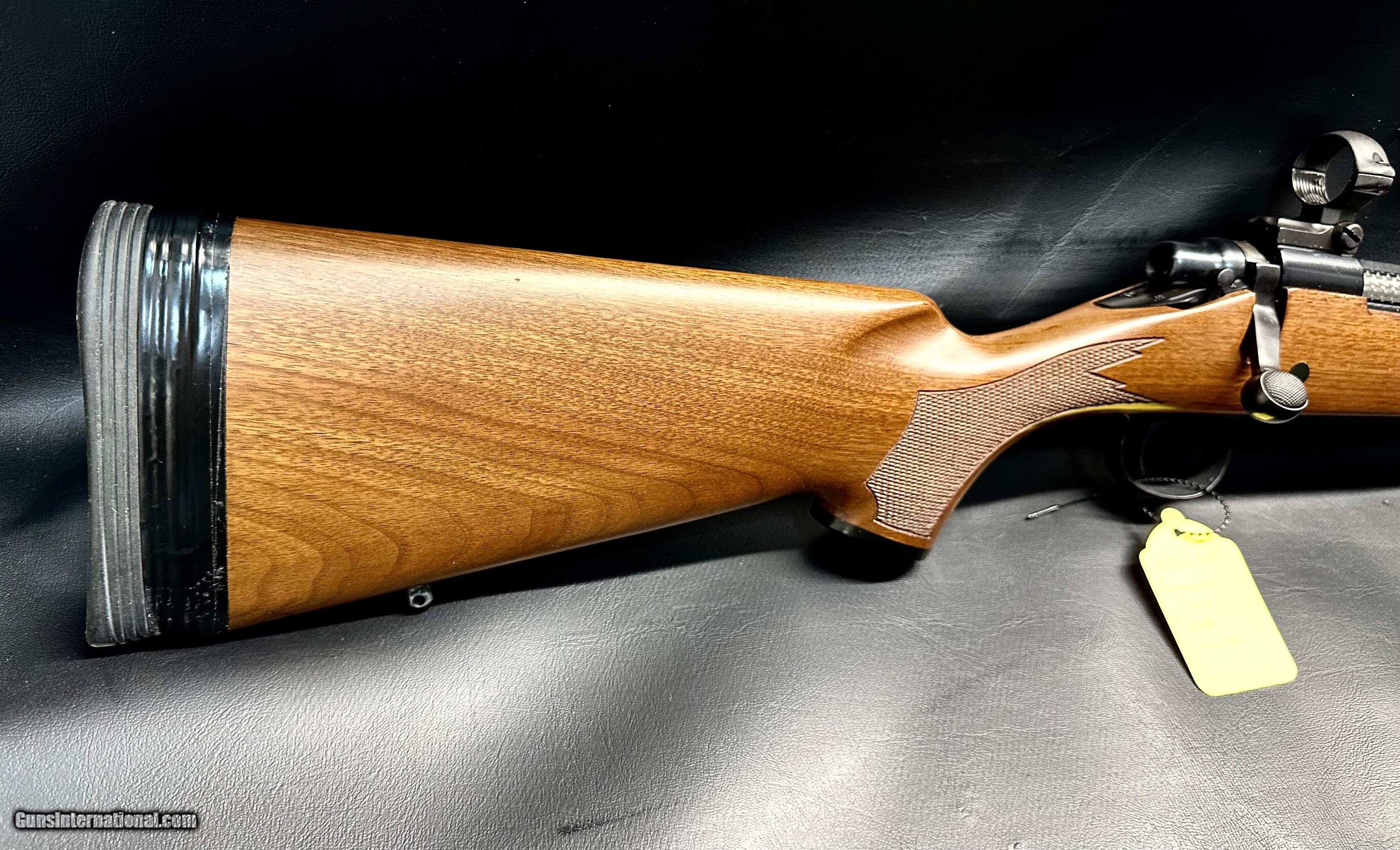 Description: Very light weight Remington 700 chambered in the very versatile 30 Winchester. Stock has a 13-3/4" LOP with a recoil pad that is not original and does not fit correctly (we can replace and install a properly fit pad in our shop for you for 100.00). The metal is in excellent condition with no bluing wear. The aluminum floor plate has some minimal paint wear on the front by the screw. The stock is in very good condition with only a few handling marks. Great little 308 only weighs 6lb 5.3oz with the bases and rings installed. Flat 35.00 shipping 3% cash discount SOLD Rifle Caliber: .308 Winchester Manufacturer: Remington Model: 700 Barrel Length: 22 Condition: Very Good - Excellent Item Location: Buxton Maine |