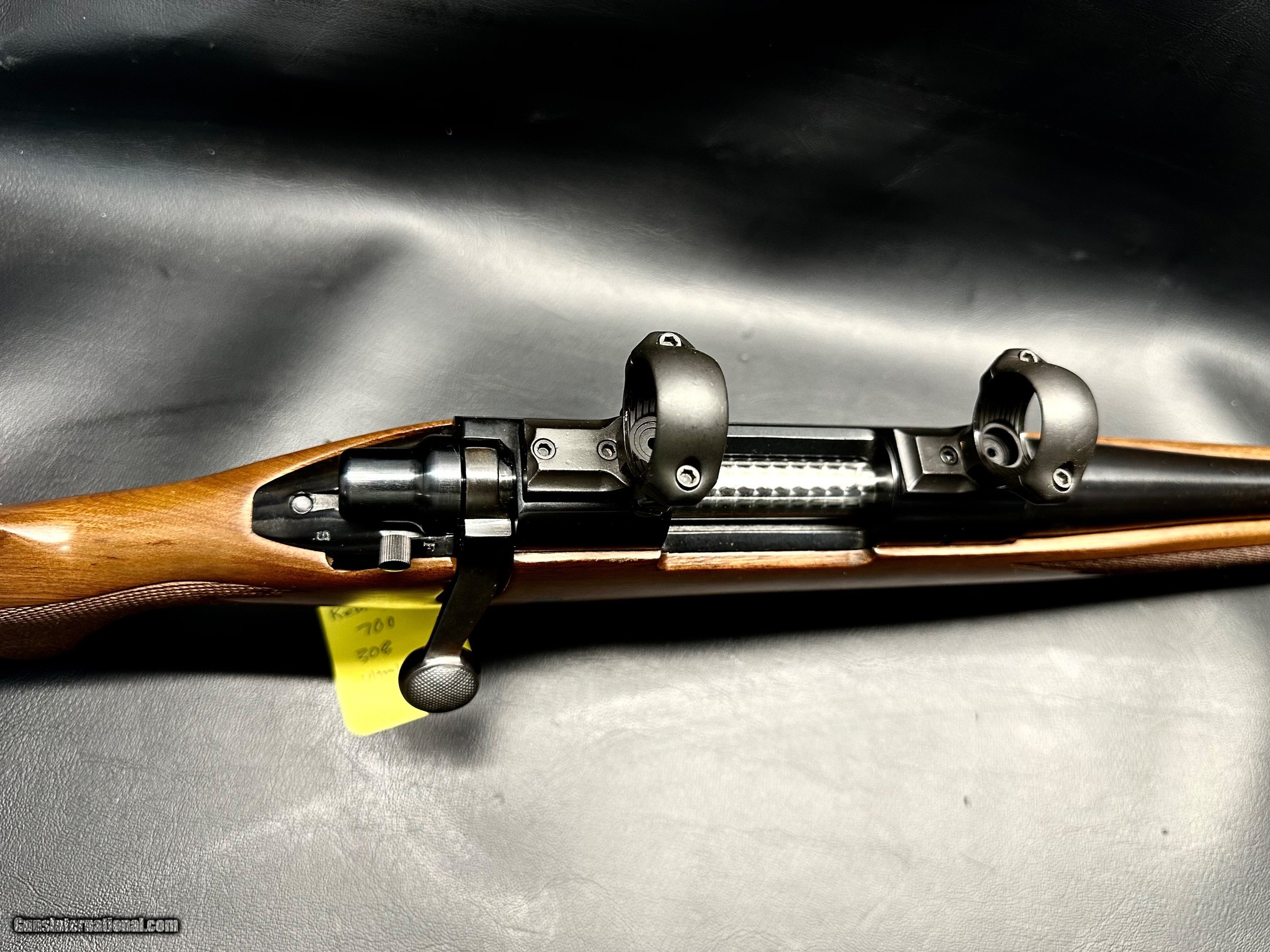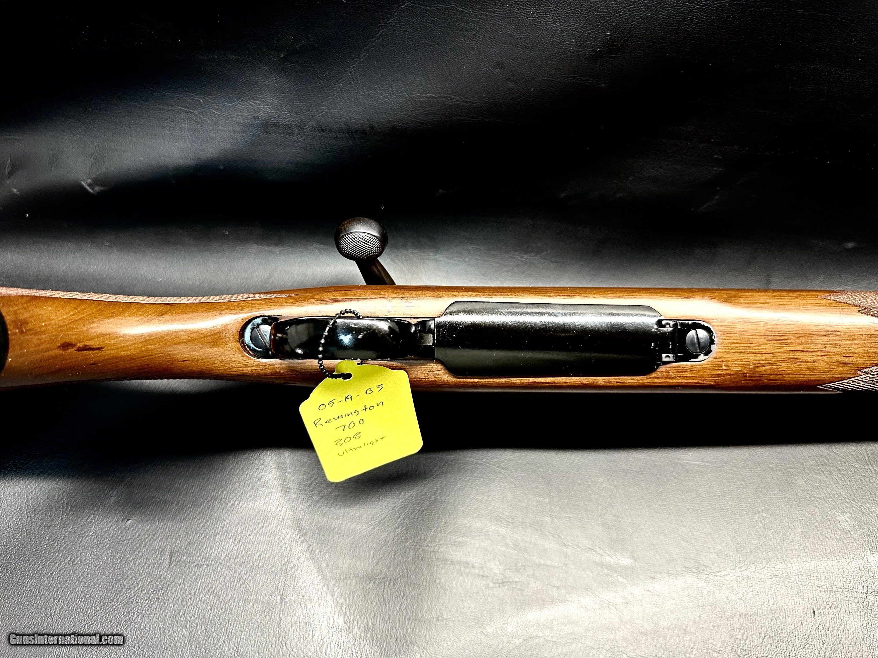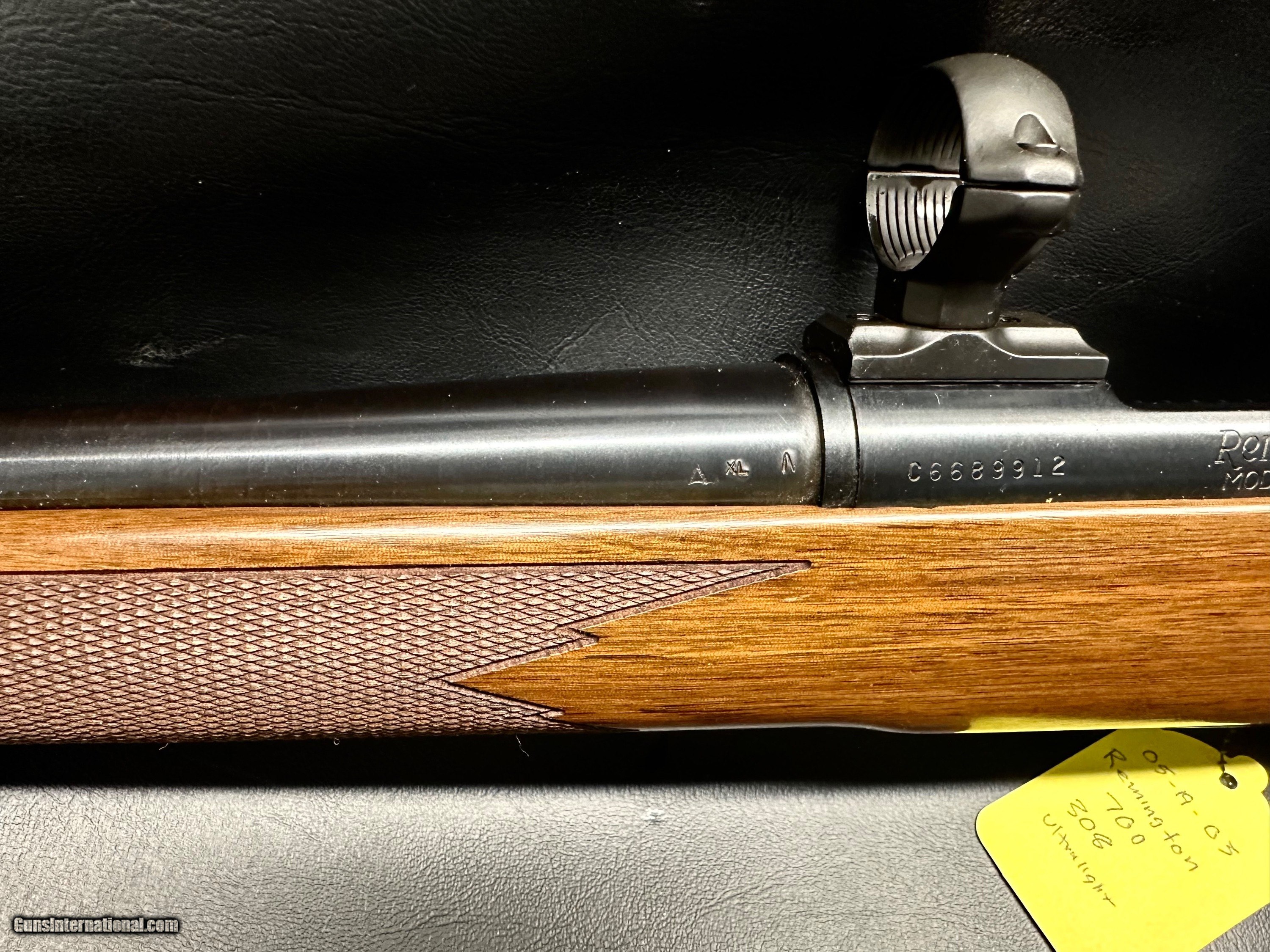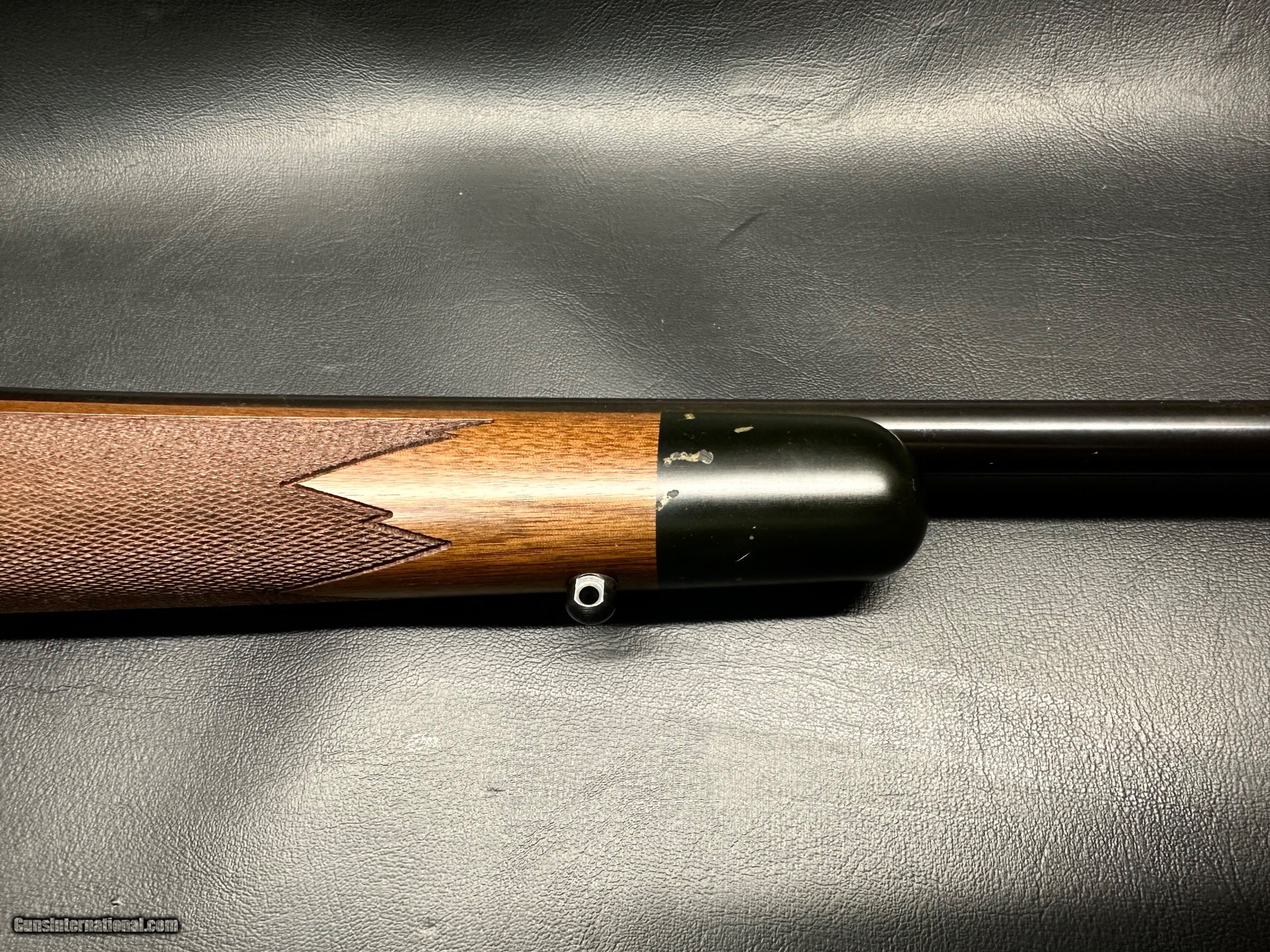 Description: Very light weight Remington 700 chambered in the very versatile 30 Winchester. Stock has a 13-3/4" LOP with a recoil pad that is not original and does not fit correctly (we can replace and install a properly fit pad in our shop for you for 100.00). The metal is in excellent condition with no bluing wear. The aluminum floor plate has some minimal paint wear on the front by the screw. The stock is in very good condition with only a few handling marks. Great little 308 only weighs 6lb 5.3oz with the bases and rings installed. Flat 35.00 shipping 3% cash discount SOLD Rifle Caliber: .308 Winchester Manufacturer: Remington Model: 700 Barrel Length: 22 Condition: Very Good - Excellent Item Location: Buxton Maine |