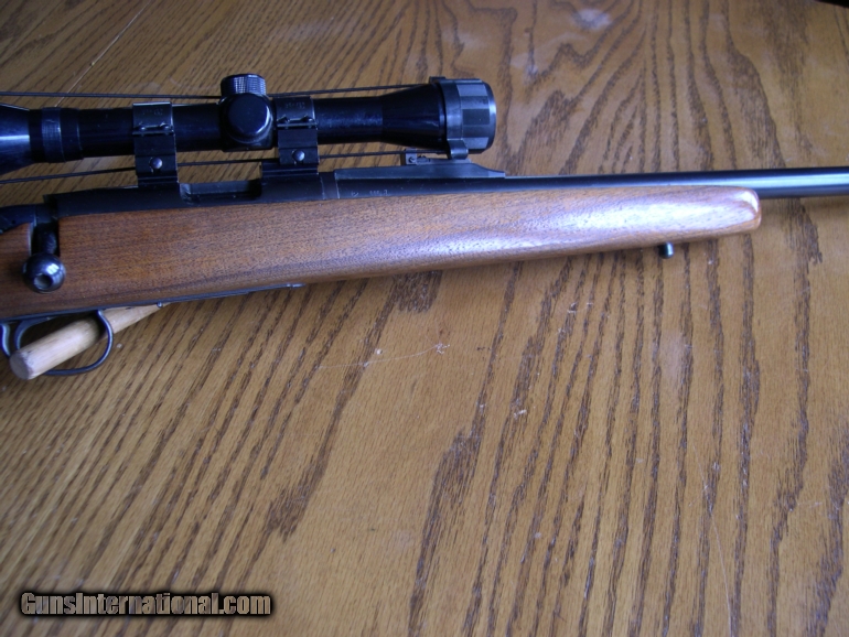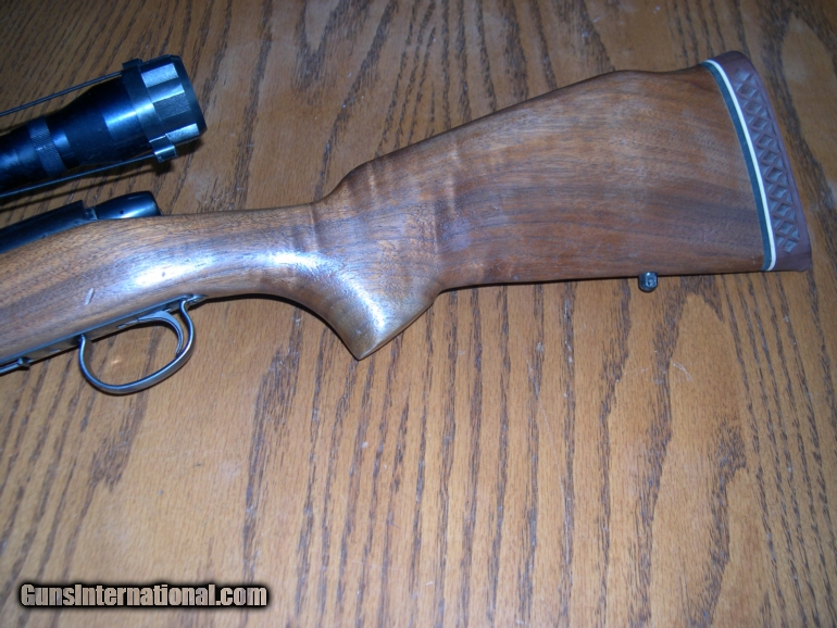 Description: Extra clean 788 in a rare caliber, with a recoil pad added, LOP is about 13 " one magazine included, 99% original blue, and wood, that has been cut for recoil pad, ideal for Lady or youth rifle, Tasco 4X scope with lens caps, magazine is like new, only one included, a hard rifle to find in this caliber! Original open sights ! SOLD