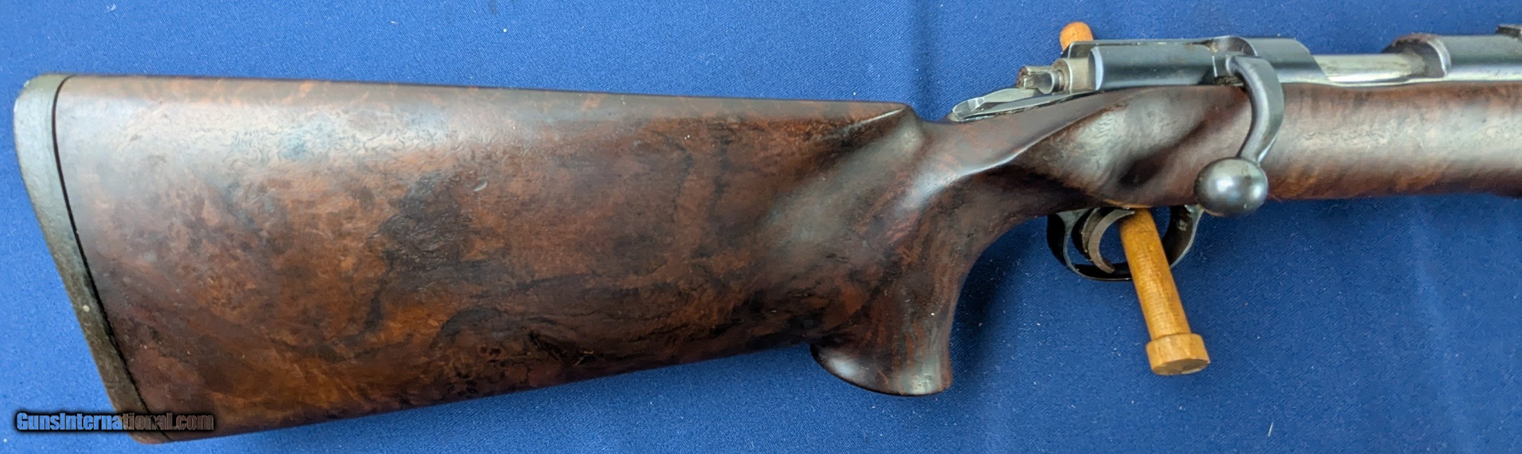 Description: New Years Special Scarce Remington Model 37 .22 Tgt. Rifle Fine C.1940s Offered her for sale is a scarce collectible vintage Remington Model 37 .22 Target rifle. Called the Rangemaster this specimen is in used but sound condition. It retains all of its blue on barrel and the stock is sound with only small use marks. Set up for sights. Pistol grip target stock. The Remington Model 37, commonly called the “Rangemaster,” is a bolt-action target rifle designed for precision .22 Long Rifle competition. It was introduced in 1937 as Remington’s competitor to the Winchester Model 52. Production continued (with some WWII interruption) until approximately 1954–1955. Total production was quite limited — roughly 12,000-plus rifles — making them quite collectible today. 28″ heavy target barrel, pistol-grip target stock, sights setup — fits exactly what this model was built for. Based upon the entire block of serial numbers over its entire production run this rifle would appear to have ben made in the early 1940s. The Model 37 Rangemaster is relatively rare compared to its competitor, the Winchester Model 52. A specimensuch as this in used but sound condition with much original blue and a solid stock is very desirable among collectors and target shooters. L530 Thank you for your order. Shipping is $48. To expedite each order received, however we ship 80-100 items weekly, therefore orders paid by money orders or bank checks are cleared for shipping 5-7 days after deposited funds show in our account. Shipping date is scheduled ONLY AFTER VERIFICATION TAKES PLACE AND FFL/C&R IS RECEIVED (IF APPLIES). This is 5-7 days after WE receive order by mail - NOT customer date mailed and postmarked and after credit card funds are posted. Credit card orders exceeding $500 must be cleared through customer’s bank before shipping. Personal checks are accepted but orders are held UP TO 3 WEEKS after deposit of funds before items released for shipping. IF you have special instructions or require overnight or expedited shipping please advise at time of ordering and we will gladly prioritize shipping FOR AN ADDITIONAL CHARGE. THIS IS OUR POLICY and we encourage buyers to PLEASE READ AND UNDERSTAND OUR POLICY BEFORE . We would be pleased to answer ANY questions by phone (our toll free number is 1-800-571-7337 or e-mail cwlopiaol. Visit our RETAIL GALLERY IN SOUTHPORT, CT. Visit us also on Facebook at ://facebook/hansenguns/?fref=ts. We also own and/or operate Hansen Cartridge Co. and the Ruger Collectors Assc.(RCA). Hansen & Hansen wishes to expedite each order received, however we ship 80-100 items weekly, therefore orders paid by money orders or bank checks are cleared for shipping 5-7 days after deposited funds show in our account. Shipping date is scheduled ONLY AFTER VERIFICATION TAKES PLACE AND FFL/C&R IS RECEIVED (IF APPLIES). This is 5-7 days after WE receive order by mail - NOT customer date mailed and postmarked and after credit card funds are posted. Credit card orders exceeding $500 must be cleared through customer’s bank before shipping. Personal checks are accepted but orders are held UP TO 3 WEEKS after deposit of funds before items released for shipping. IF you have special instructions or require overnight or expedited shipping please advise at time of ordering and we will gladly prioritize shipping FOR AN ADDITIONAL CHARGE. THIS IS OUR POLICY and we encourage potential buyers to PLEASE READ AND UNDERSTAND OUR POLICY BEFORE . We would be pleased to answer ANY questions by phone (our toll free number is 1-800-571-7337 or e-mail cwlopiaol. Curio/Relic: Yes Rifle Caliber: .22 Long Rifle Price: $1,250.00 Buy Now Contact Seller |