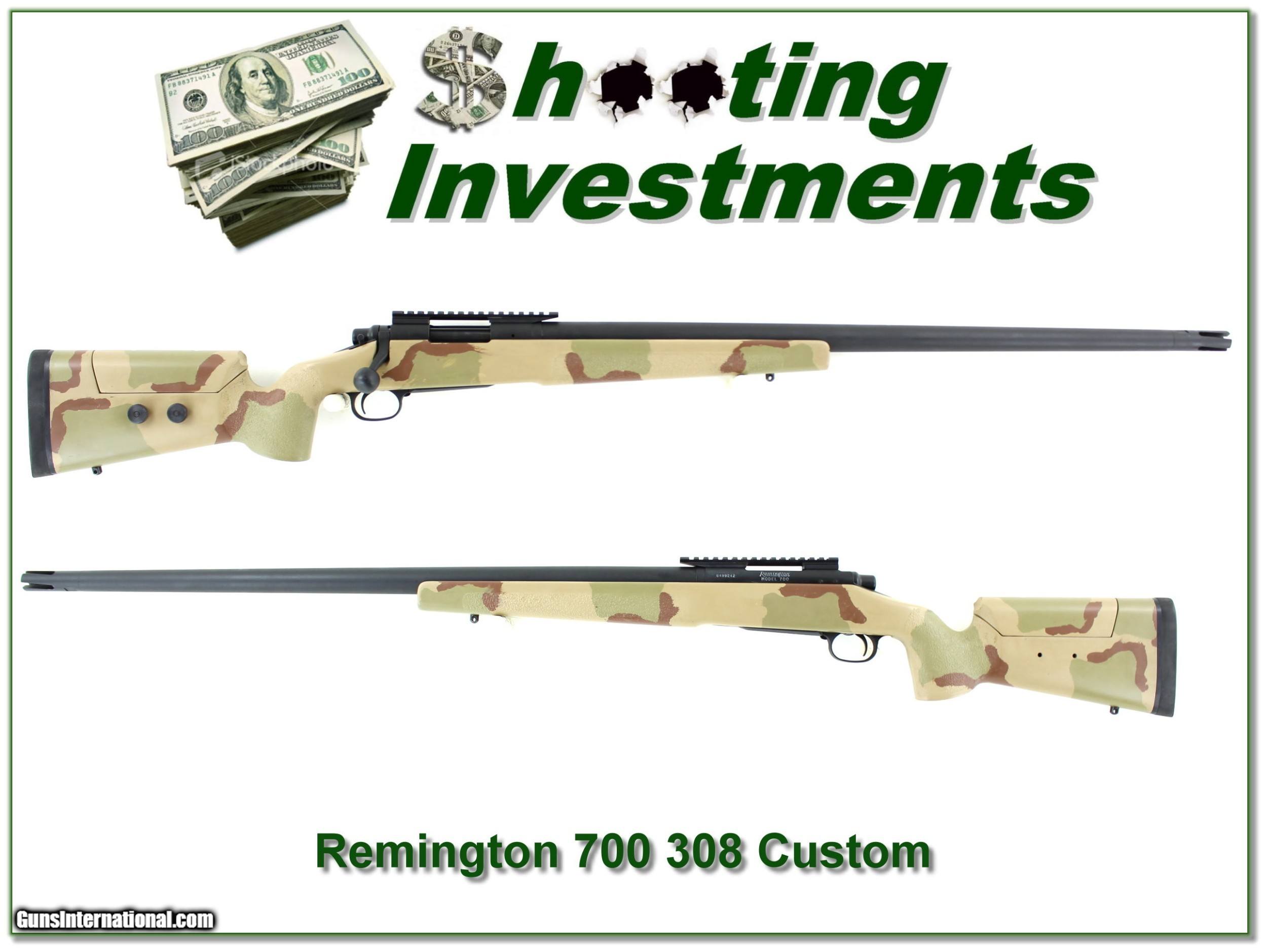 Description: This is a Remington 700 Custom by Precision Rifle and Tool. It was built for long range f-T/R Class. It has a 30in Krieger barrel with Yankee Hill flash hider. It has a McMillen stock and Nightforce 20 MOA bases. I am selling this one on consignment and as such lay-a-way can’t be used. It does of course have the standard 3-day inspection. Shipping and insurance is $49. Please email me with any questions or larger pictures. (Consign your quality firearms with Shooting Investments for only 12%! Let me know if you have any you would like to sell!) 20-0735 Payment: Payment is by Money Order, Cashiers Check or Personal Check. I can now also accept Credit Cards (MasterCard, Visa, Discover & American Express) with a 3% convenience fee. Shipping: The shipping charge will be listed in each description. It is $39 for most firearms. Some heavy guns or those insured for over $2000 will be higher. Shipments to Alaska and Hawaii are higher because air shipment is required. Most firearms are shipped on Tuesday and Thursday and usually in 5 days of receipt of payment. We package all shipments carefully and insure them. Optics are shipped Priority Mail and most other non-firearm shipments are shipped First Class. Returns: Our return policy is simple. If for any reason you are not pleased with your purchase, you may return your item for a full refund of purchase price. Ammunition cannot be returned. It is important to us that you are happy. Guns cannot be fired or dissembled before returning them and they must be returned in the same condition as received. Notification of a return must occur with-in 3 days of receipt at your dealer. Shipping, convenience and dealer fees are not refundable and are the responsibility of the buyer. Lay-a-way: If needed, we offer a 60 day lay-a-way option on most firearms. It is 1/3 now, 1/3 in 30 days and 1/3 in 60 days. Lay-a-way firearm sales are final and if not completed the first payment cannot be returned. Consigning your firearms with Shooting Investments: We will help you get top dollar for your firearms. While most local guns shops charge 20% or more, our fee is only 12% with a minimum of $75. At your local gun shop it might take months to sell. Selling on-line provides instant access to thousands of interested buyers. You won’t find any other on-line dealer willing to sell your firearms for only 12% or listing every gun on 3 separate s. Selling through an House typically costs the seller 15% and the buyer an addition 15% (so 30%) and you have to wait several months to sell and longer to receive funds. If properly priced, we will sell your firearms in a few weeks. Send us an email or give us a call and we’ll explain how easy it is for you to get top dollar. Trading: Trading for use is really just buying your gun to re-sell. If you have a gun you want to trade, please email a picture and we will let you know what we can give or it. You will always get more if we sell it for you on consignment. Help for California Buyers: We are happy to ship to California. It is the buyer’s responsibility to make sure any item you buy is legal in your state. We are also happy to help with your purchase of a firearm from someone other than us. If you see a gun you would like to buy but the seller can’t or won’t ship to California they can ship to use and we’ll then ship it to your California dealer. The cost for this service is only $30 + shipping. Let us know if we can help! SOLD |